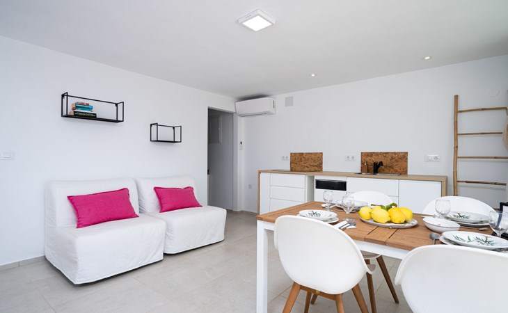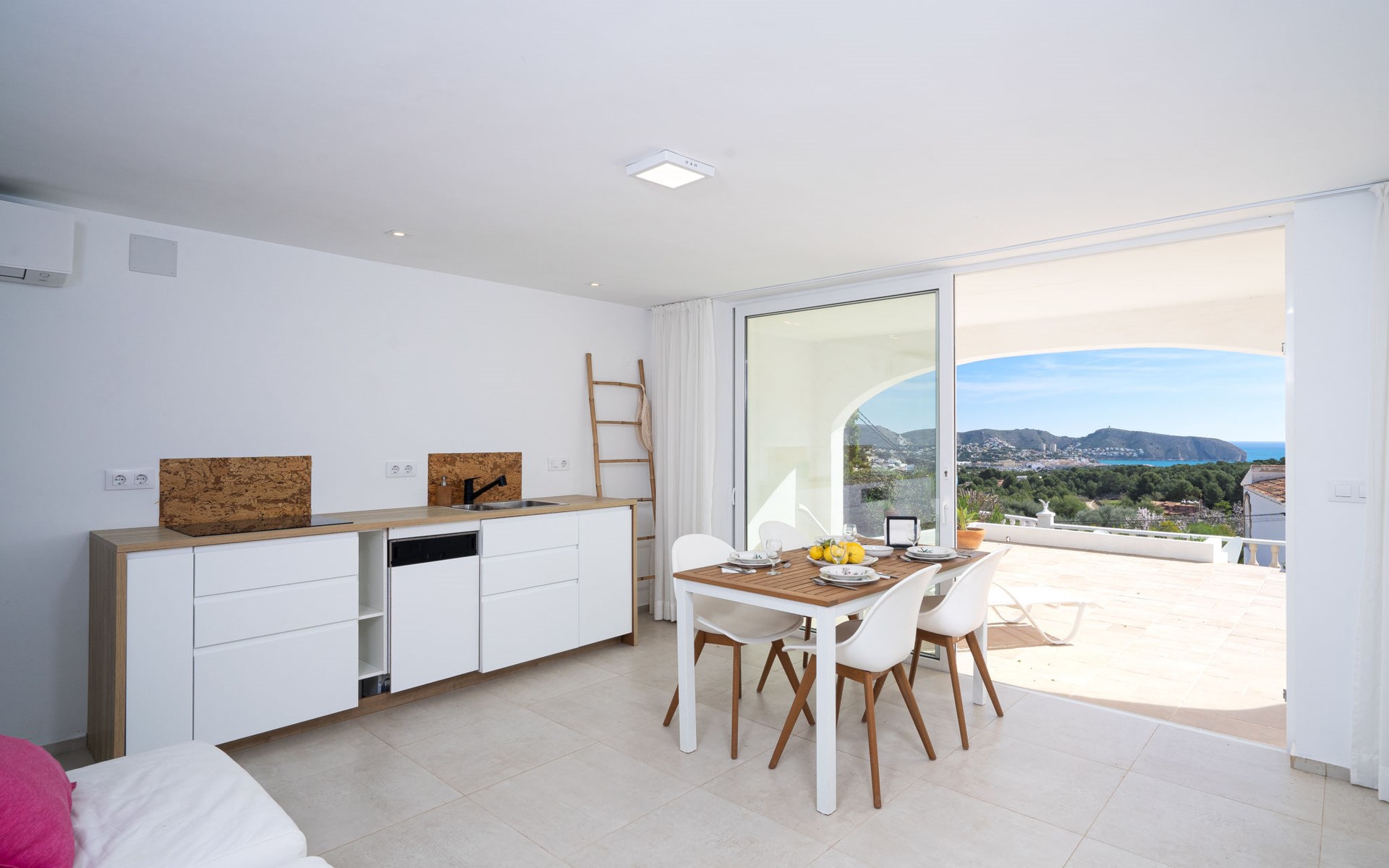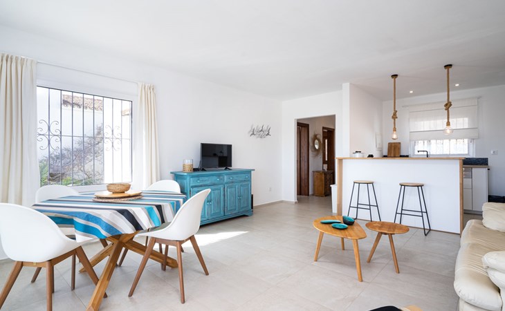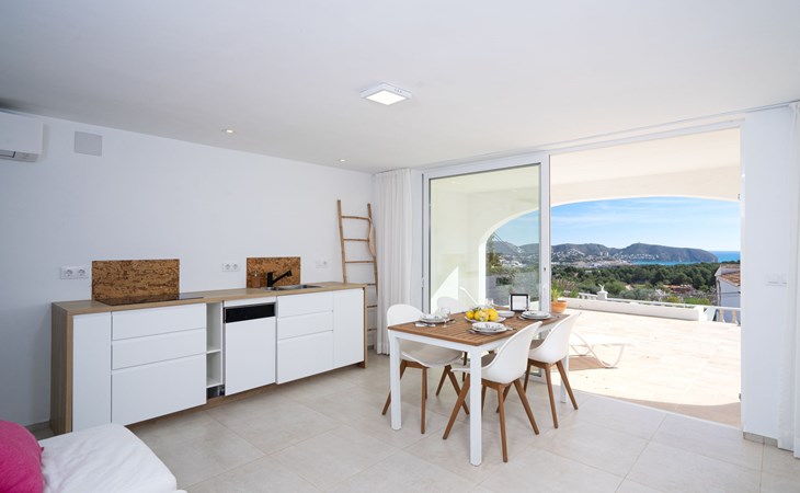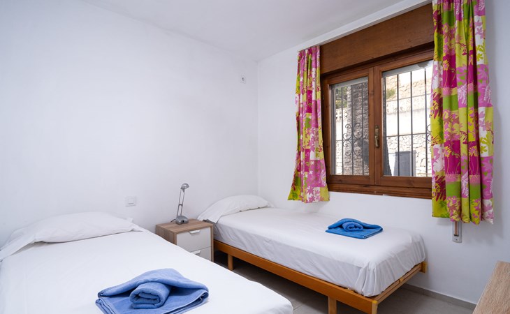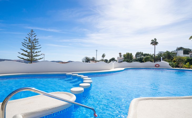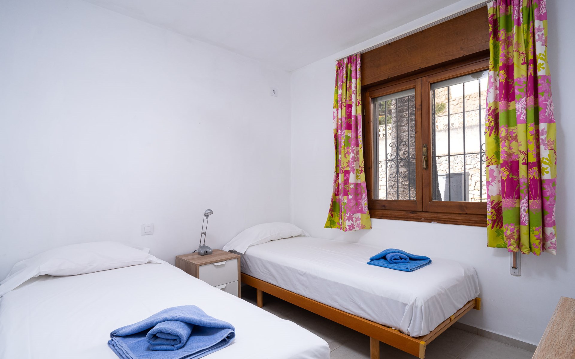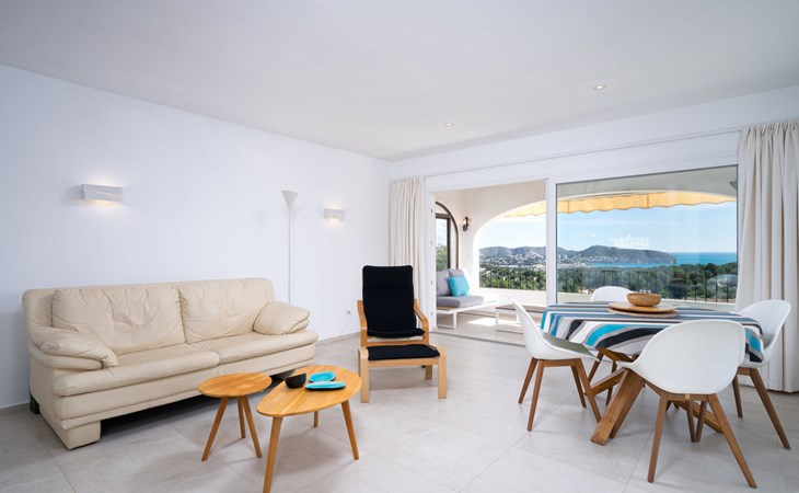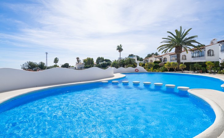 Comfortable terraced house "Tampa Park", 2 storeys, renovated. 3.6 km from the centre of Moraira, in a quiet, sunny position, 3.6 km from the sea, 3.6 km from the beach, in a cul-de-sac. For shared use: swimming pool round (depth 120 - 210 cm, seasonal availability: 01.Jan. - 31.Dec.) with internal staircase. Children's pool, outdoor shower. Private: garden wildlife garden. In the house: washing machine. Parking. Shop 3.6 km, supermarket 2.6 km, restaurant 2.6 km, bus stop "Moraira" 4.5 km, railway station "Teulada" 5.5 km, ferry "Denia" 27.1 km, sandy beach "Playa L'Ampolla" 3.6 km. Please note: car recommended. The owner does not accept any youth groups.