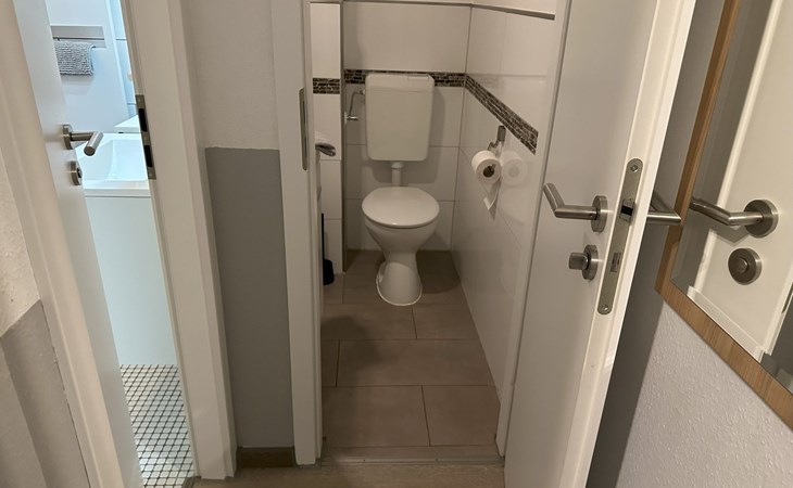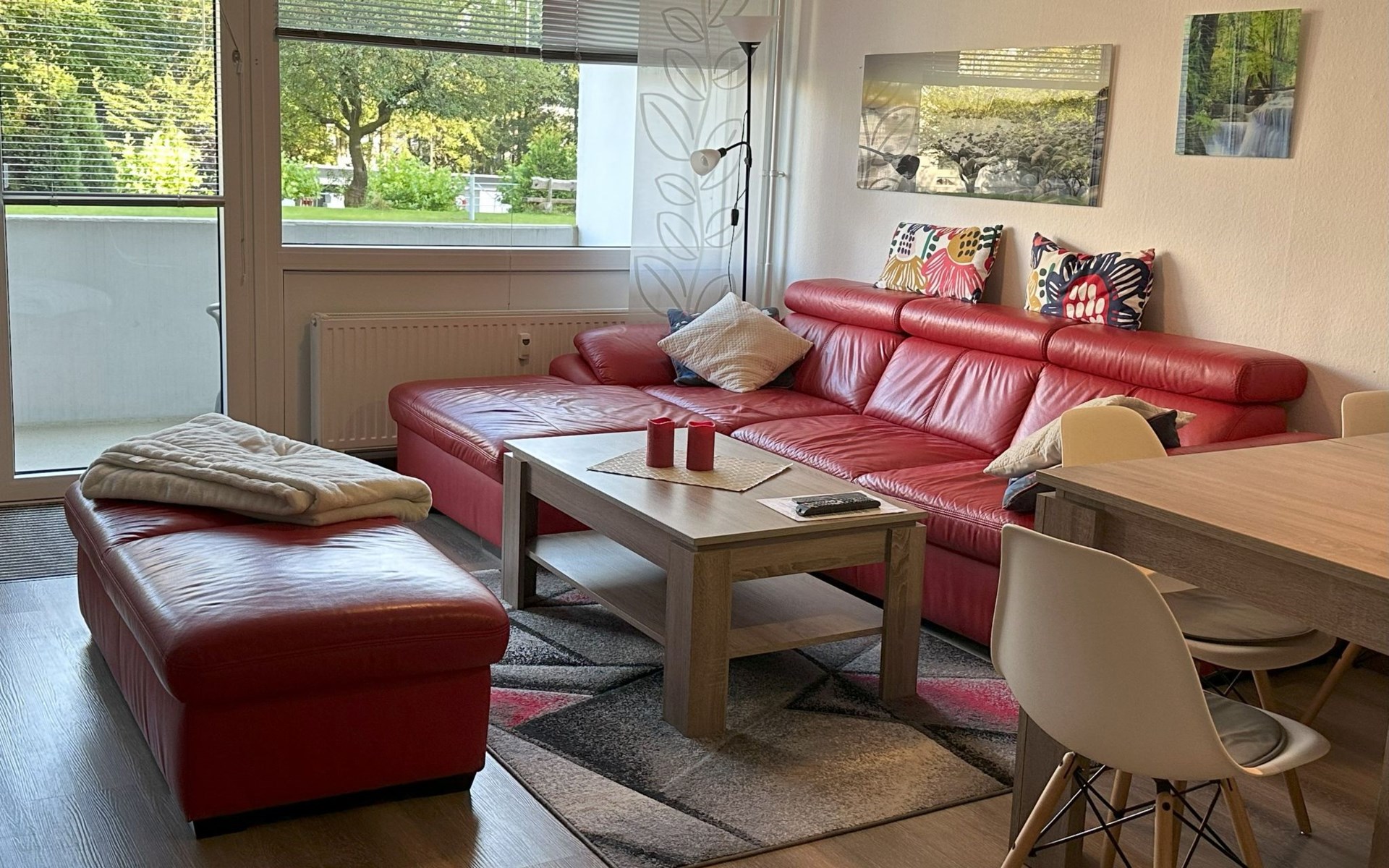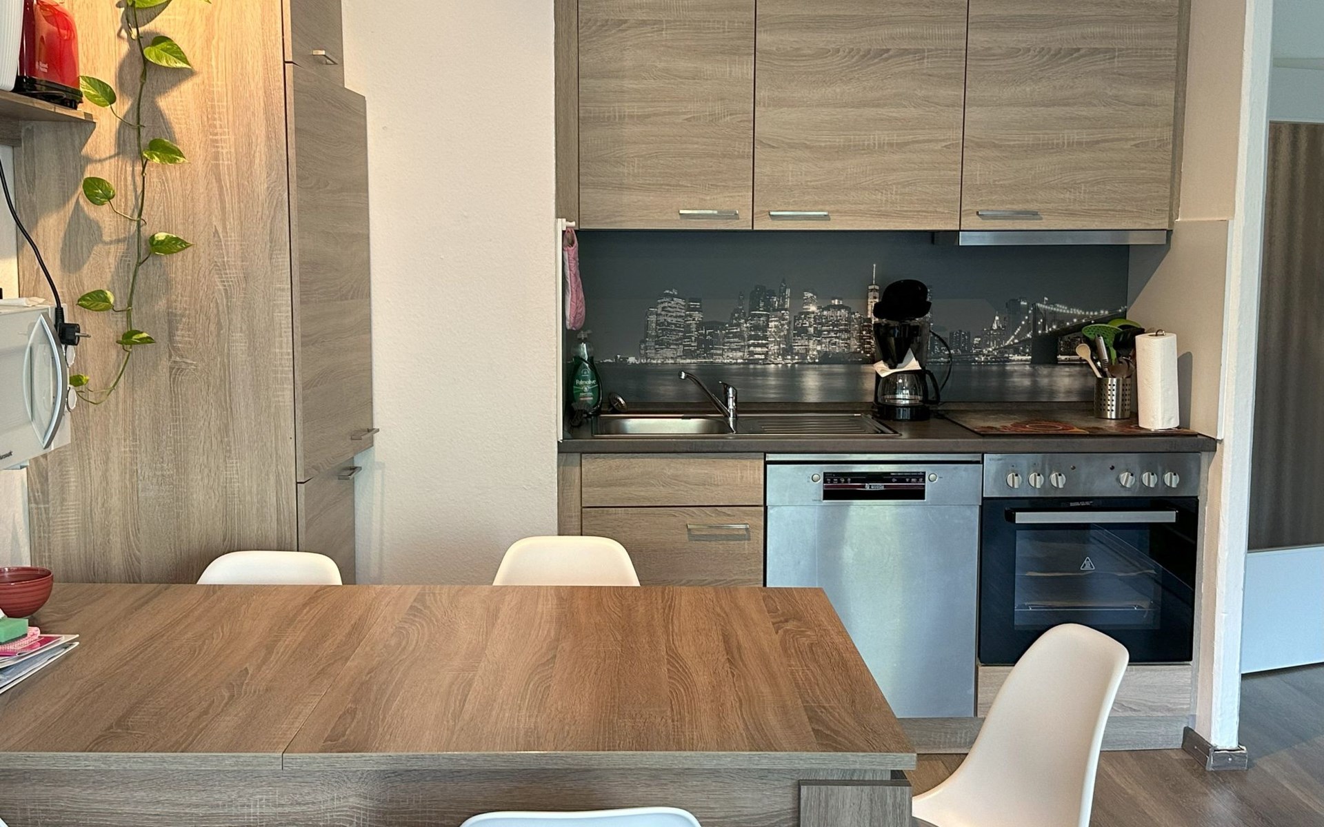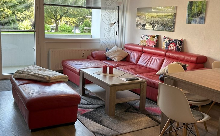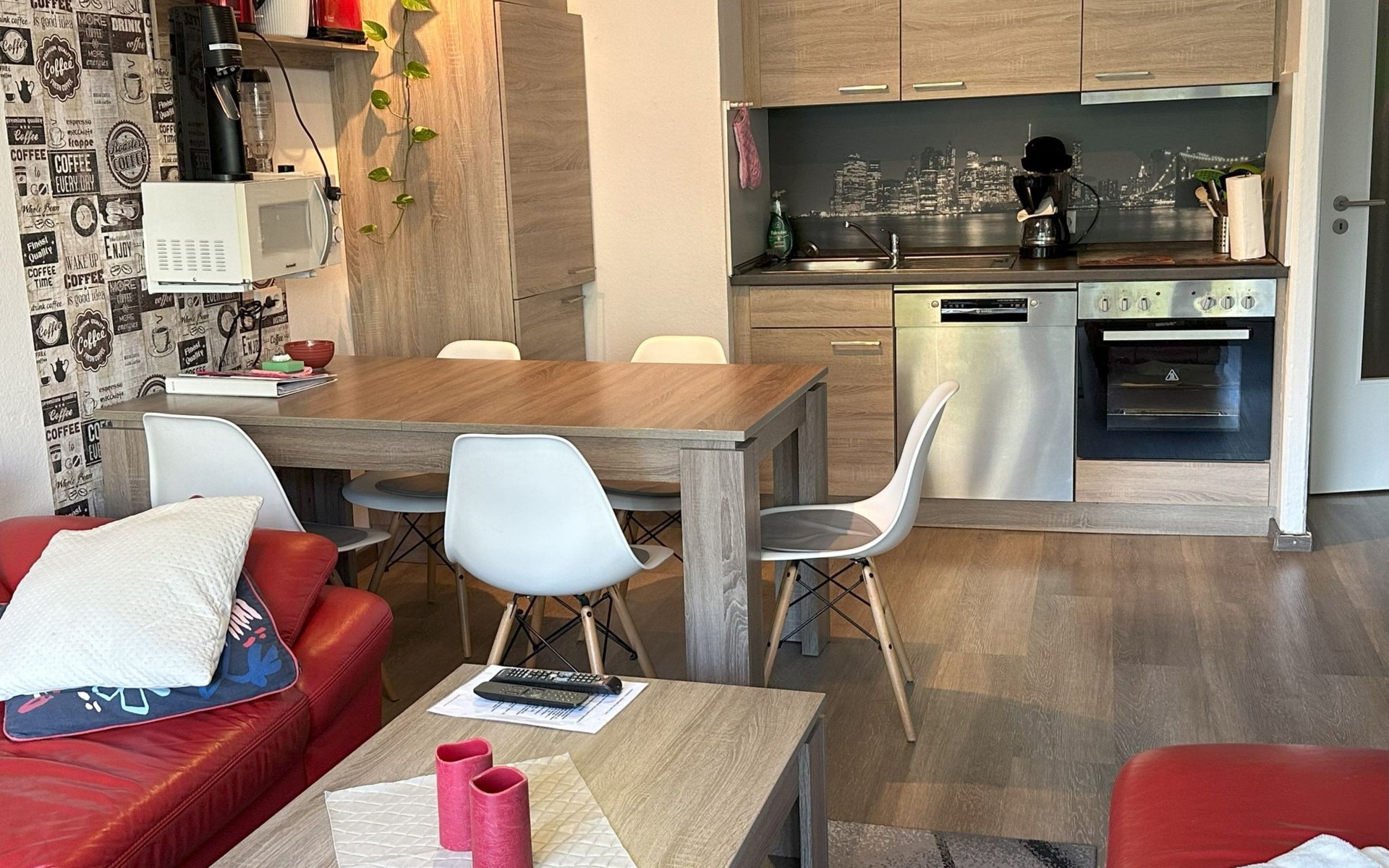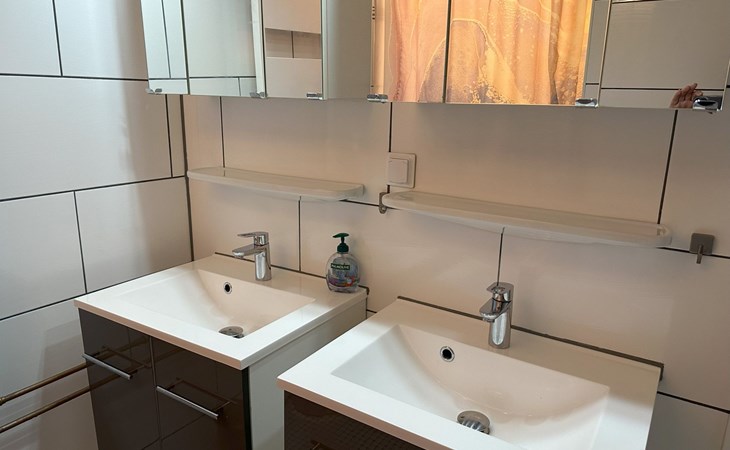 **Interior life in perfection**: Our flat offers everything for a carefree stay. Three bedrooms with high-quality box-spring beds guarantee peaceful nights. The combined living/dining room with modern kitchenette, equipped with dishwasher, microwave, coffee machine and much more, leaves nothing to be desired. In addition, two sanitary areas, 1 x equipped with walk-in showers and double washbasins, provide comfort. and 1 additional guest WC with hand basin. A Smart TV, GIGA TV Box from Vodafone and a DVD player, complemented by free high-speed WLAN, provide entertainment for the whole family.