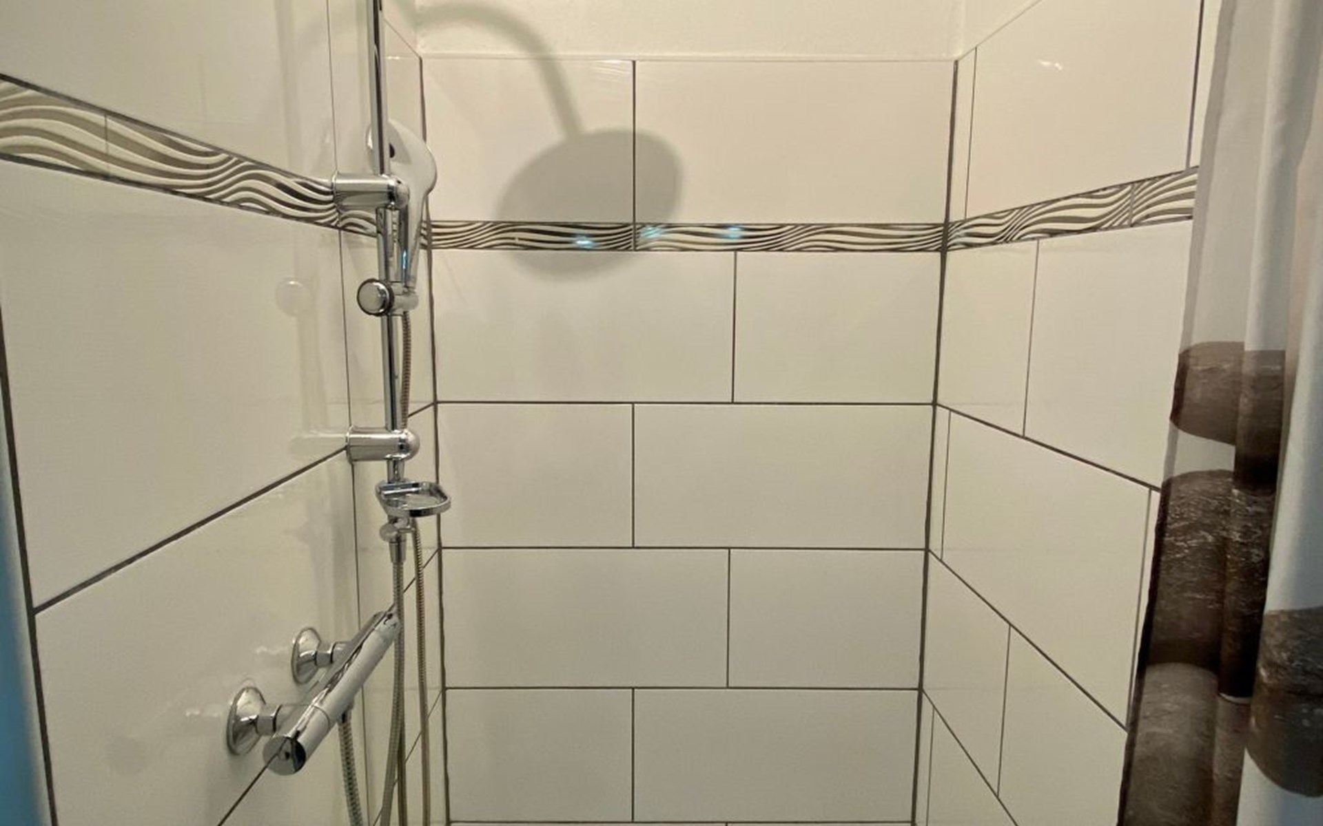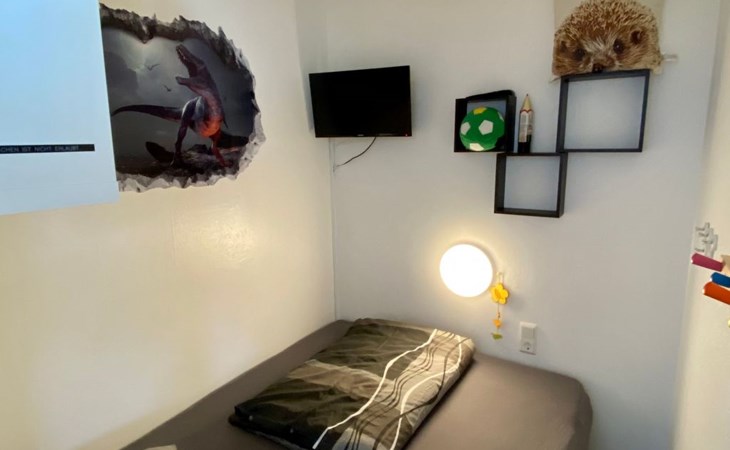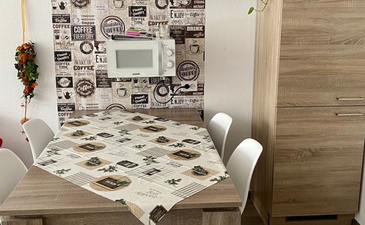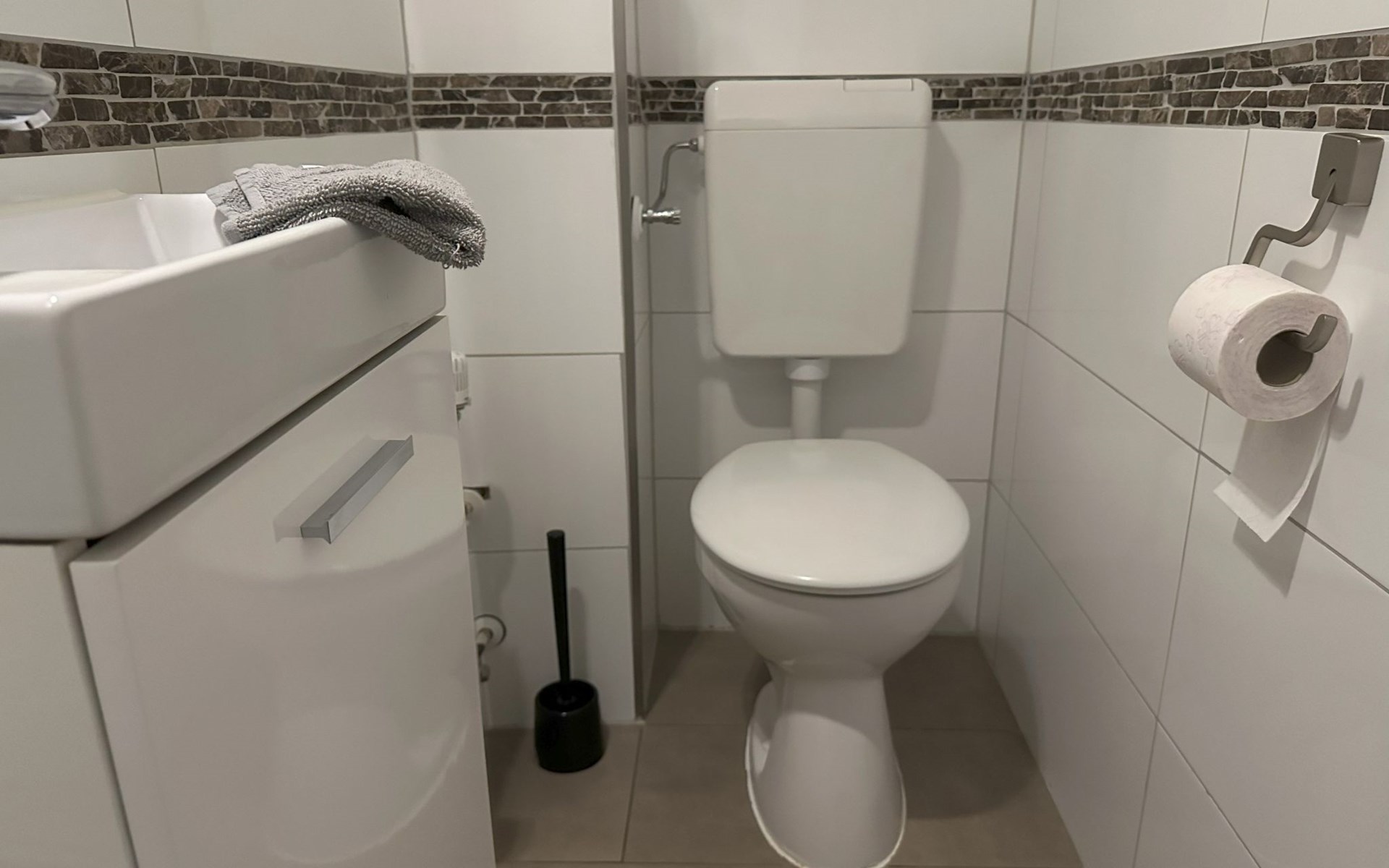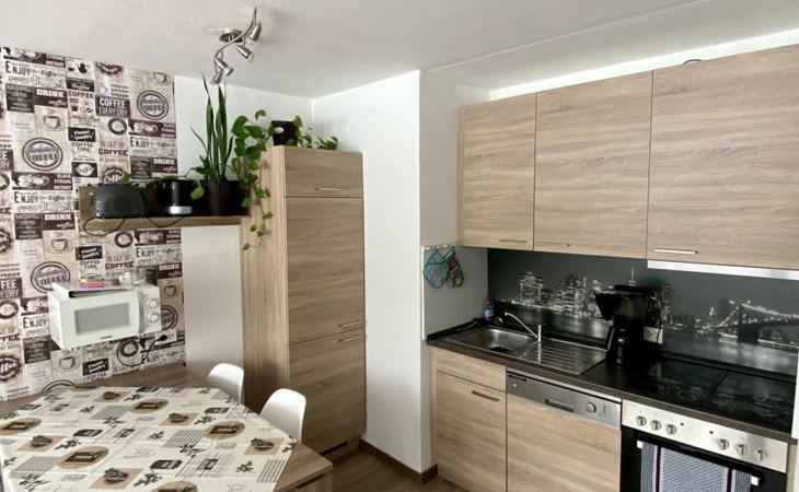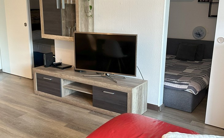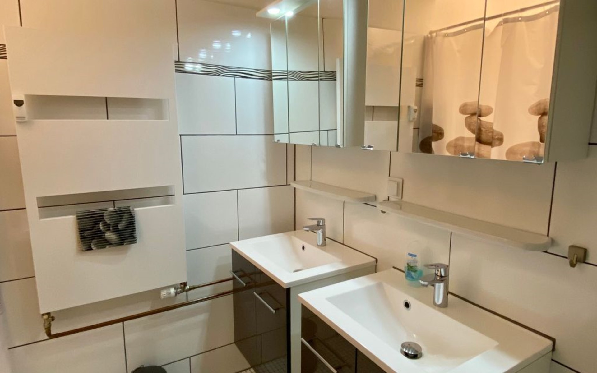 **Interior life in perfection**: Our flat offers everything for a carefree stay. Three bedrooms with high-quality box-spring beds guarantee peaceful nights. The combined living/dining room with modern kitchenette, equipped with dishwasher, microwave, coffee machine and much more, leaves nothing to be desired. In addition, two sanitary areas, 1 x equipped with walk-in showers and double washbasins, provide comfort. and 1 additional guest WC with hand basin. A Smart TV, GIGA TV Box from Vodafone and a DVD player, complemented by free high-speed WLAN, provide entertainment for the whole family.