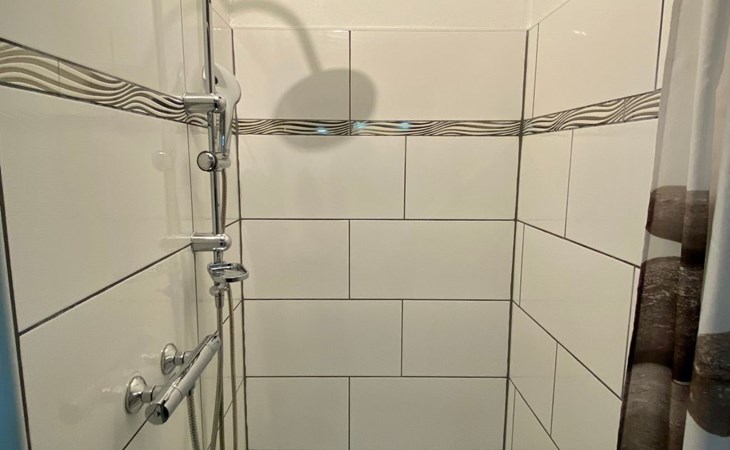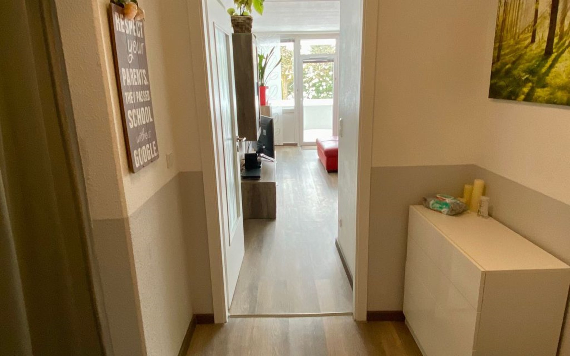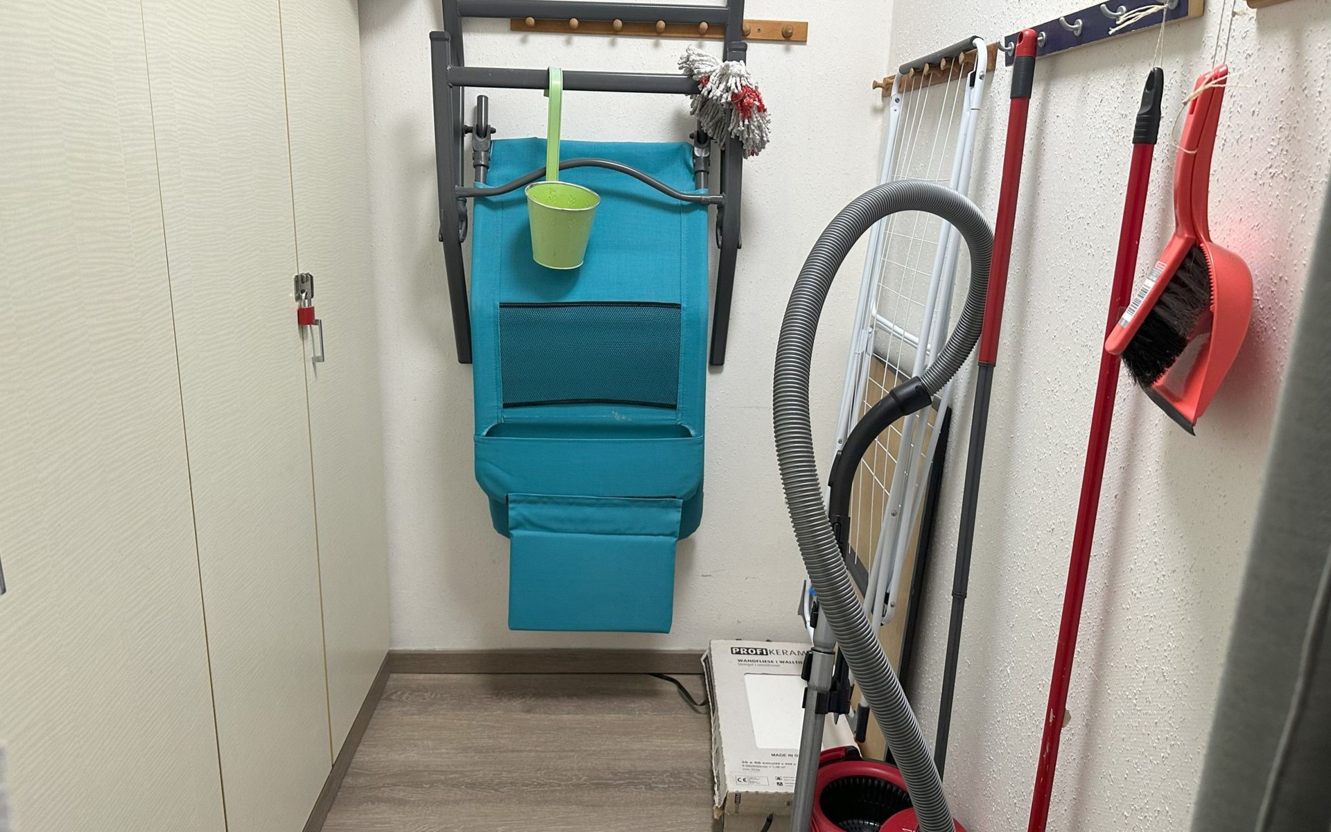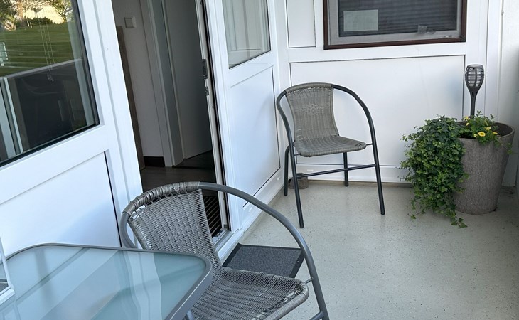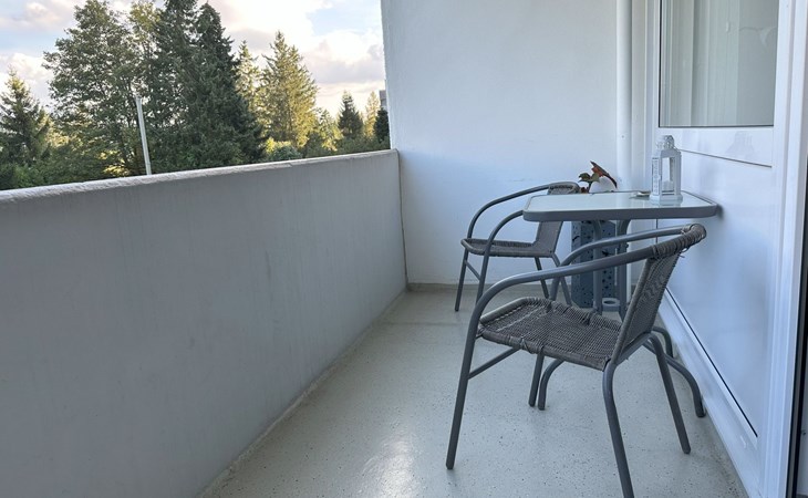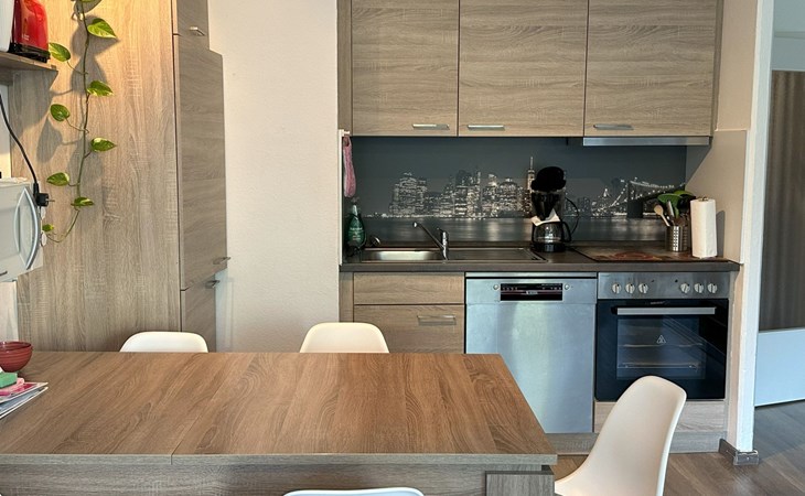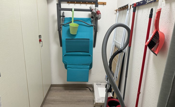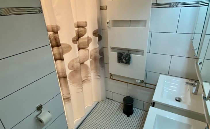 The flat is located on the mezzanine floor, so there are no stairs, the entrance door is wide enough for a wheelchair and the shower is at ground level (but not wheelchair accessible) and the door to the nicely furnished balcony is wheelchair accessible.