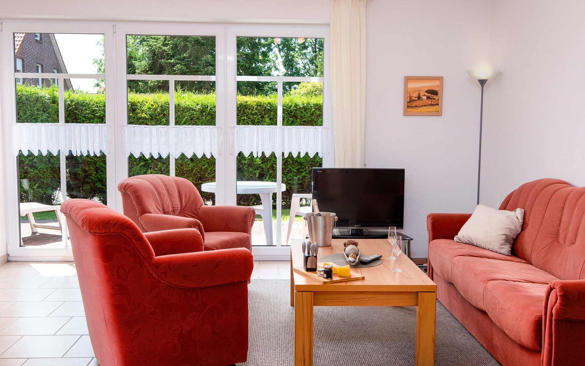 Beautiful apartment house. In the resort 1 km from the centre of Norddeich, 500 m from the sea, 1 km from the beach. In the house: storage room for bicycles, central heating system. Parking at the house. Supermarket 1.2 km, restaurant, bakery 600 m, café 800 m, bus stop 1 km, railway station 260 m, ferry 1 km, sandy beach 1 km, outdoor swimming pool 14 km, indoor swimming pool 2 km. Golf course (18 hole) 9 km, surf school 1 km, tennis 3 km, minigolf 2 km. Please note: railway line 10 m from the property.