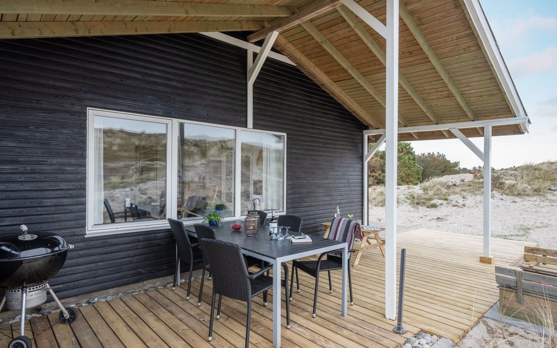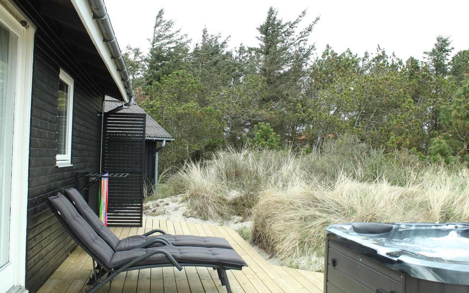 Single-family house, built in 1965. 750 m from the sea. Private: property 1'500 m2. Outdoor shower, terrace (20 m2), children's playground (swing). In the house: washing machine, tumble dryer. Parking at the house. E-charging station. Grocery 650 m. The owner does not accept any youth groups.