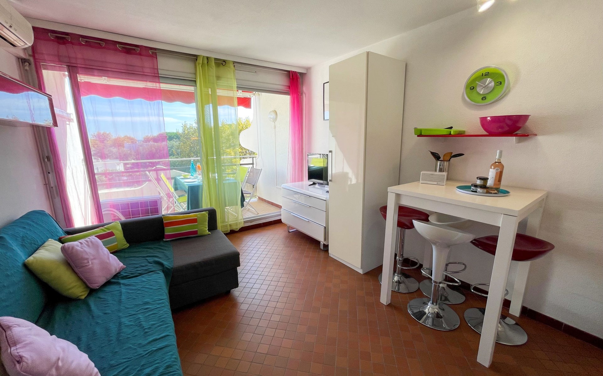 Residence "Du Soleil". In the district of La Motte du Couchant, 1.2 km from the centre, 200 m from the sea, 150 m from the beach. For shared use: swimming pool (21 x 12 m, depth 60 - 190 cm, seasonal availability: 15.Jun. - 15.Sep.). Outdoor shower. In the complex: lift. Public parking on the road extra. Shopping centre, restaurant, bar 100 m, bus stop "De lattre de Tassigny" 250 m, railway station "Montpellier" 25 km, sandy beach 150 m, indoor swimming pool 3 km, thermal baths "Thalasso Spa" 3 km. Sports harbour 900 m, golf course (18 hole) 3.5 km, sailing school 700 m, tennis 3 km, riding stable 1 km. Nearby attractions: Le Seaquarium du Grau Du Roi 10 km, Les Remparts d'Aigues Mortes 12 km, Les Saintes Maries de la Mer 40 km. Please note: airfield close by 20 km from the property. Additional accommodations can be booked.