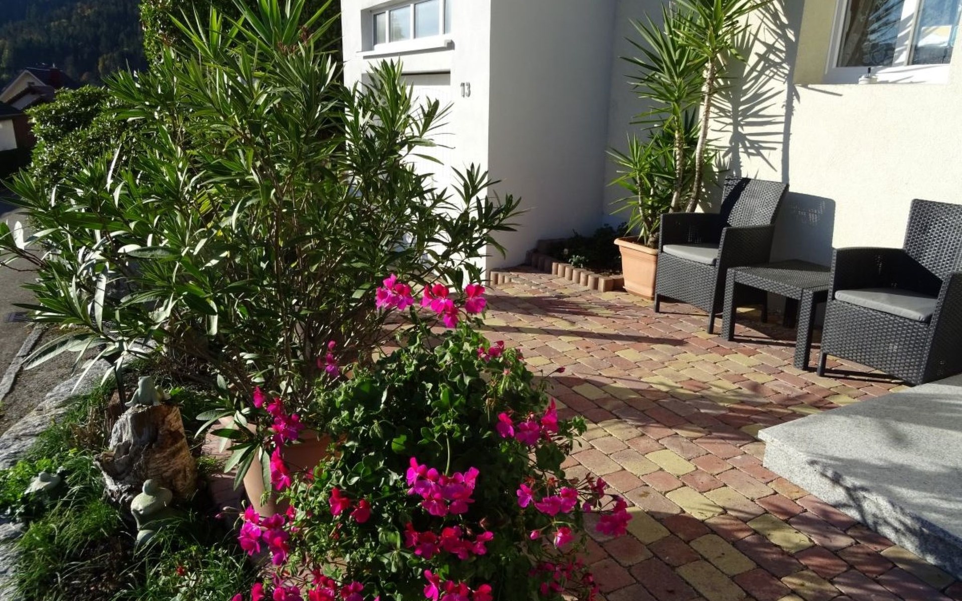 The outdoor area invites you to relax with a terrace and garden shed. Equipped with garden furniture and a barbecue, this area is the perfect place to unwind. The location in a cul-de-sac with no through traffic and the hillside position of the house guarantee peace and privacy. There is a carport parking space for your vehicle and a lockable garage for bicycles, as well as a charging station for electric cars for a fee.