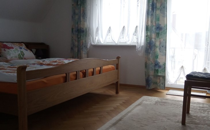 It is on two floors and was completely renovated in 2012. The ground floor has a generous hallway, a comfortably furnished living and dining room with a corner bench group, a sitting corner, a TV and stereo system, a kitchen-diner renovated in 2017 with a sitting corner, a ceramic hob and oven, dishwasher, fridge, electric universal cutter, kettle and coffee machine, a WC and a little adjoining conservatory. The first floor comprises three bedrooms, one with a double bed, a large built-in cupboard with mirrors on the door and a balcony, the second with two single beds (90 x 200cm), the third also with a built-in cupboard and a double sofa bed. This room also has a balcony. The first floor also includes a bathroom with a shower and WC. A washing machine and dryer are available on request.