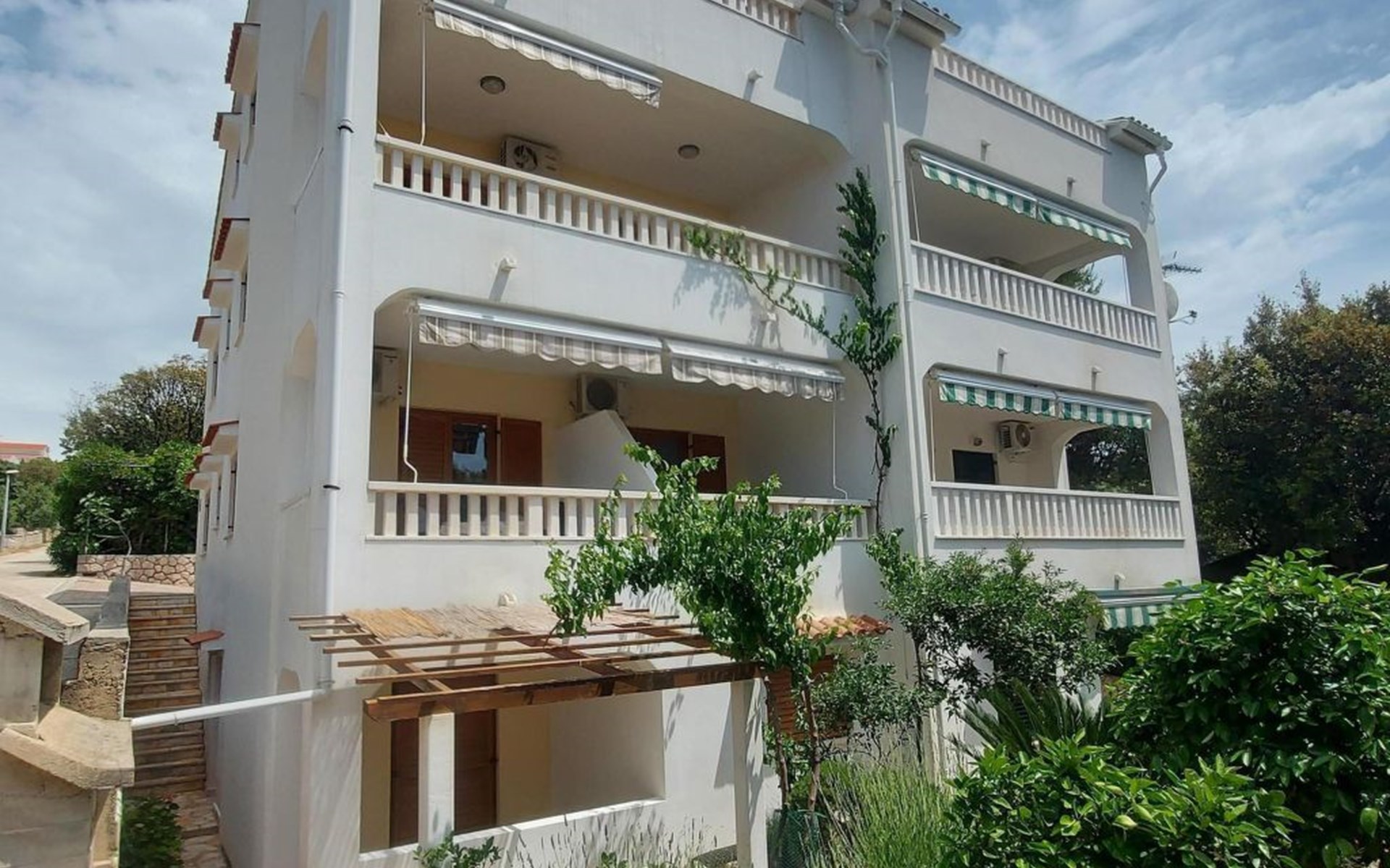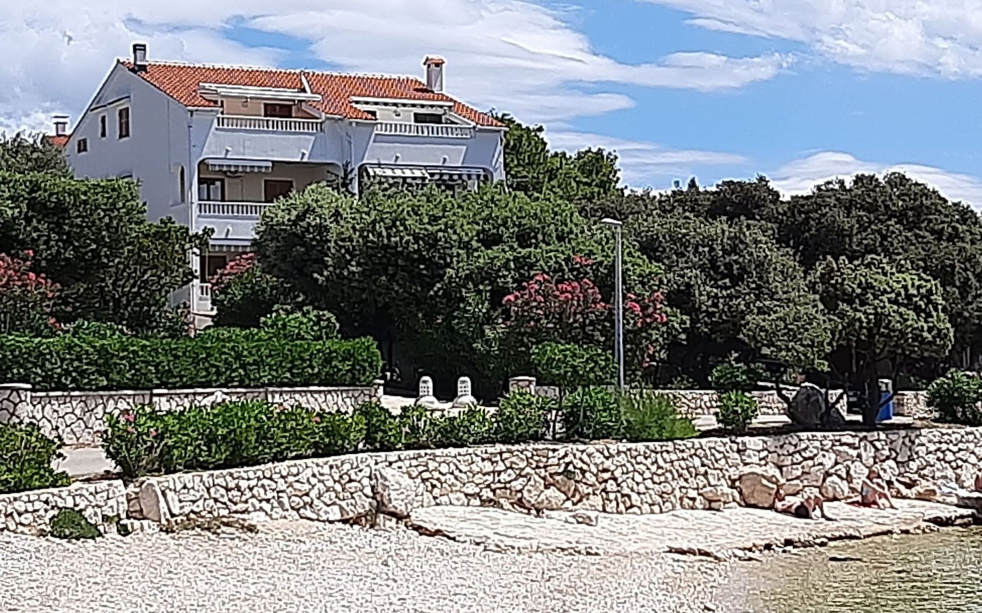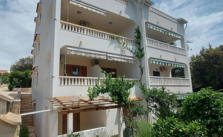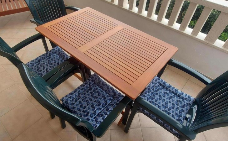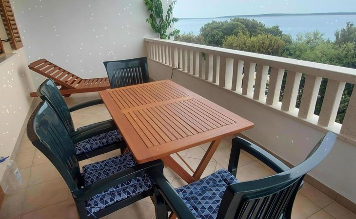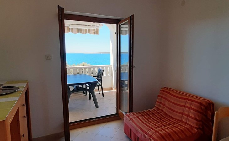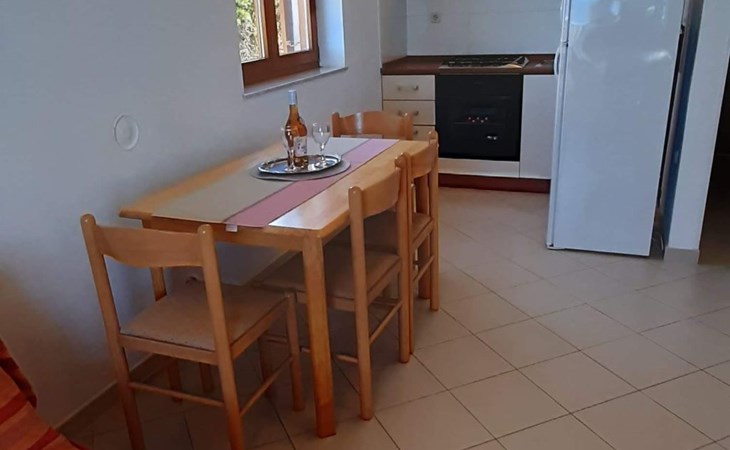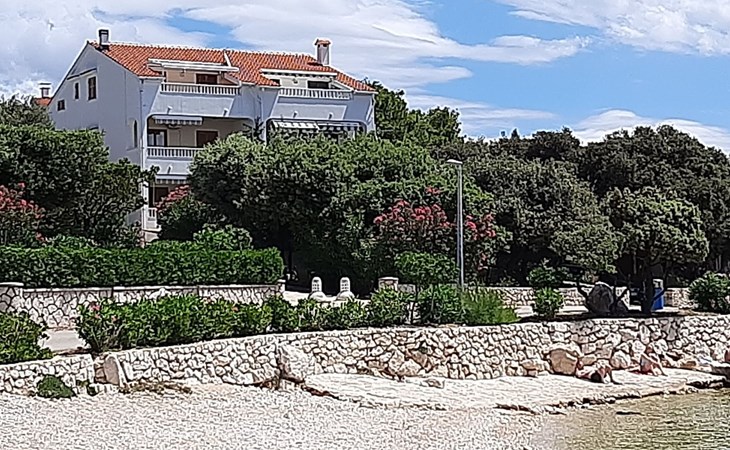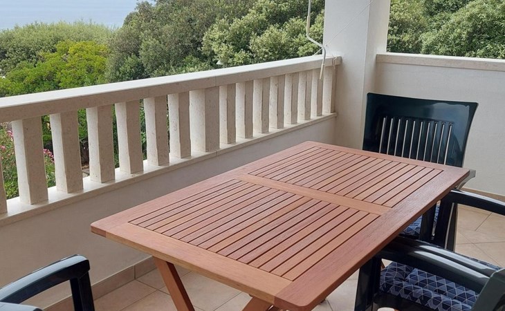 This 65m² apartment is on the second floor of the house. It is suitable for up to five people and affords a wonderful view of the sea. The two bedrooms are furnished with a double bed and two single beds respectively. The living room-kitchen includes a dining table with four chairs. The kitchen unit is equipped with a stove, oven, fridge, kettle and coffee machine. The two bathrooms are each fitted with a shower and WC.