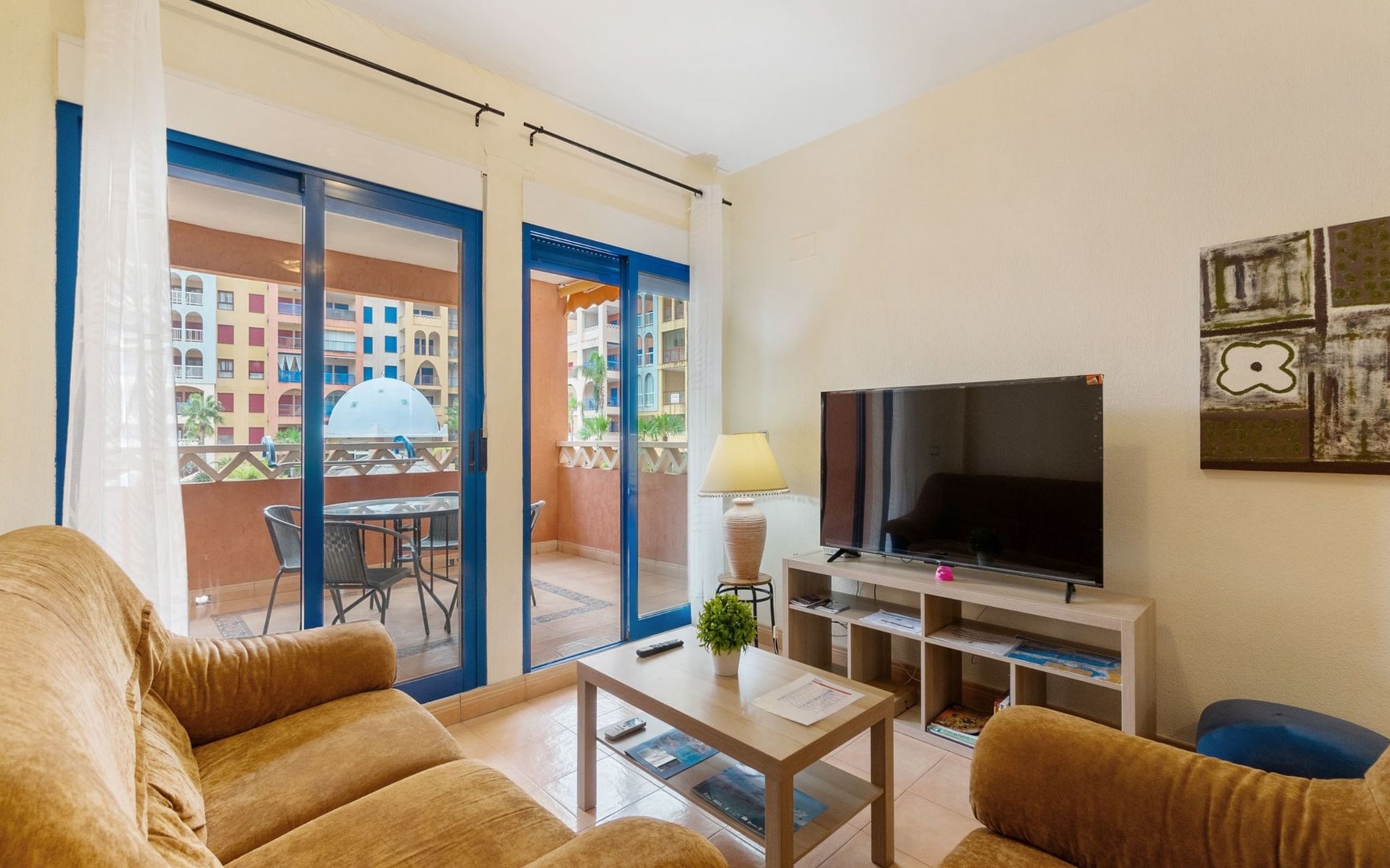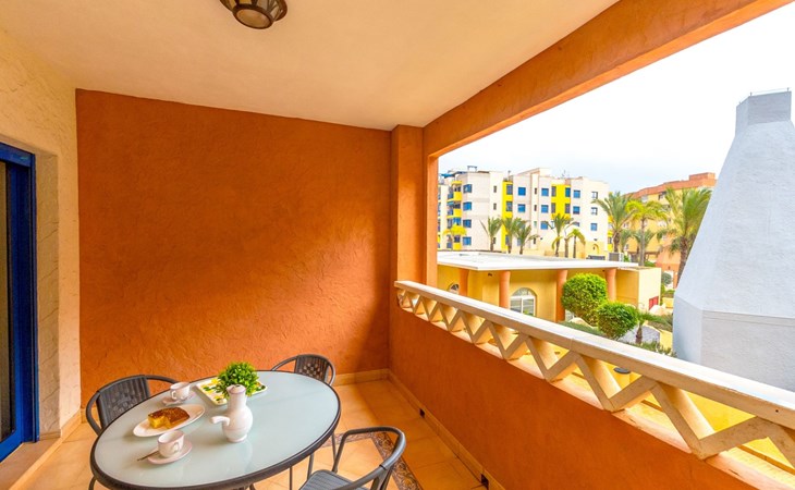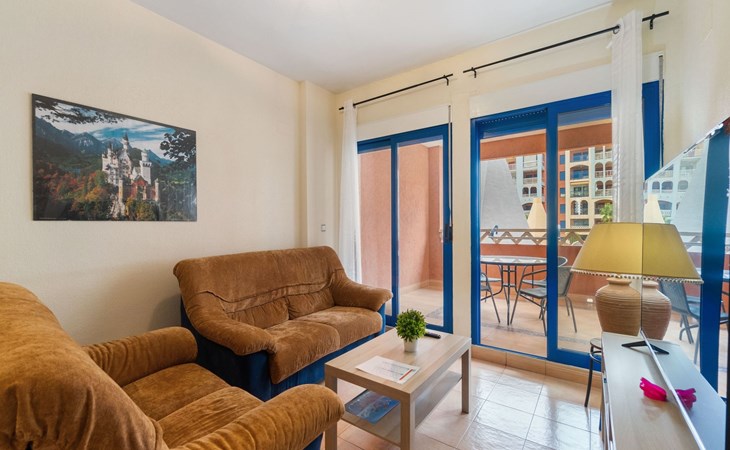 Comfortable residence "Verdemar". In a quiet, sunny position, 50 m from the sea, 50 m from the beach. For shared use: 2 swimming pools heated (35 x 20 m, depth 170 cm, seasonal availability: 15.Jun. - 15.Sep. and 25.Oct. - 01.Apr.). Children's pool, outdoor shower, hot tub. In the complex: fitness room, lift. Roofed, parking at the house. Supermarket 500 m, restaurant, bar, café 80 m, bus stop 400 m. Sports harbour 4 km, golf course (18 hole) 10 km. Nearby attractions: Cartagena 30 km. The owner does not accept any youth groups. Neighbourhood highly sensitive to noise. Quietness and good behaviour expected.