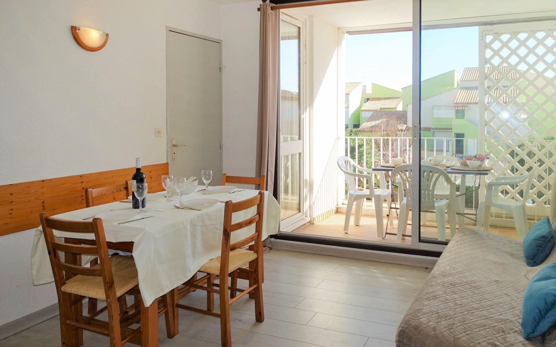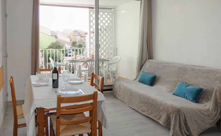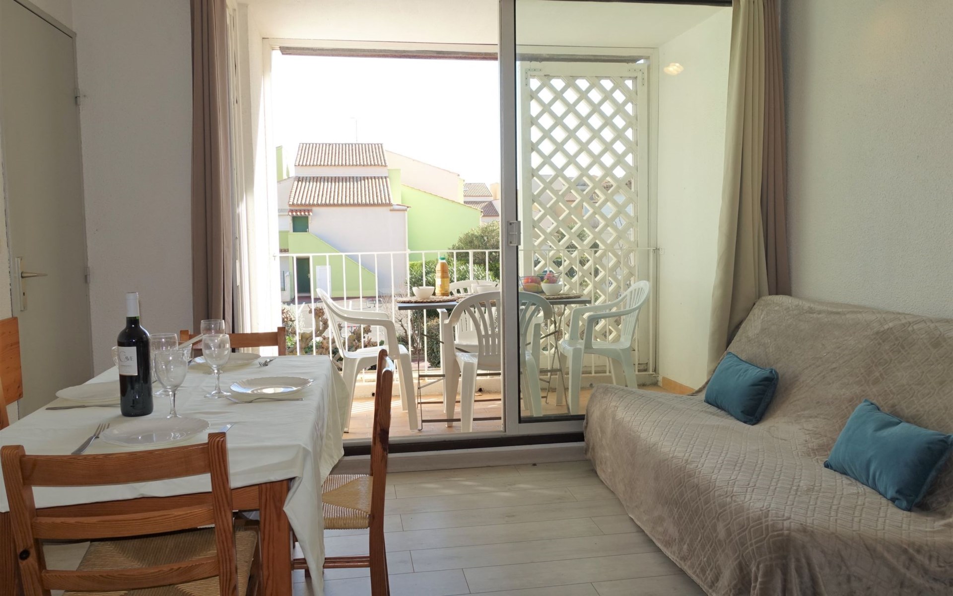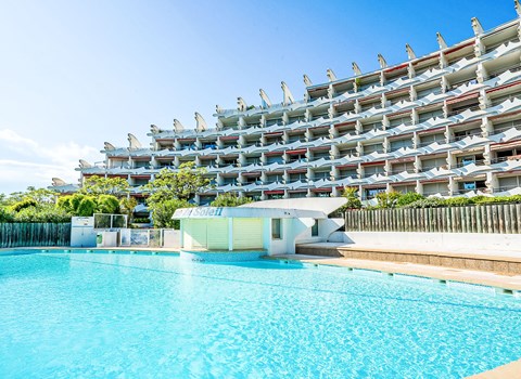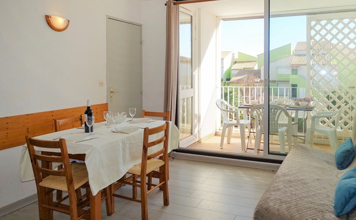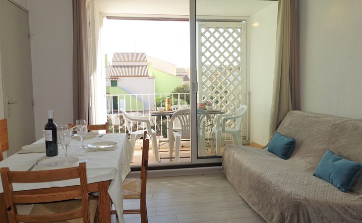 Residence "Les Balcons de la Méditerranée". 600 m from the centre of Narbonne-Plage, 100 m from the sea, road to cross. Public parking. Shop, restaurant, bar 600 m, bus stop 200 m, diving center 2 km. Sports harbour 2 km, sailing school 2 km, riding stable 5 km. Nearby attractions: Réserve Africaine de Sigean 33 km, Cité de Carcassonne 73 km, Espace balnéoludique de Gruissan 6 km. Please note: the photograph shows a typical example. Additional accommodations can be booked. Some apartments are situated on the "beach" side and some of them are on the street-side (through road "Avenue de Languedoc"). Others are inside the residence.