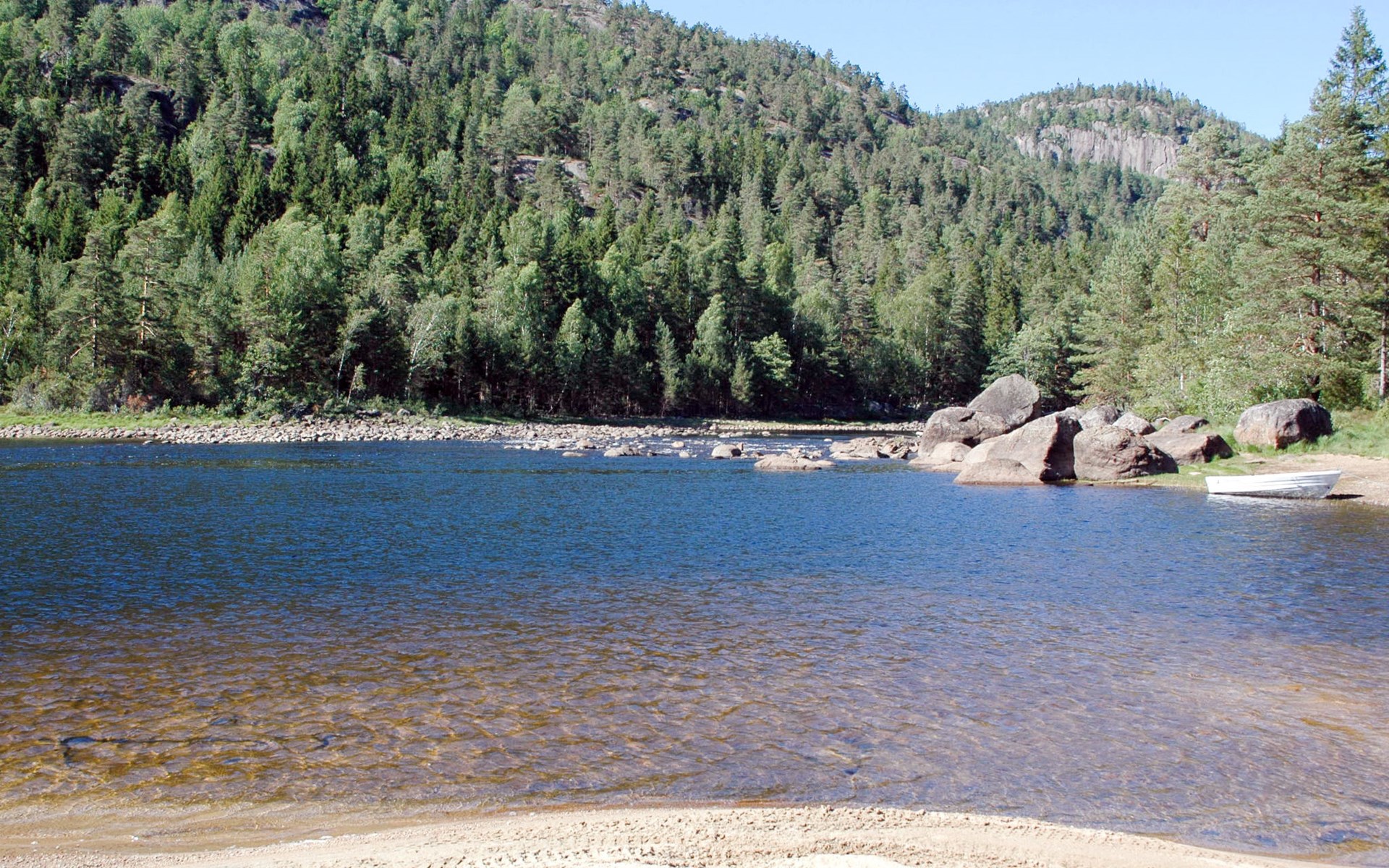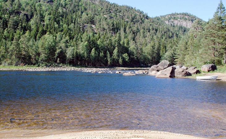Beautiful fisherman's house "Haven", surrounded by trees. 12 km from the centre of Birkeland, 45 km from the centre of Kristiansand, 46 km from the centre of Arendal, 100 m from the lake, 100 m from the river, in the countryside. Private: property, well-kept garden with meadow. Rowing boat with motor (on request), parking on the premises. Shop 12 km, supermarket 26 km, bus stop "Solbakken" 230 m, ferry "Kristiansand" 45 km, sandy beach 100 m. Fishing possibilities 100 m.