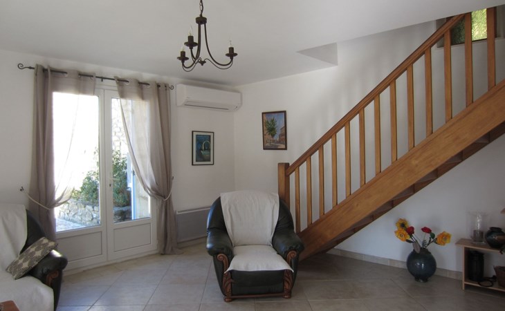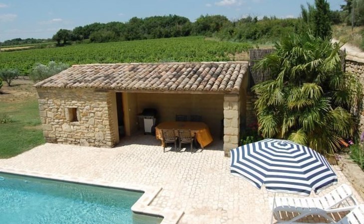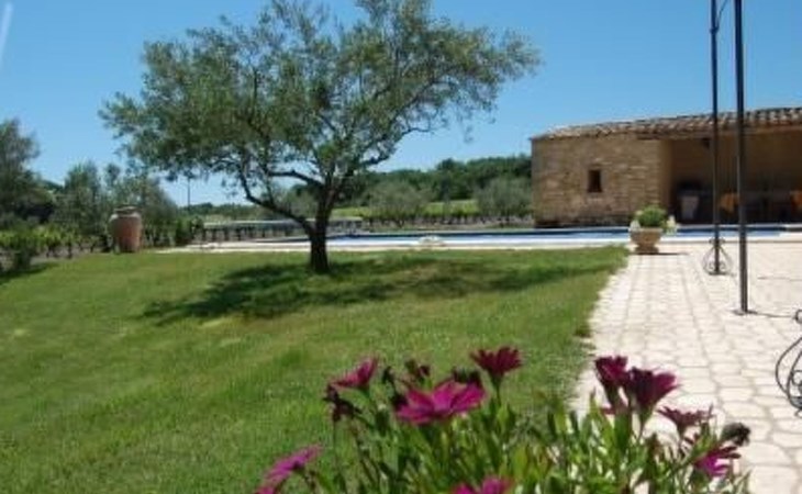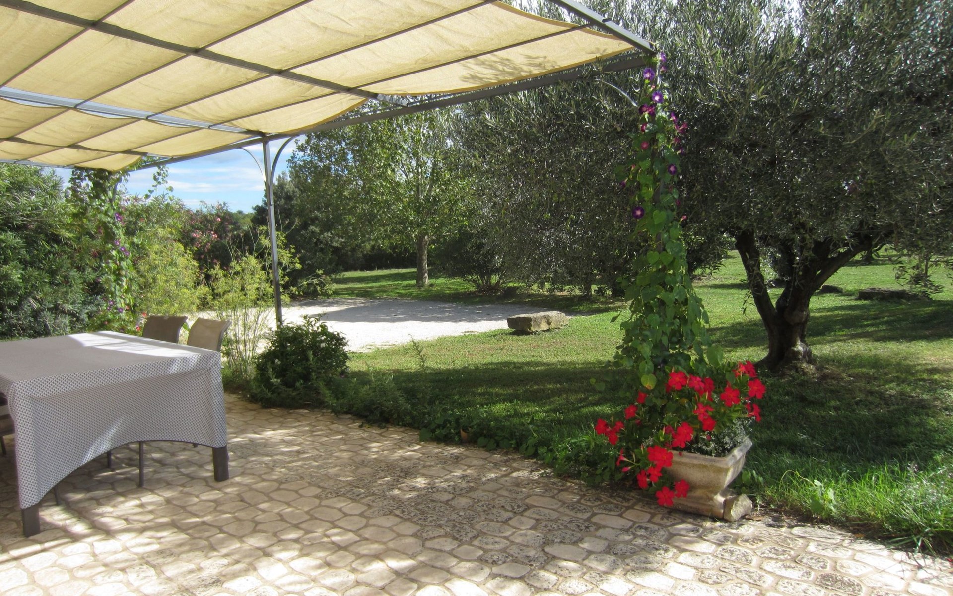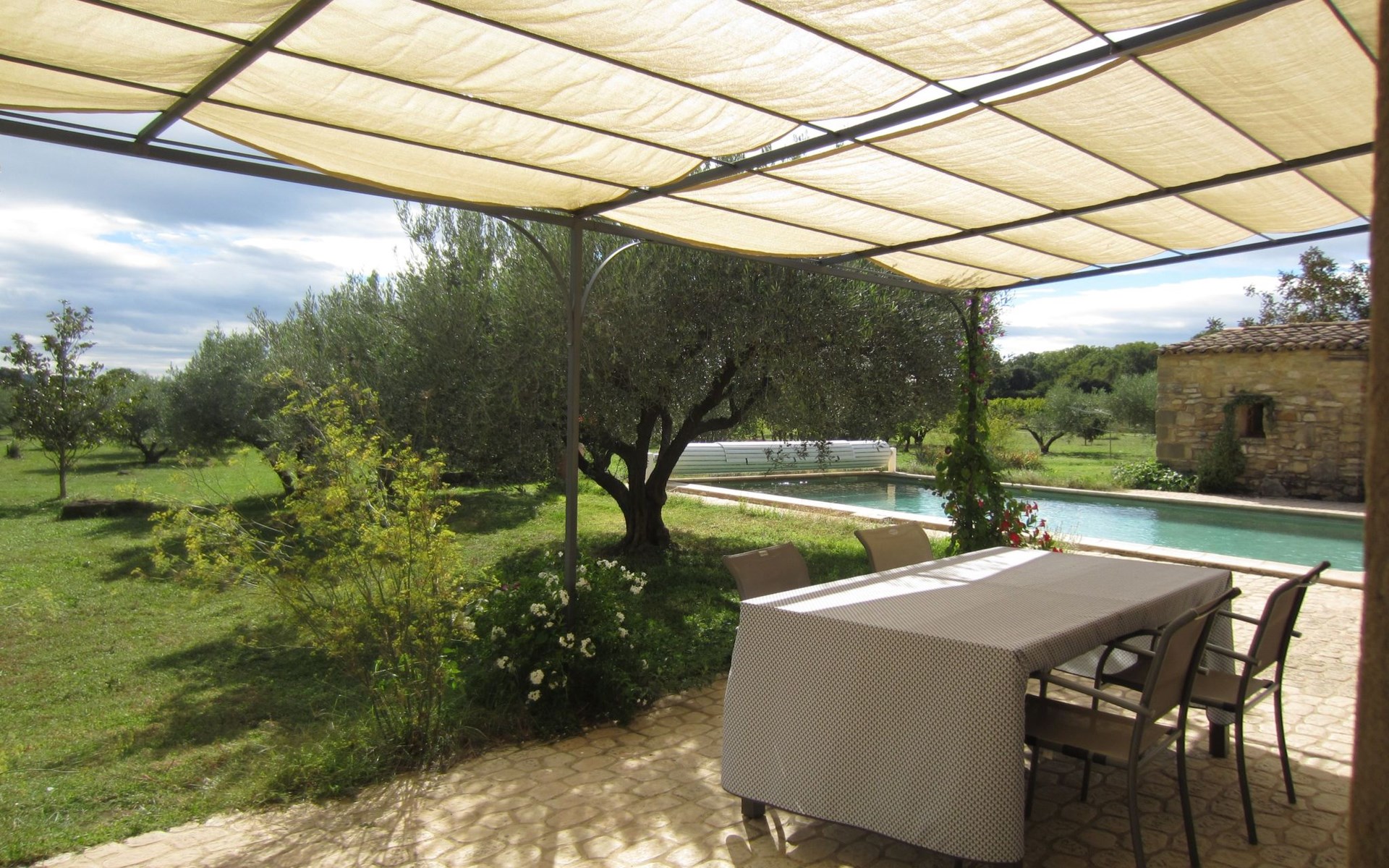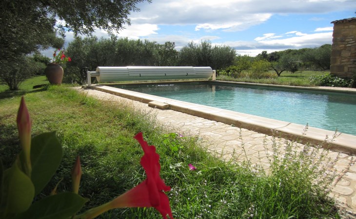 Outside, there are sun loungers by the pool and garden furniture with two tables. A toilet and gas barbecue are located in the pool house. There is an indoor clotheshorse in the garage and one outside. The fully fenced garden is safe for children and, possibly, your pets. You can swim in the pool (mid-March to mid-October), surrounded by olive trees, flowers and vines. The farmhouse is occupied solely by this rental property, with a fully fenced 5000 m² garden where you can pick fruit from the orchard (grapes, apricots, figs, tomatoes) free of charge.