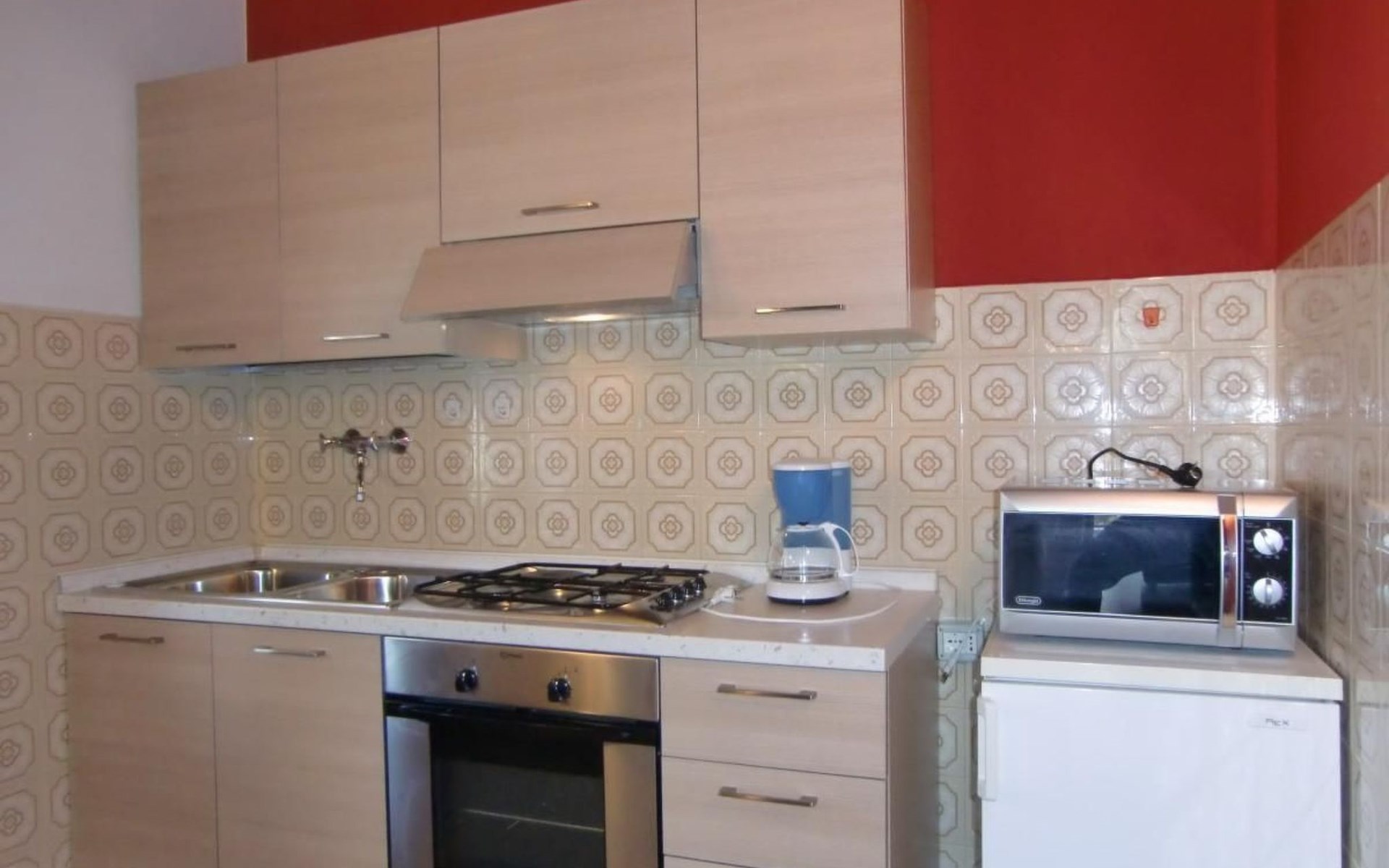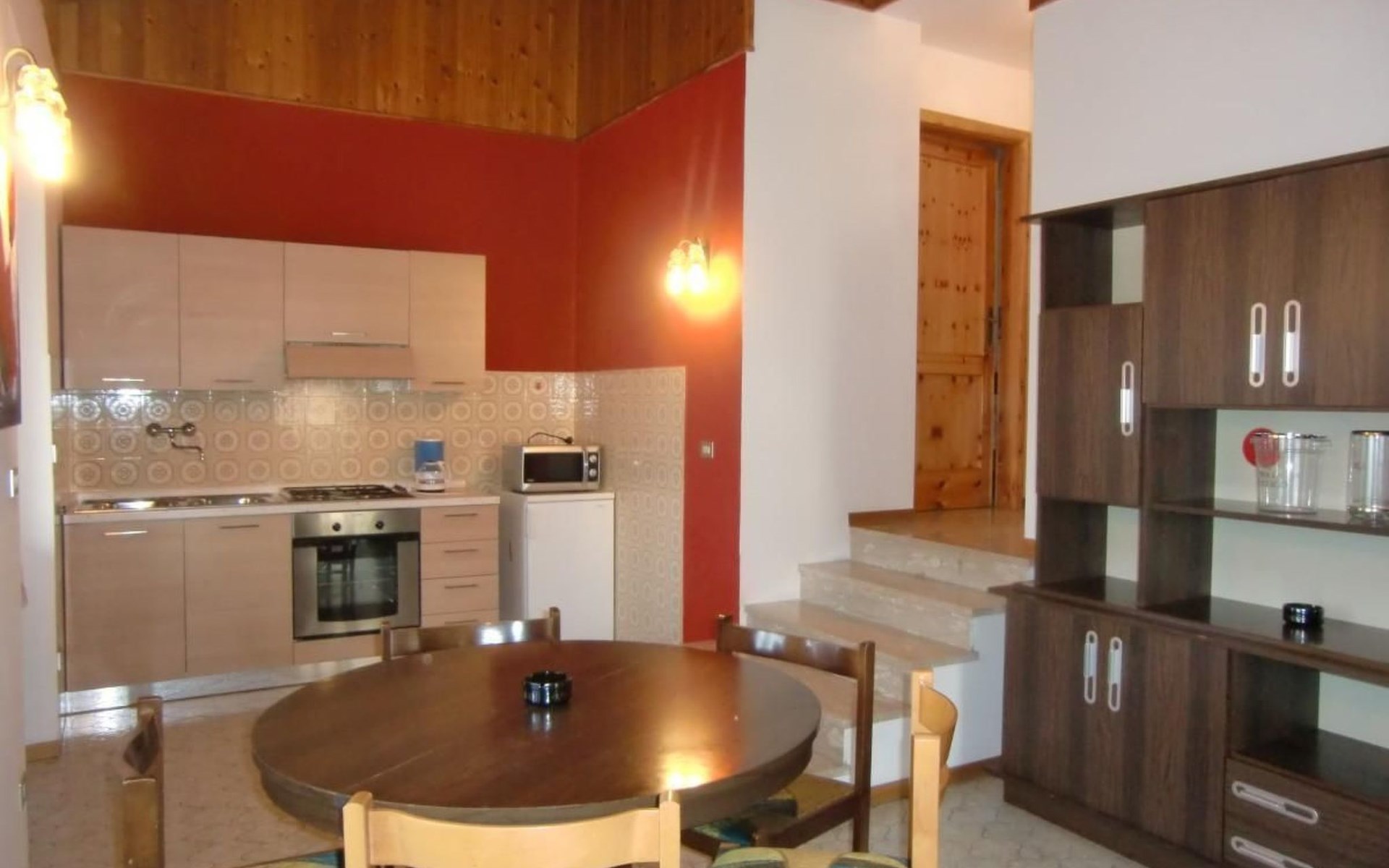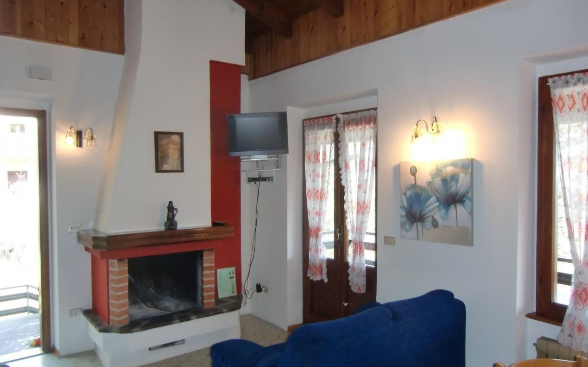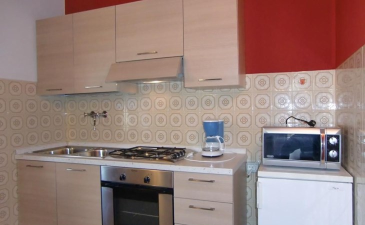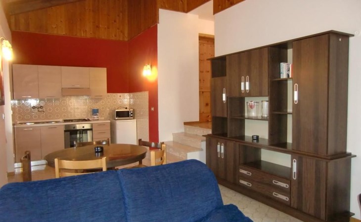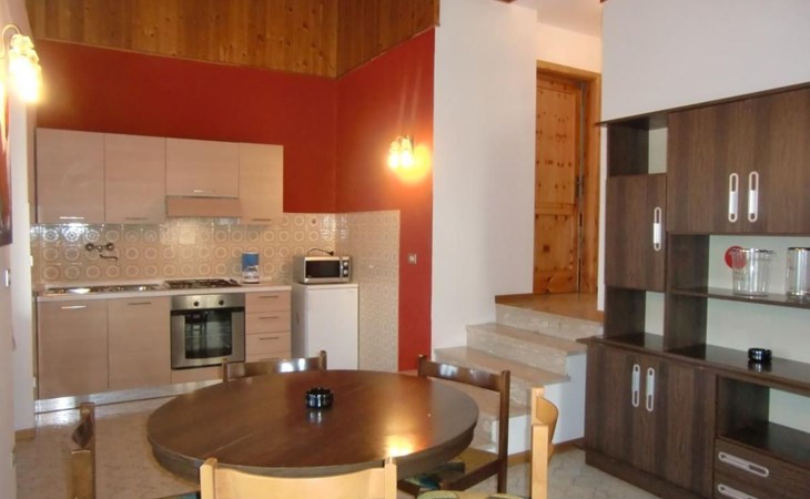 Internally, the flat boasts a warm living room complemented by a cosy fireplace, perfect for cosy and relaxing evenings. The kitchen is fully equipped with 4-flame gas range, fridge with freezer compartment, microwave oven and German coffee machine, ready to satisfy all your culinary needs. The house also includes a bathroom with shower, a comfortable double room and a room with three single beds, ideal for accommodating families or groups of friends.