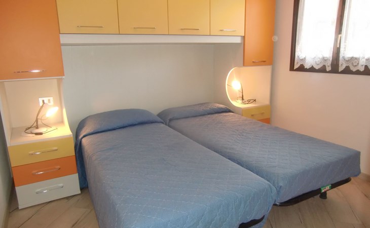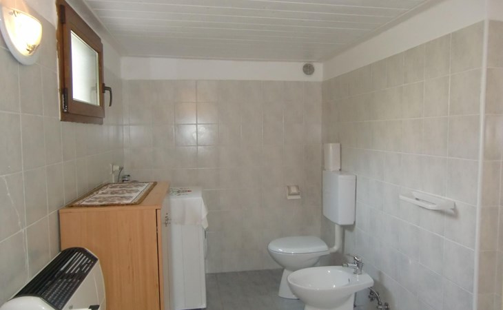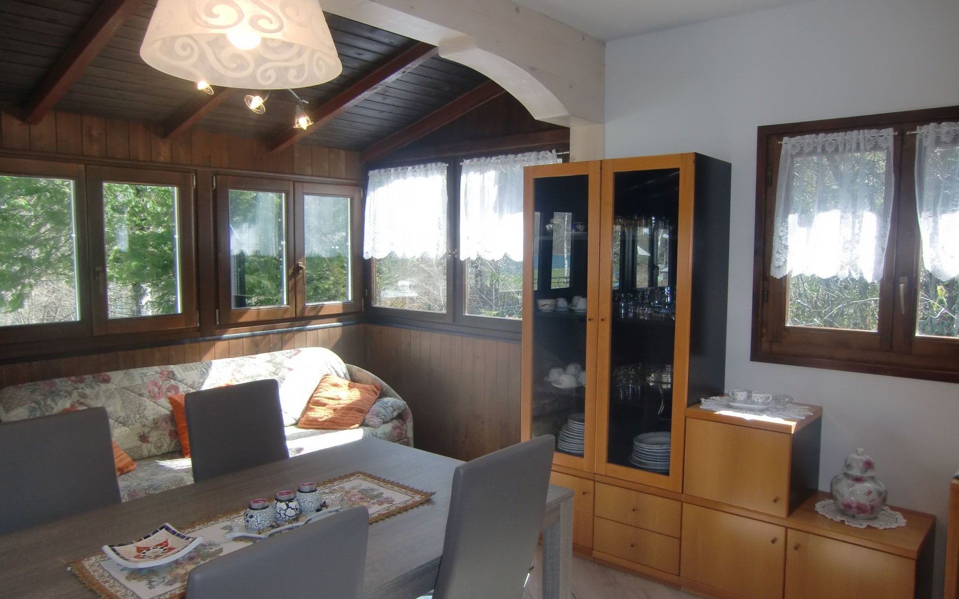 The ground floor of Casa Camilla stands out for its practicality and functionality, offering a main bathroom equipped with a shower cubicle, toilet, and washing machine, as well as a garage used for storing sports equipment. Ascending the internal wooden stairs, one reaches the first floor, which opens into a bright veranda with a lake view. Here, the living area offers a cosy lounge with sofa, next to a fully equipped kitchen that leaves nothing to be desired: fridge with freezer, dishwasher, gas oven and 4-burner hob. A bedroom with a double bed and one with two single beds complete the floor, next to a second bathroom with toilet.