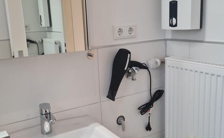 Inside, you will find a fully equipped kitchen that leaves nothing to be desired. With a ceramic hob, coffee machine, kettle and dishwasher, you are well prepared to enjoy cosy evenings with home-cooked meals. For added comfort, a fan is provided to ensure a pleasant breeze on warm days. The entire flat has been completely updated in 2020, making you feel at home right from the start.