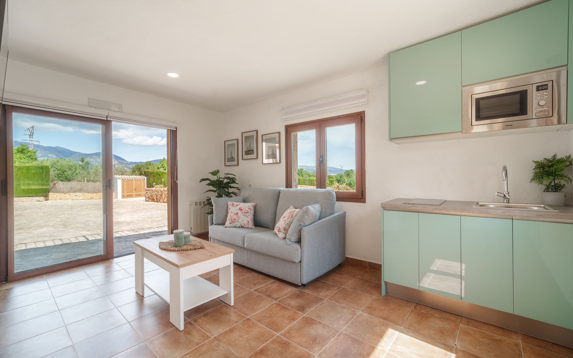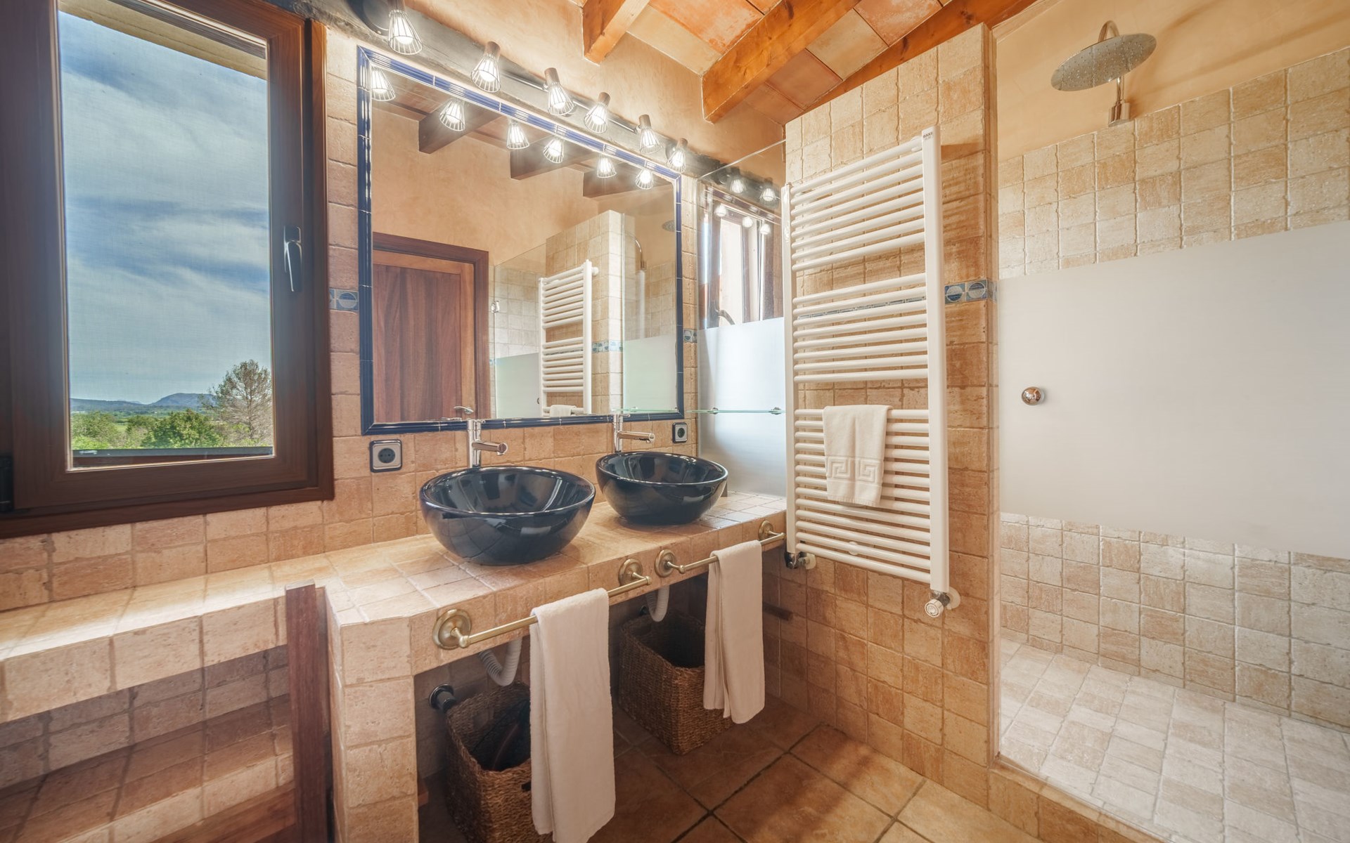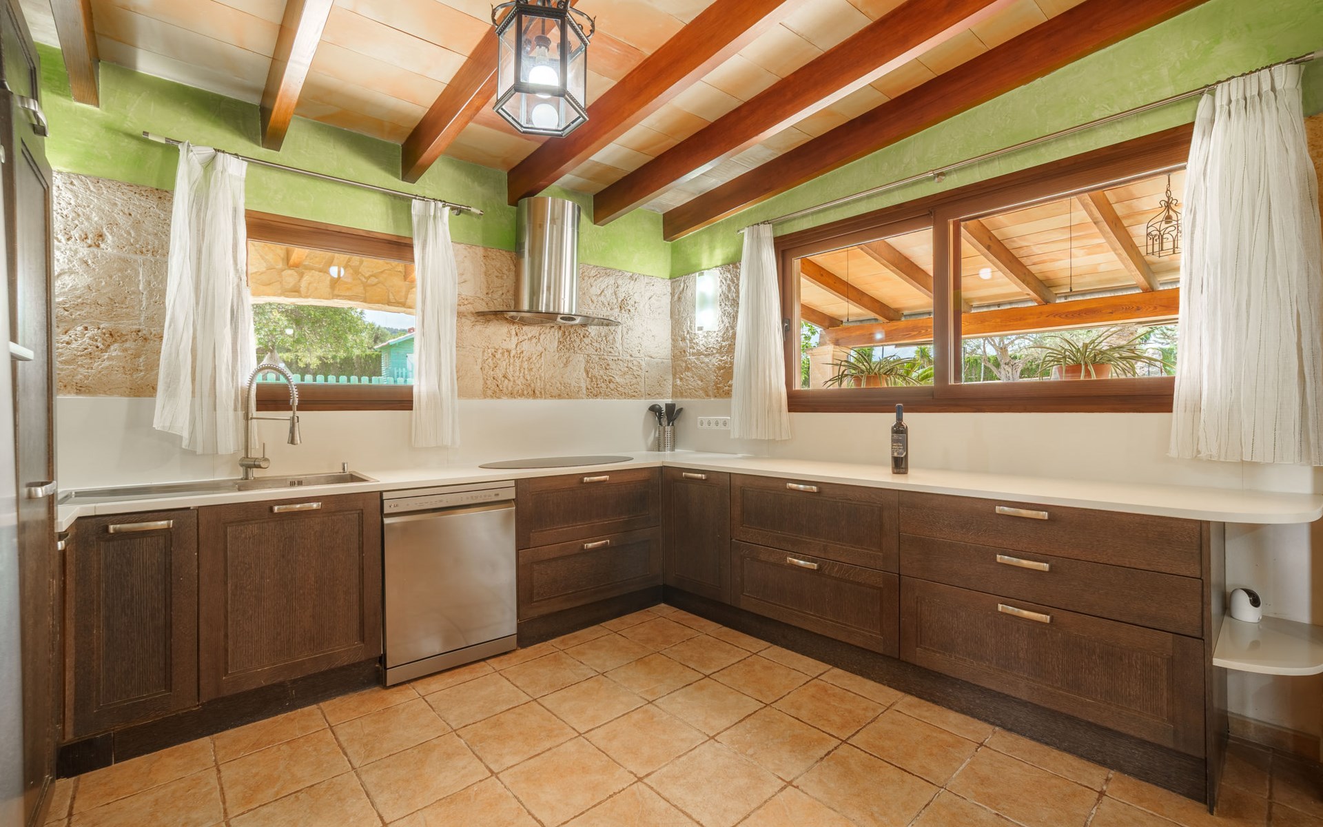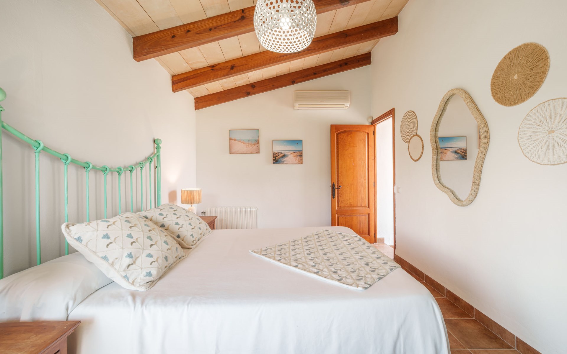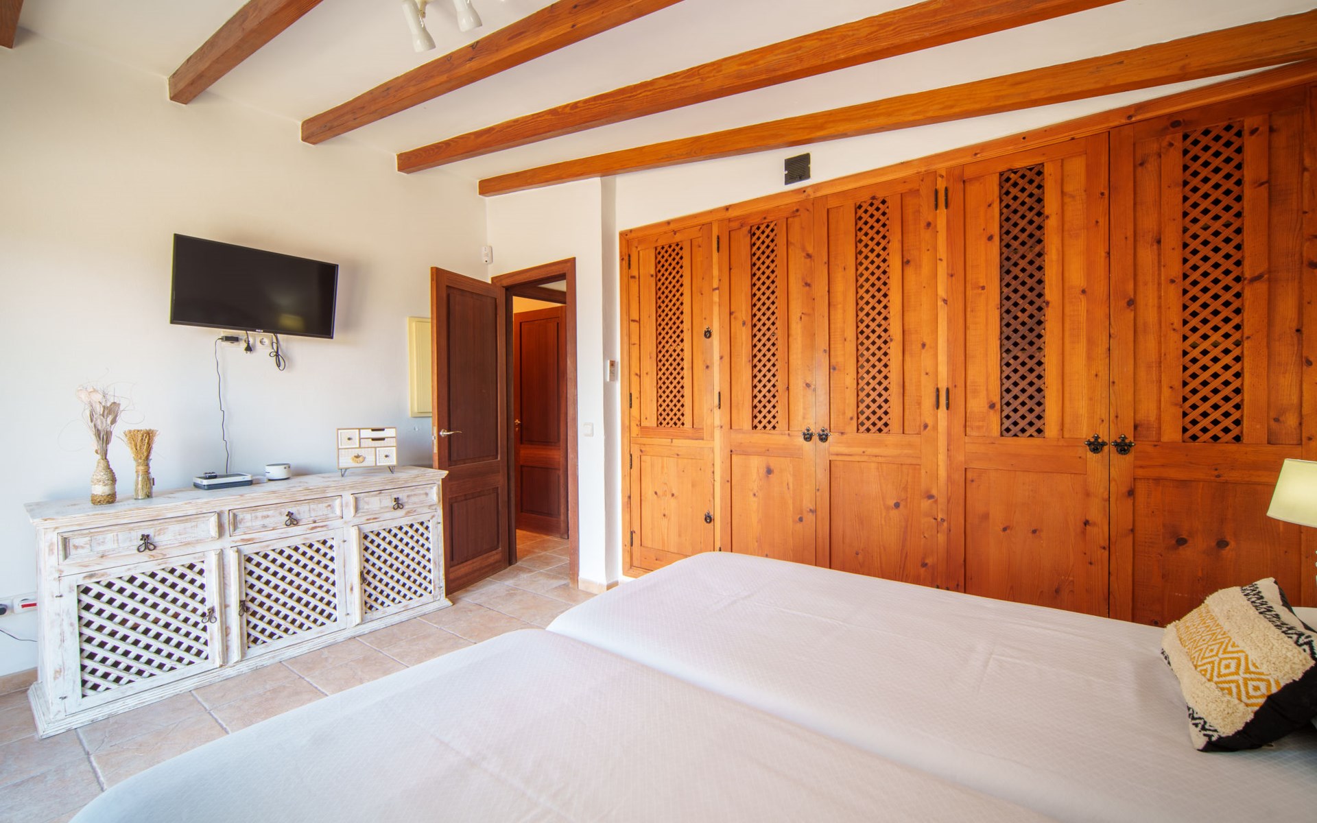 Very large, beautiful villa "Son Bosc", 2 storeys, surrounded by trees. Outside the resort, 4 km from the centre of Inca, in a quiet, sunny position residential area (villas), 2 km from the edge of the forest, 20 km from the sea, in the countryside. Private: property (fenced), garden with lawn and wildlife garden, swimming pool angular (11 x 5 m, depth 30 - 200 cm, seasonal availability: 01.Jan. - 31.Dec.). Outdoor shower, patio, arbour, pergola, garden furniture, barbecue, children's playground (slide, swing), pool maintenance by the owner/gardener. In the house: internet access, WiFi, storage room for bicycles, central heating system, air conditioning, washing machine, tumble dryer, heating available only from 01.Nov. - 31.Mar.. Parking at the house on the premises, single garage. Shop 5 km, grocery 5 km, supermarket 5 km, restaurant 3.5 km, bar 5 km, bakery 5 km, café 5 km, internet café 5 km, pedestrian zone 5 km, bicycle rental 5 km, pub garden 5 km, 60 minute walk to the centre, bus stop 5 km, railway station 5 km, sandy beach "Port Alcúdia" 23 km, rocky beach 23 km. Sports harbour 25 km, marina 25 km, golf course (18 hole) 25 km, sailing school 30 km, tennis 5 km, riding stable 8 km, sports centre 5 km, walking paths from the house 1.5 km, cycle lane 500 m. Nearby attractions: Ciudad de Inca 3.5 km, Palma de Mallorca 35 km, Mallorca Fashion Outlet & Cinemas 25 km, Pueblos:Búger-Campanet-Selva-Caimari. Playa y Faro de Formentor 35 km, Santuario de Lluc 22 km. Hiking paths: Puig de Santa Magdalena - Inca 3.6 km, Serra de Tramuntana. Please note: car recommended. Suitable for families. Object suitable for 9 adults. The owner does not accept any youth groups. Animals in the neighbourhood. Motorway 400 m from the property. Airfield 39.6 km from the property.