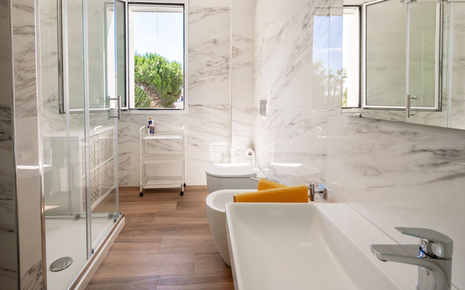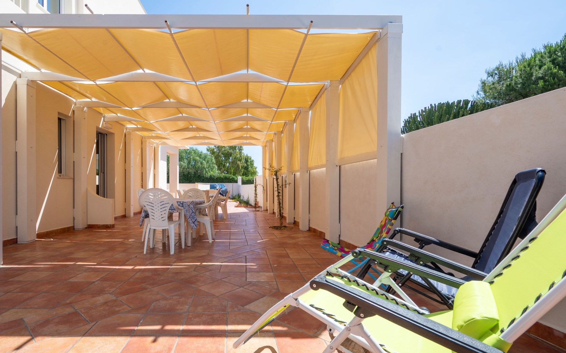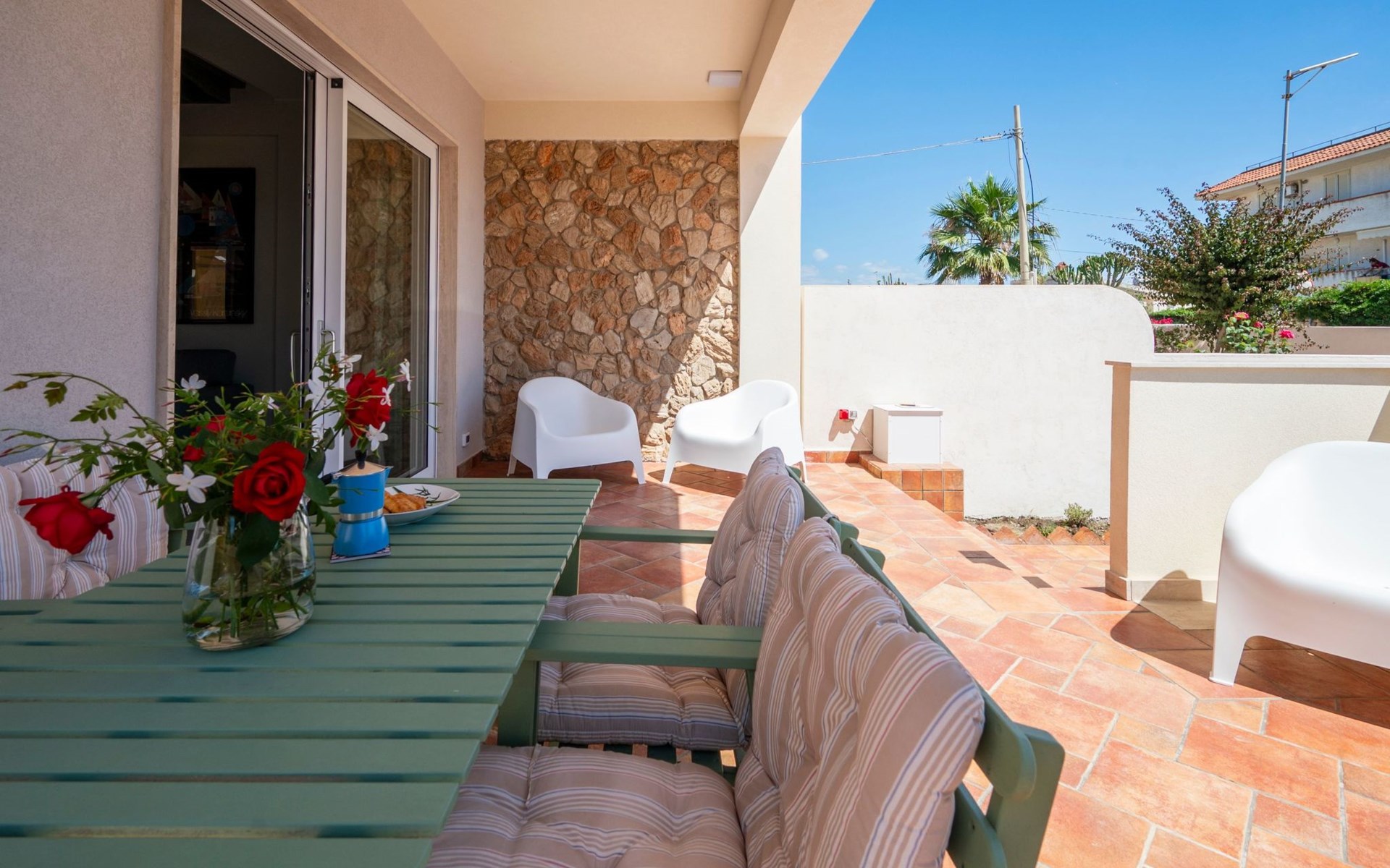 The villa offers an interior designed to guarantee maximum comfort and practicality. With 3 bedrooms and 2 bathrooms with showers, it comfortably accommodates all its guests. The air conditioning throughout ensures a cool and pleasant environment, while the washing machine for exclusive use makes the stay even more comfortable, ideal for those long holidays or for a quick refresh of beach clothes. In addition, the capsule coffee machine will be your perfect ally to start your day with energy.