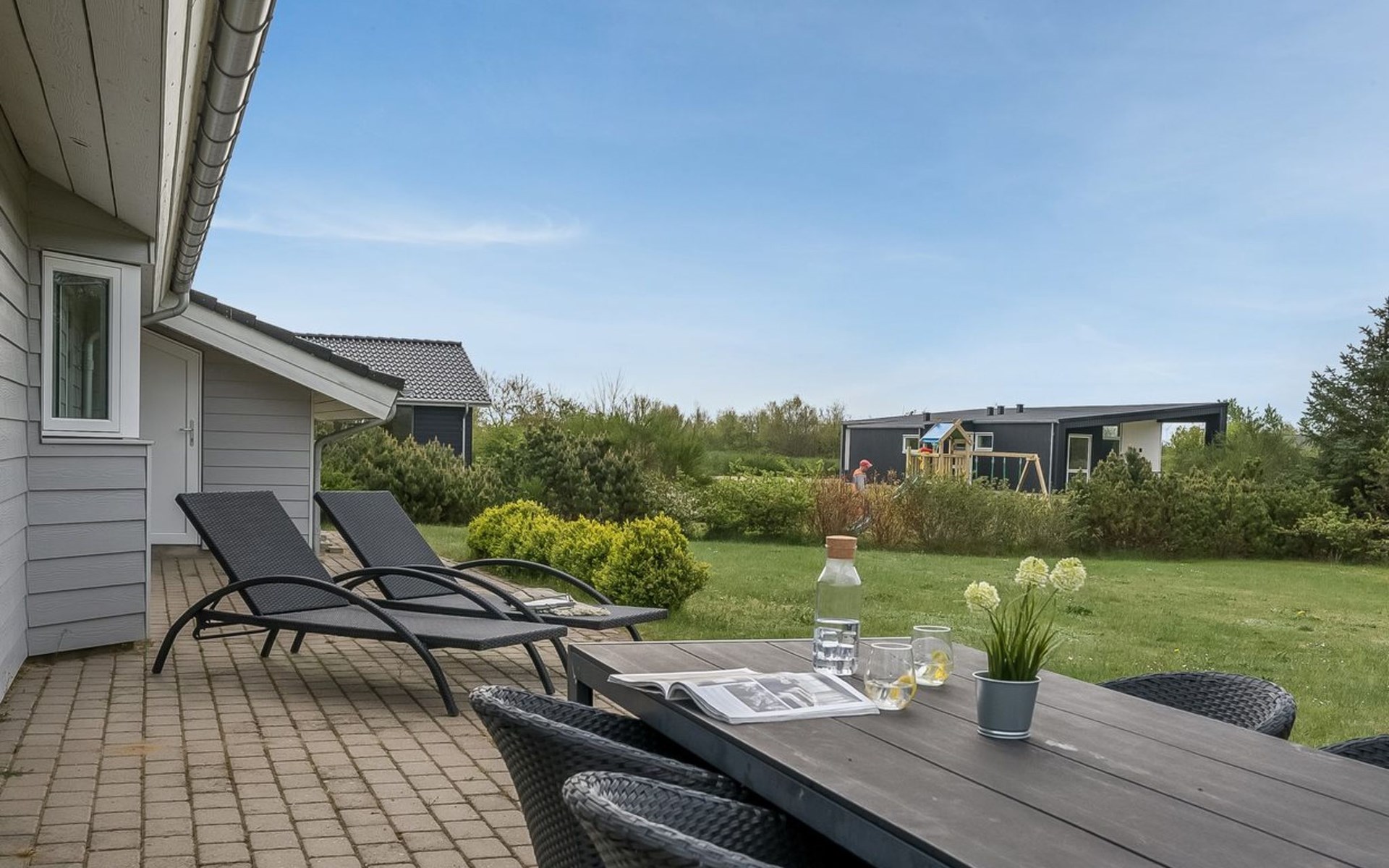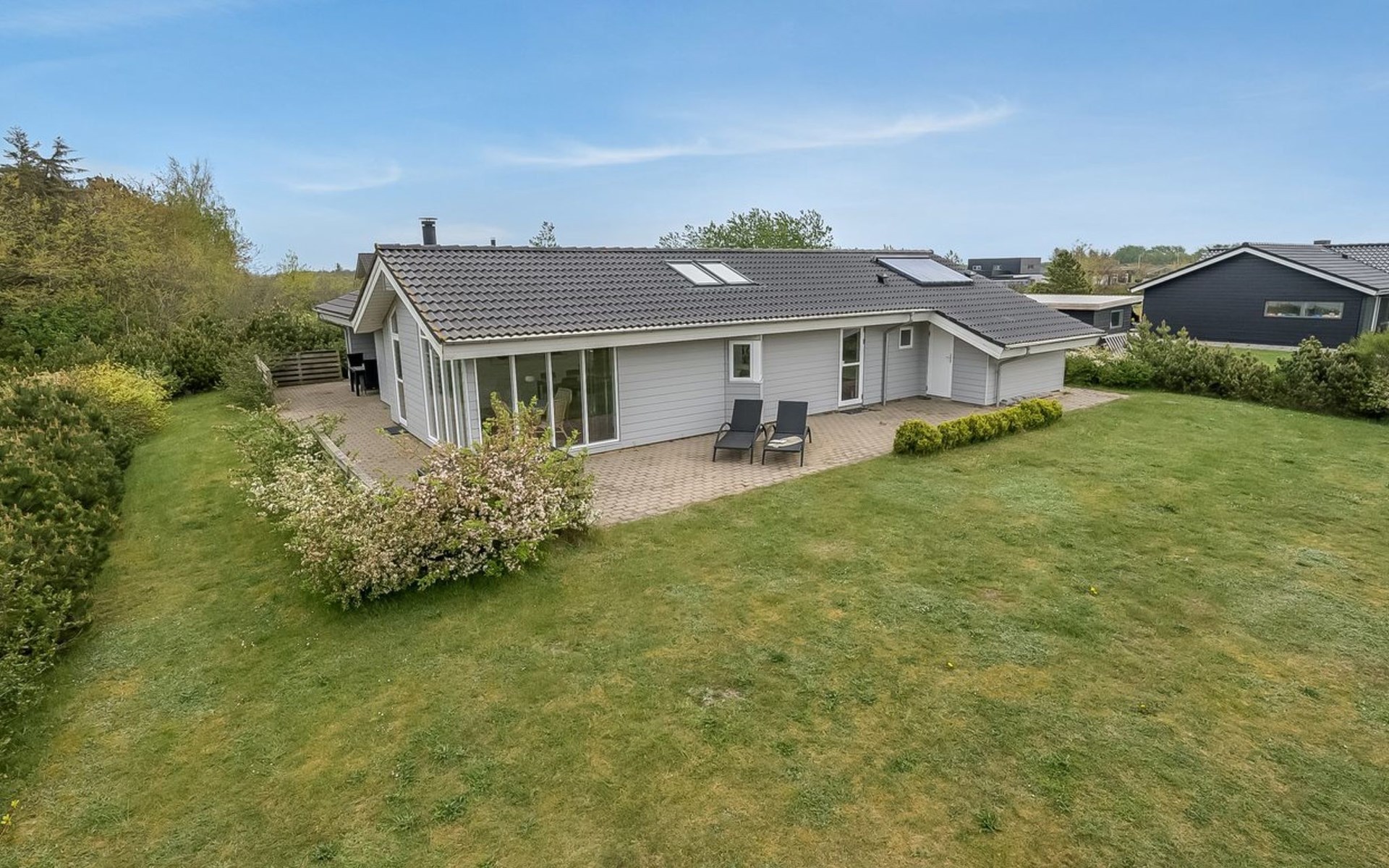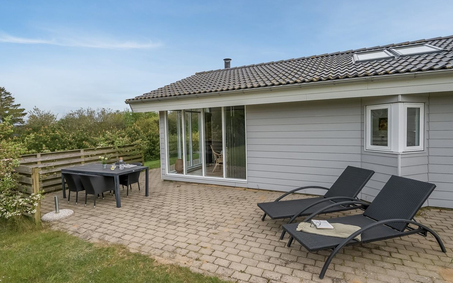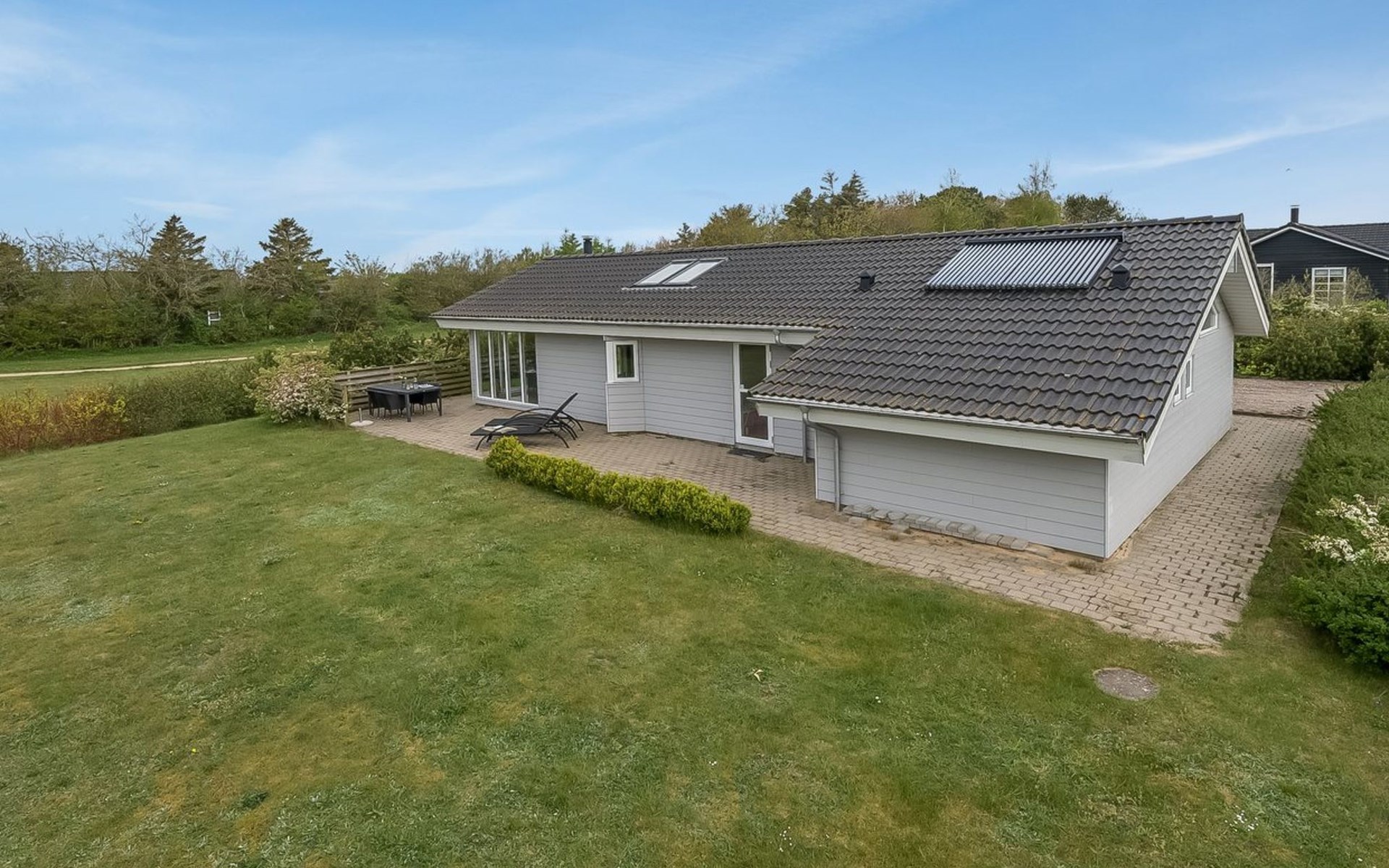 Single-family house, built in 2013. Private: natural state property 1'200 m2. Terrace (100 m2). In the house: sauna, washing machine, tumble dryer. Parking at the house. Grocery 700 m. The owner does not accept any youth groups.