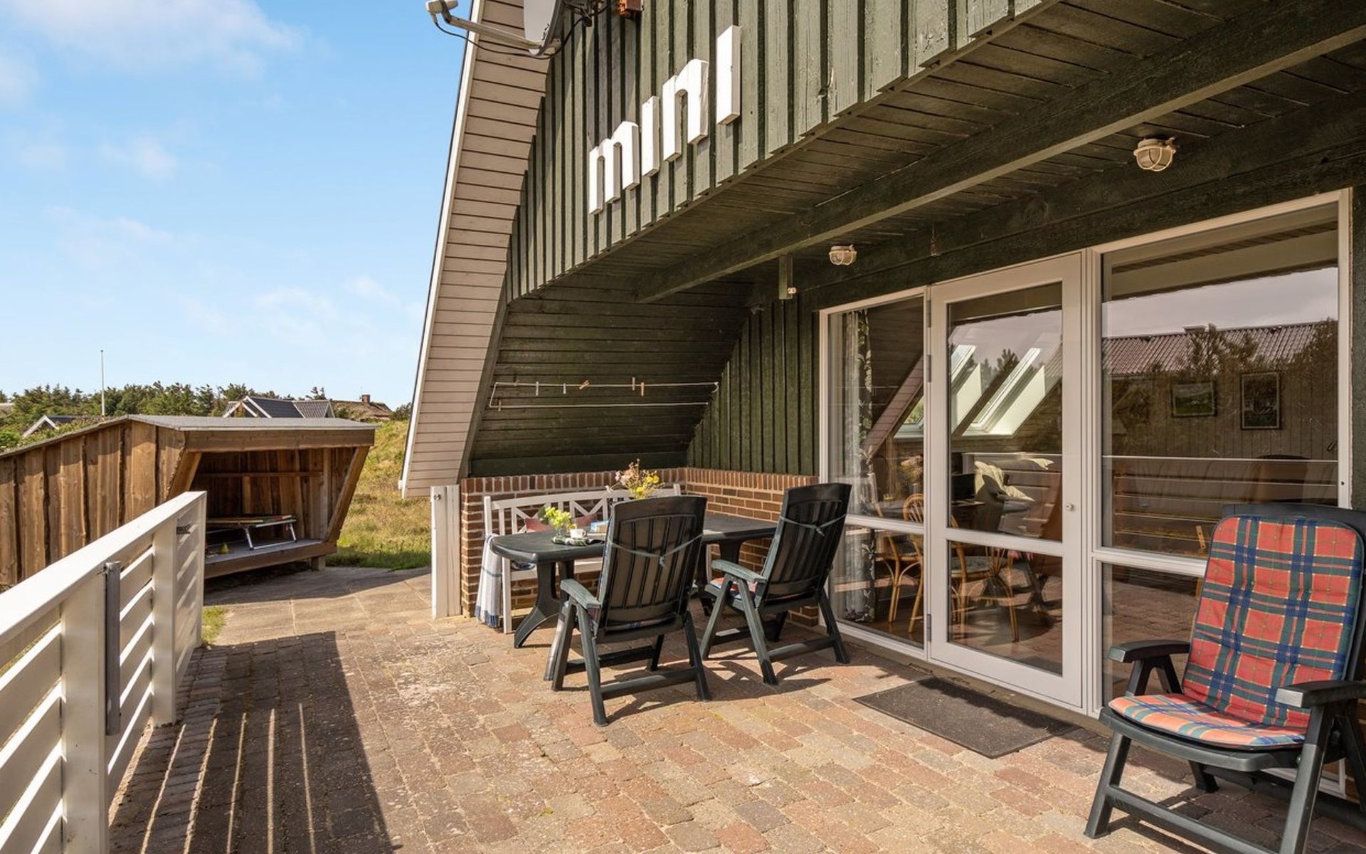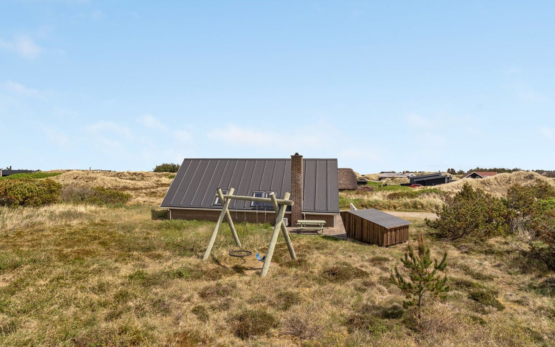 Single-family house, built in 1978. 600 m from the sea. Private: natural state property 1'500 m2. Terrace (50 m2), children's playground (swing). In the house: washing machine. Parking at the house. Grocery 1.5 km.