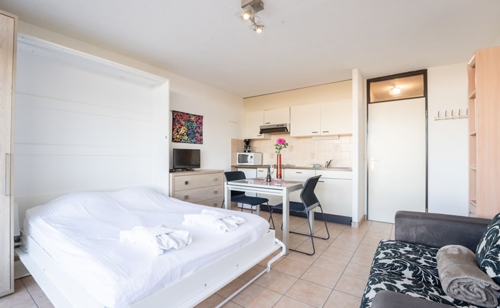 Residentie astrid: Apartment block "Residentie Astrid", 9 storeys. In the centre of Bredene, 300 m from the sea, 200 m from the beach. In the house: lift, storage room for bicycles. Public parking 150 m on the road extra. Shop 100 m, supermarket 300 m, restaurant, tram 100 m, railway station "Oostende" 6 km, ferry 3 km, sandy beach 200 m, park "Paelsteenveld" 50 m, nudist beach 1.5 km. Golf course (18 hole) 2 km, surf school 1 km. Nearby attractions: Markt (dinsdagmorgen) 50 m, Boudewijnpark 25 km, Plopsaland De Panne 47 km. Group of youngsters not allowed.