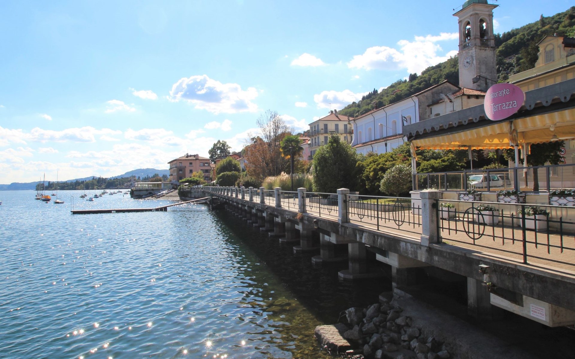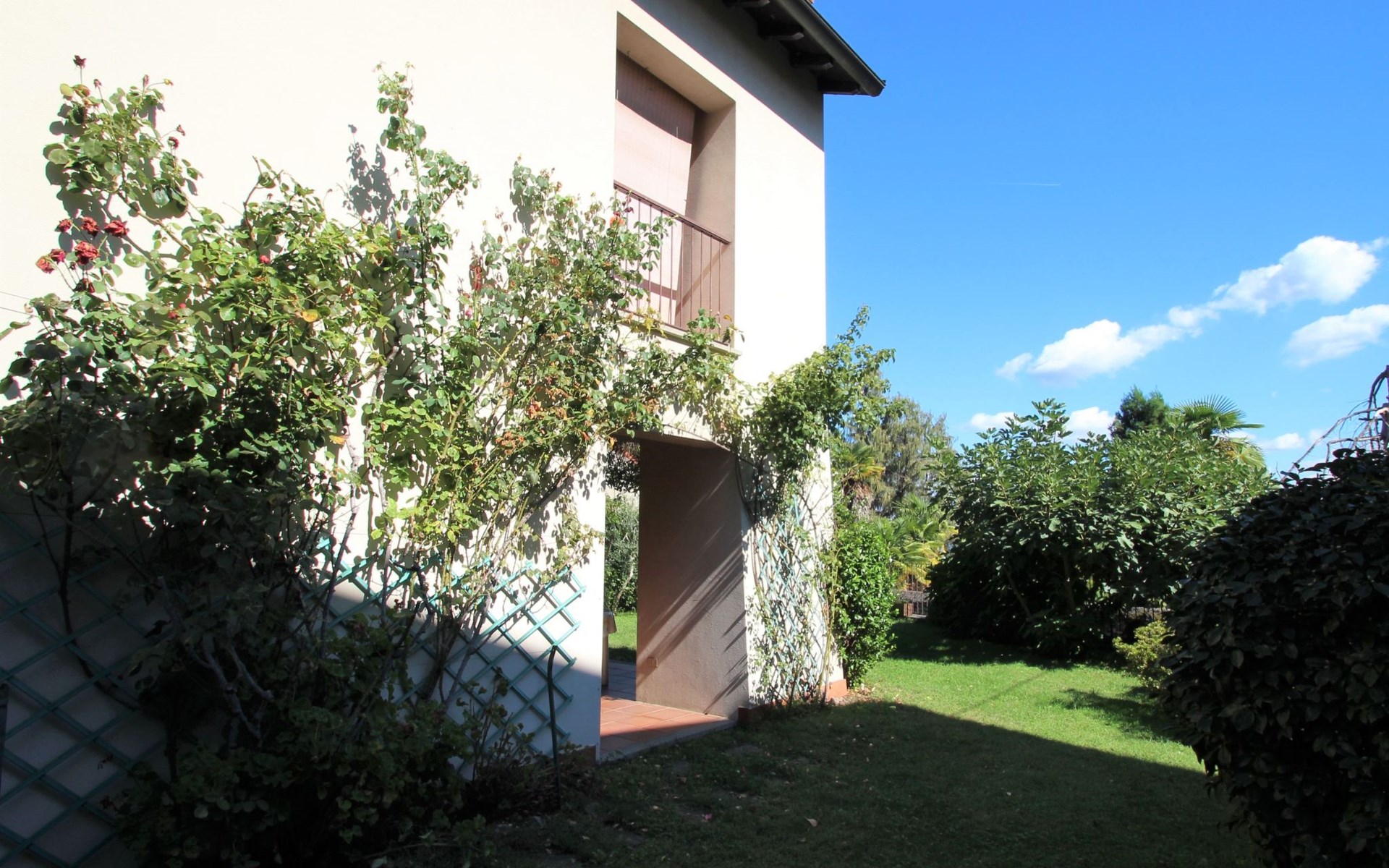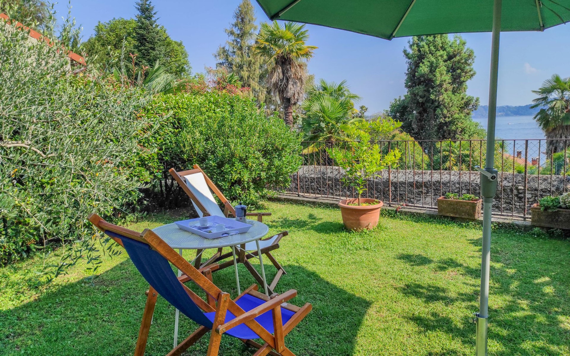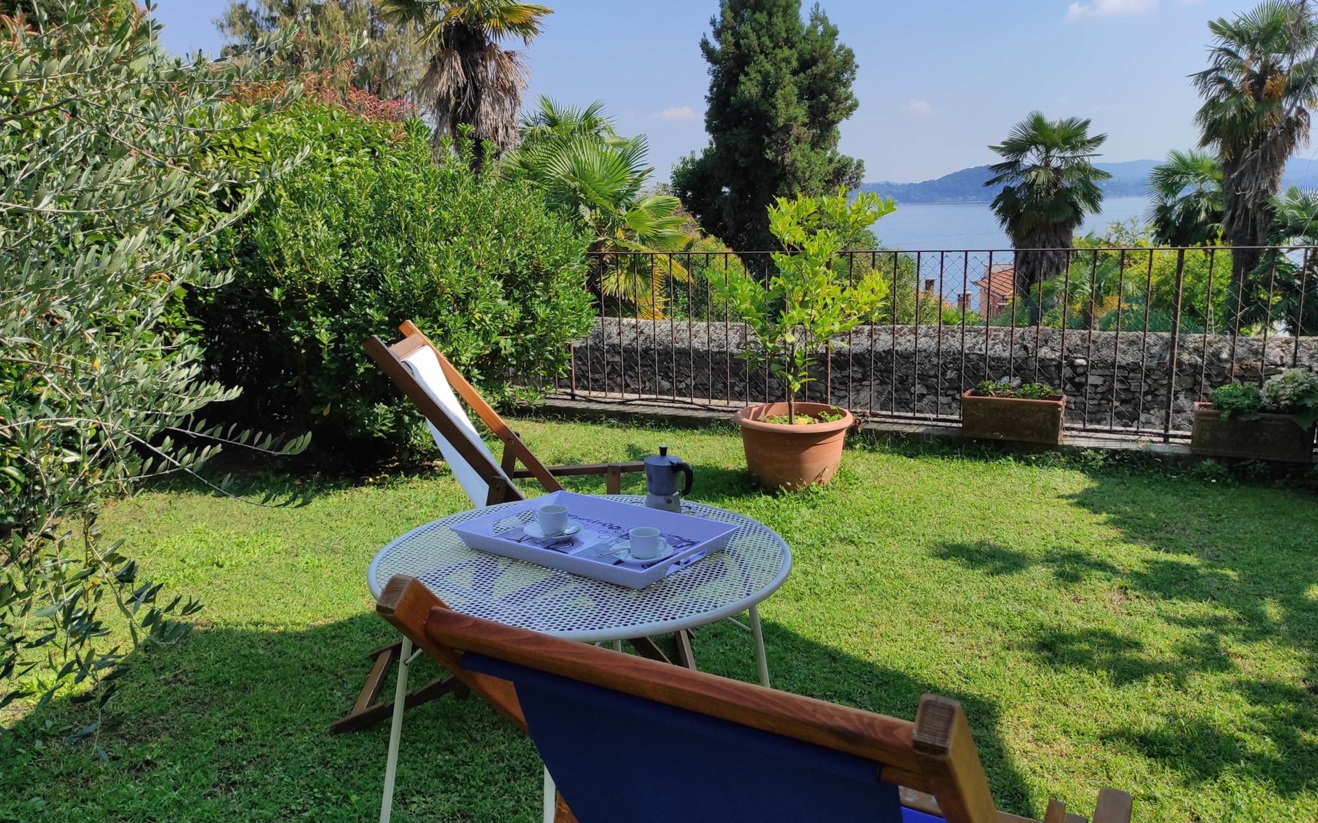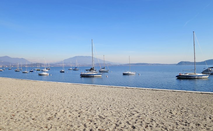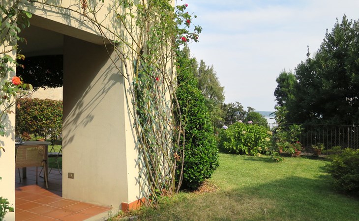 Apartment house. 6 apartments in the property. Belgirate, 6.5 km from the centre of Stresa, 11 km from the centre of Arona, on a slope, 100 m from the lake, 400 m from the beach. Private: well-kept garden 300 m2 (fenced) with lawn and wildlife garden. 250 m long narrow motor access to the house. 100 m footpath to the house. Width of access road: 180 cm. Public parking 100 m. Grocery 200 m, restaurant 300 m, bus stop 140 m, railway station "Belgirate" 600 m, grass beach 400 m. Please note: Loading and unloading of baggage is possible at the holiday house. Railway line 80 m from the property.