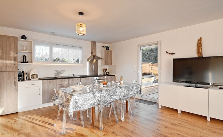 Single-family house "la k'bane sur mer", built in 2022. 700 m from the centre of Etables sur Mer, 300 m from the sea, 600 m from the beach. Private: property (fenced), parking. Shop 700 m, supermarket 2.3 km, restaurant 800 m, bicycle rental 2.5 km, bus stop 700 m, sandy beach "des Godelins" 600 m, indoor swimming pool 2.5 km. Sports harbour 3.5 km, golf course (18 hole) 8 km, sailing school 3.5 km, cycle lane 600 m. Nearby attractions: Cinéma Etables sur Mer 700 m, Binic, Saint-Quay-Portrieux 3.5 km, Paimpol 33 km, St Brieuc 15 km, Cap Fréhel 63 km, Ile de Bréhat. Hiking paths: Côtes du Goëlo, GR 34 300 m.