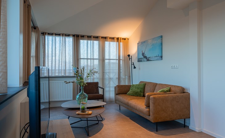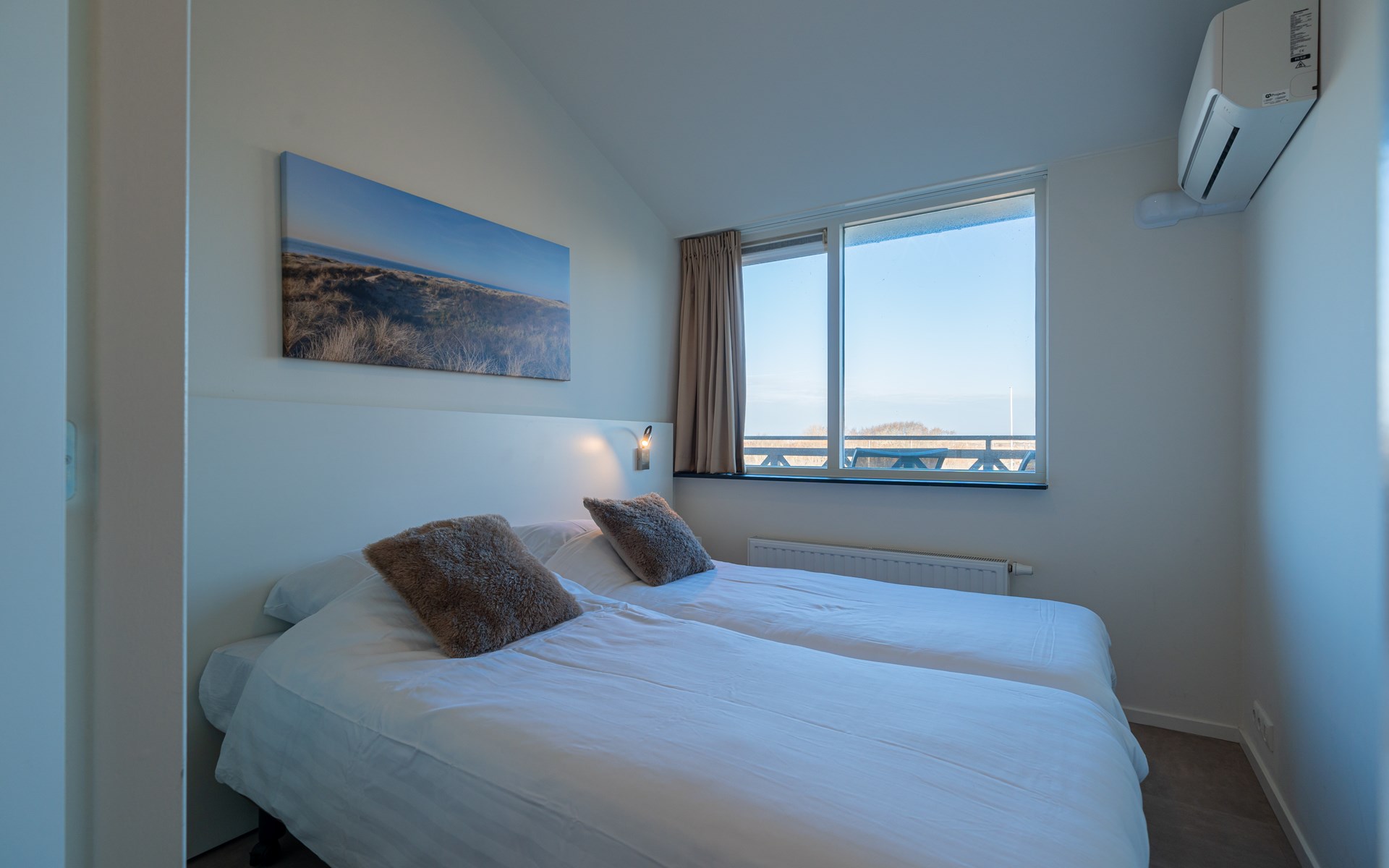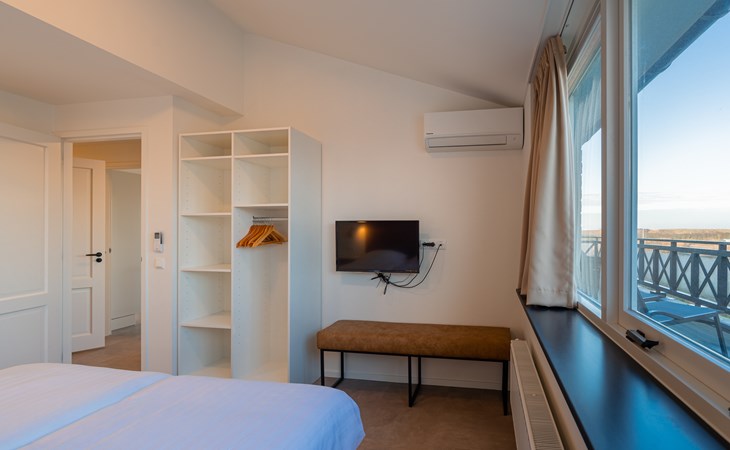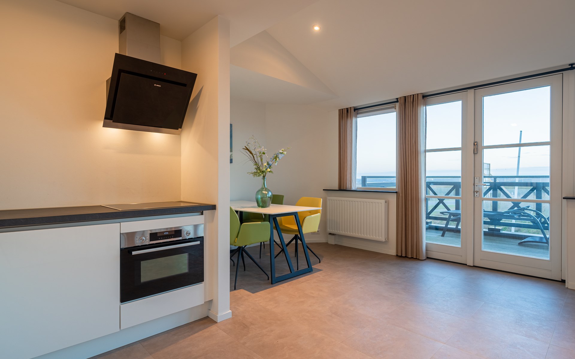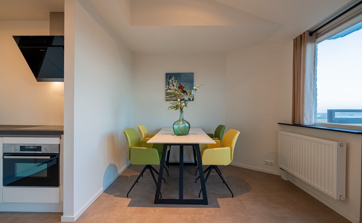 Appartement Aalscholver is a spacious 67 m2 apartment on the first floor and is suitable for four people. An elevator is available. In the living room, you can enjoy air conditioning on hot days and in winter the flat is heated by central heating. Here, you have a stunning view of the Brouwersdam. The holiday accommodation also includes a cozy dining area, an open kitchen, two comfortable bedrooms, a luxurious bathroom, and a separate toilet. Surrounding the apartment is an impressive 44 m2 balcony with various outdoor furniture, perfect for enjoying the sun.