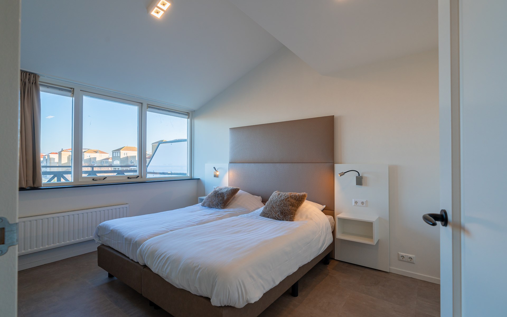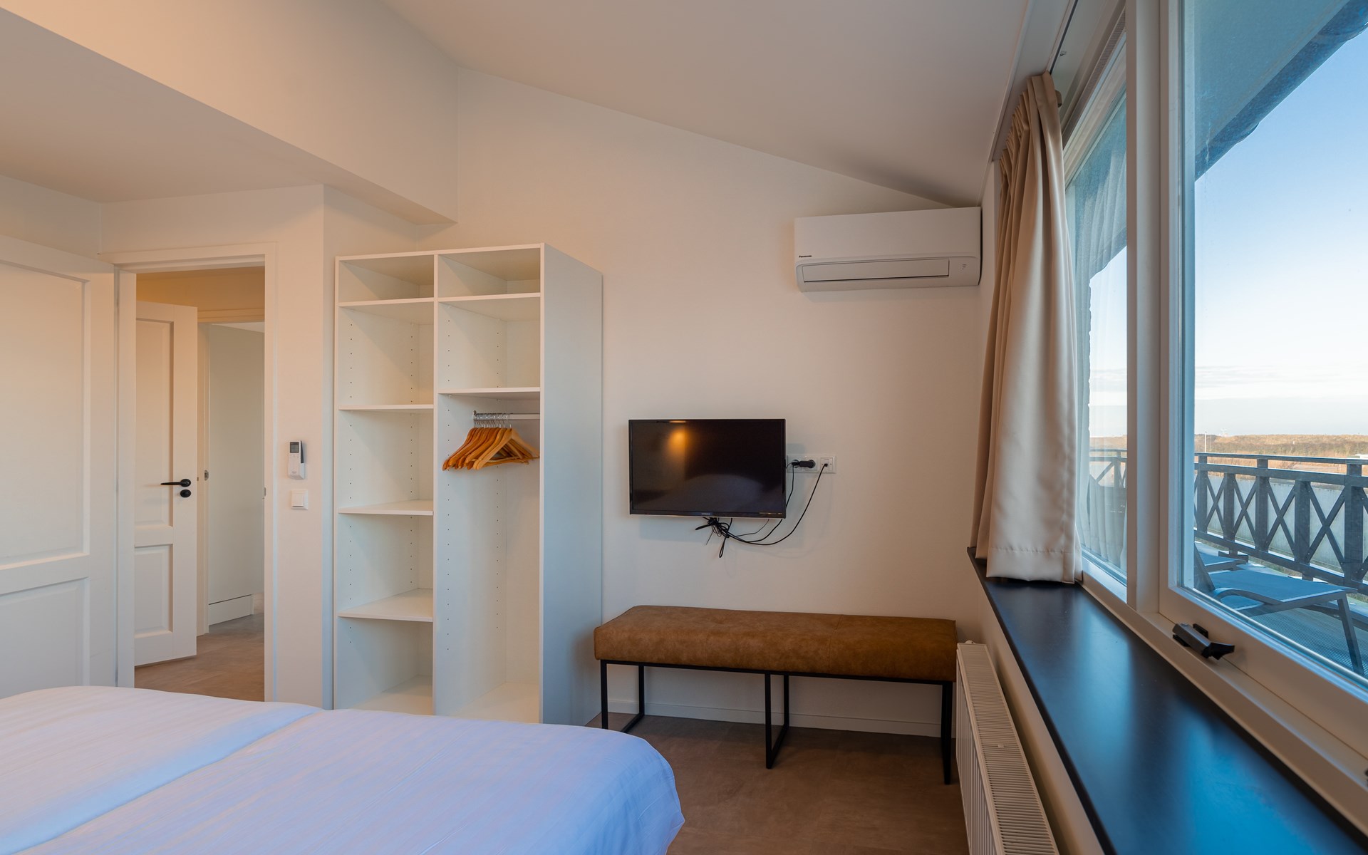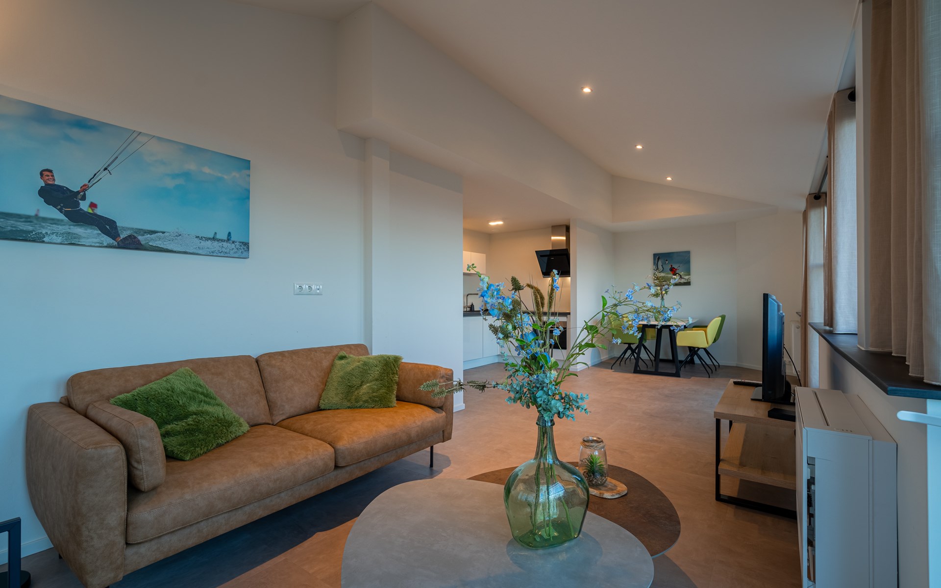 Appartement Aalscholver is a spacious 67 m2 apartment on the first floor and is suitable for four people. An elevator is available. In the living room, you can enjoy air conditioning on hot days and in winter the flat is heated by central heating. Here, you have a stunning view of the Brouwersdam. The holiday accommodation also includes a cozy dining area, an open kitchen, two comfortable bedrooms, a luxurious bathroom, and a separate toilet. Surrounding the apartment is an impressive 44 m2 balcony with various outdoor furniture, perfect for enjoying the sun.