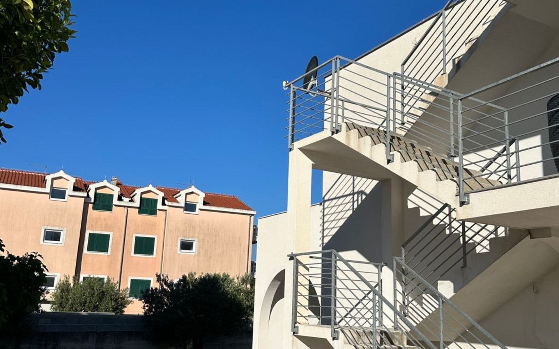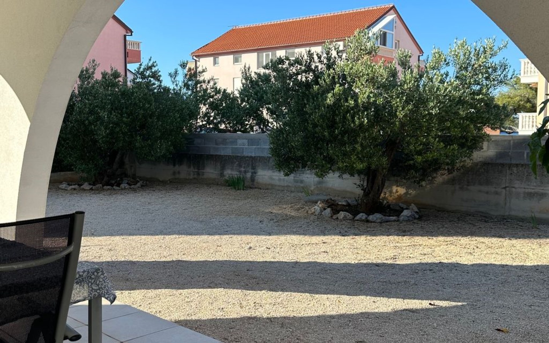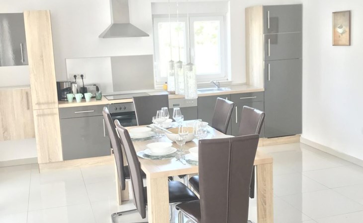 On the beach about 80 metres airline distance and 250 metres by foot away, there are many cafés, restaurants and small fast-food snack bars. The beaches in Srima can also be reached by car. There are shops in the locality and in the area. For larger shopping trips you can find various options (Spar, CA, Drogerie Müller, Kik) in the direction of Sibenik (15km). In the town centre of Sibenik there are a butcher, post office, banks and restaurants. In the direction of Murter there is a Lidl supermarket and in Plodine there is a big supermarket. In the village itself there are four small grocery shops and bakeries, about 100-300 metres from the house. Vodice is about 1.2km away, a leisurely walk along the beach. It also has shops and restaurants. The beach in Srima is not as overcrowded as in Vodice. What is special about the beaches in Srima is that you do not need beach sandals, as the sea bed is mostly just sand and the beach is fine pebble.