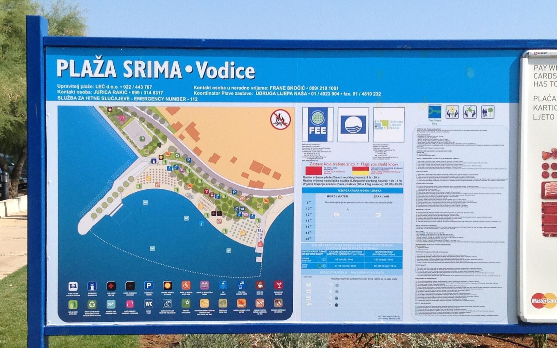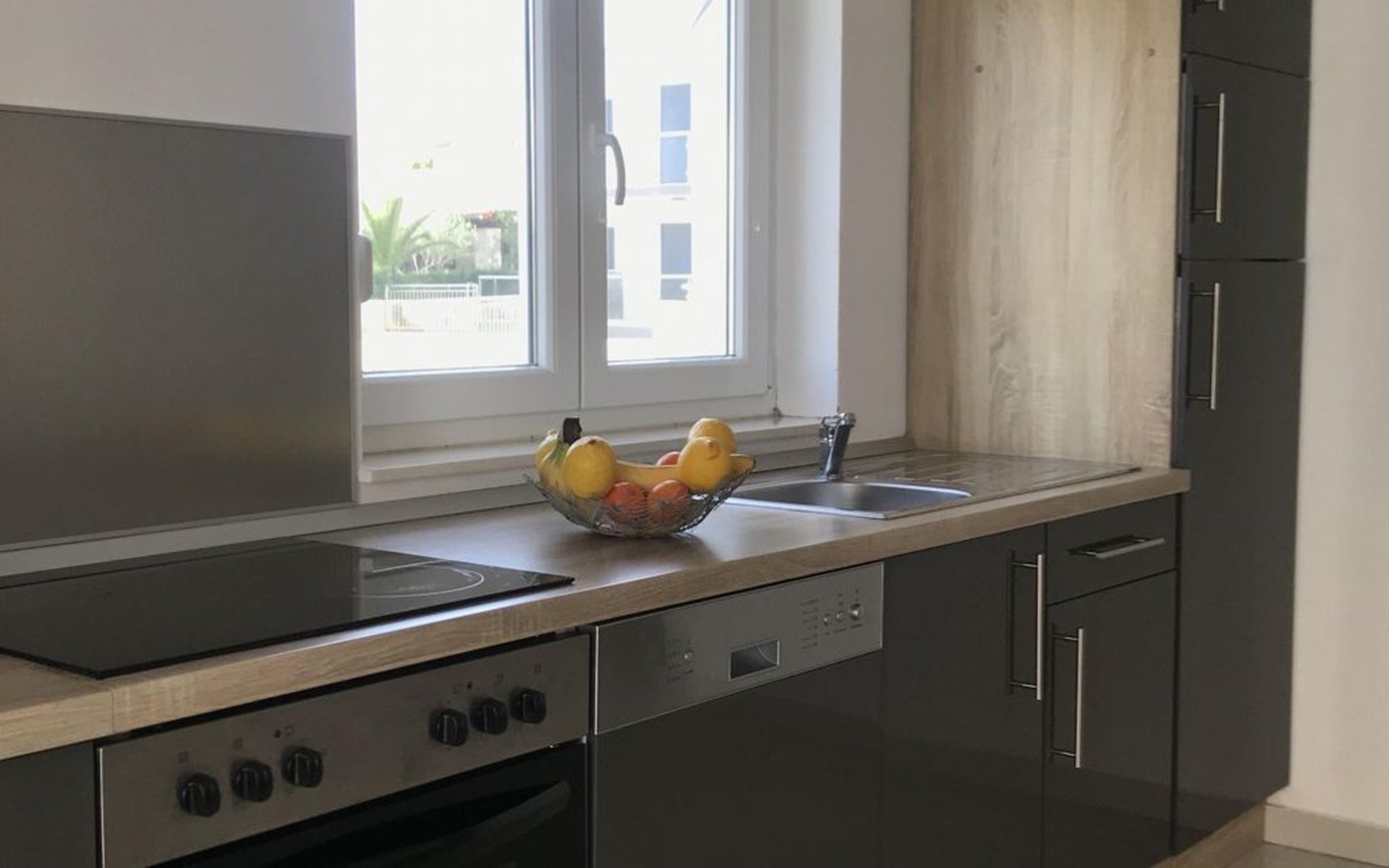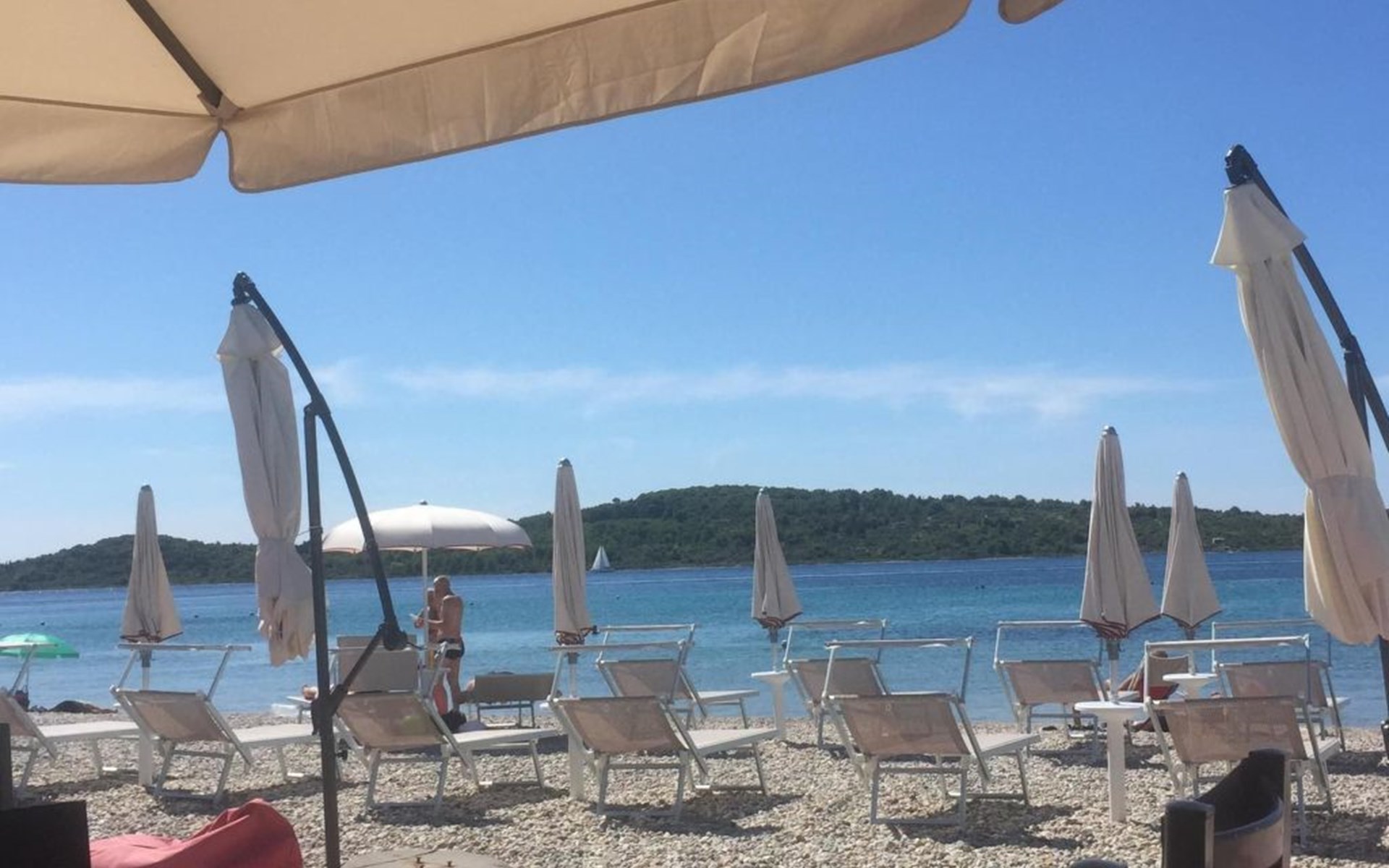 On the beach about 80 metres airline distance and 250 metres by foot away, there are many cafés, restaurants and small fast-food snack bars. The beaches in Srima can also be reached by car. There are shops in the locality and in the area. For larger shopping trips you can find various options (Spar, CA, Drogerie Müller, Kik) in the direction of Sibenik (15km). In the town centre of Sibenik there are a butcher, post office, banks and restaurants. In the direction of Murter there is a Lidl supermarket and in Plodine there is a big supermarket. In the village itself there are four small grocery shops and bakeries, about 100-300 metres from the house. Vodice is about 1.2km away, a leisurely walk along the beach. It also has shops and restaurants. The beach in Srima is not as overcrowded as in Vodice. What is special about the beaches in Srima is that you do not need beach sandals, as the sea bed is mostly just sand and the beach is fine pebble.