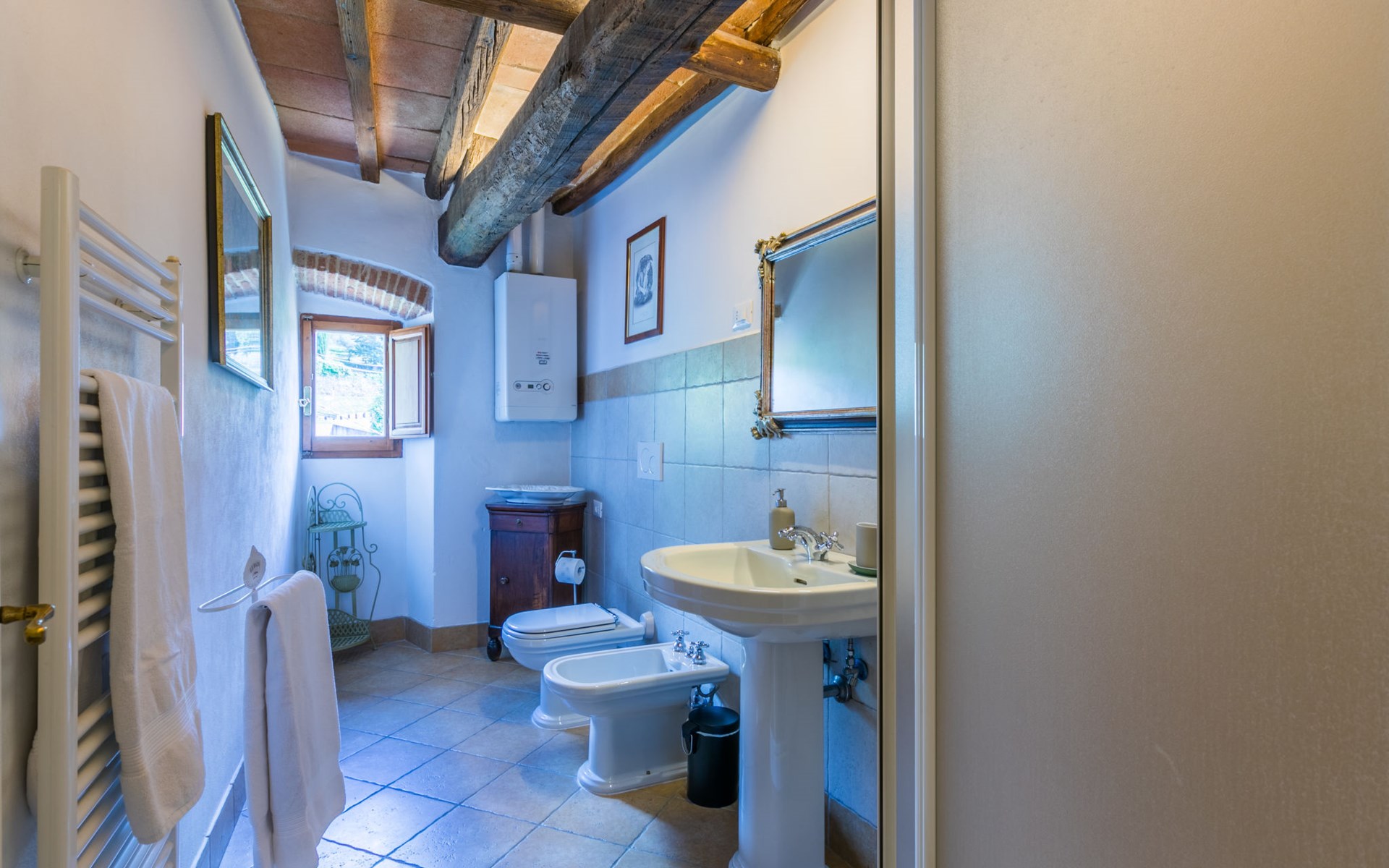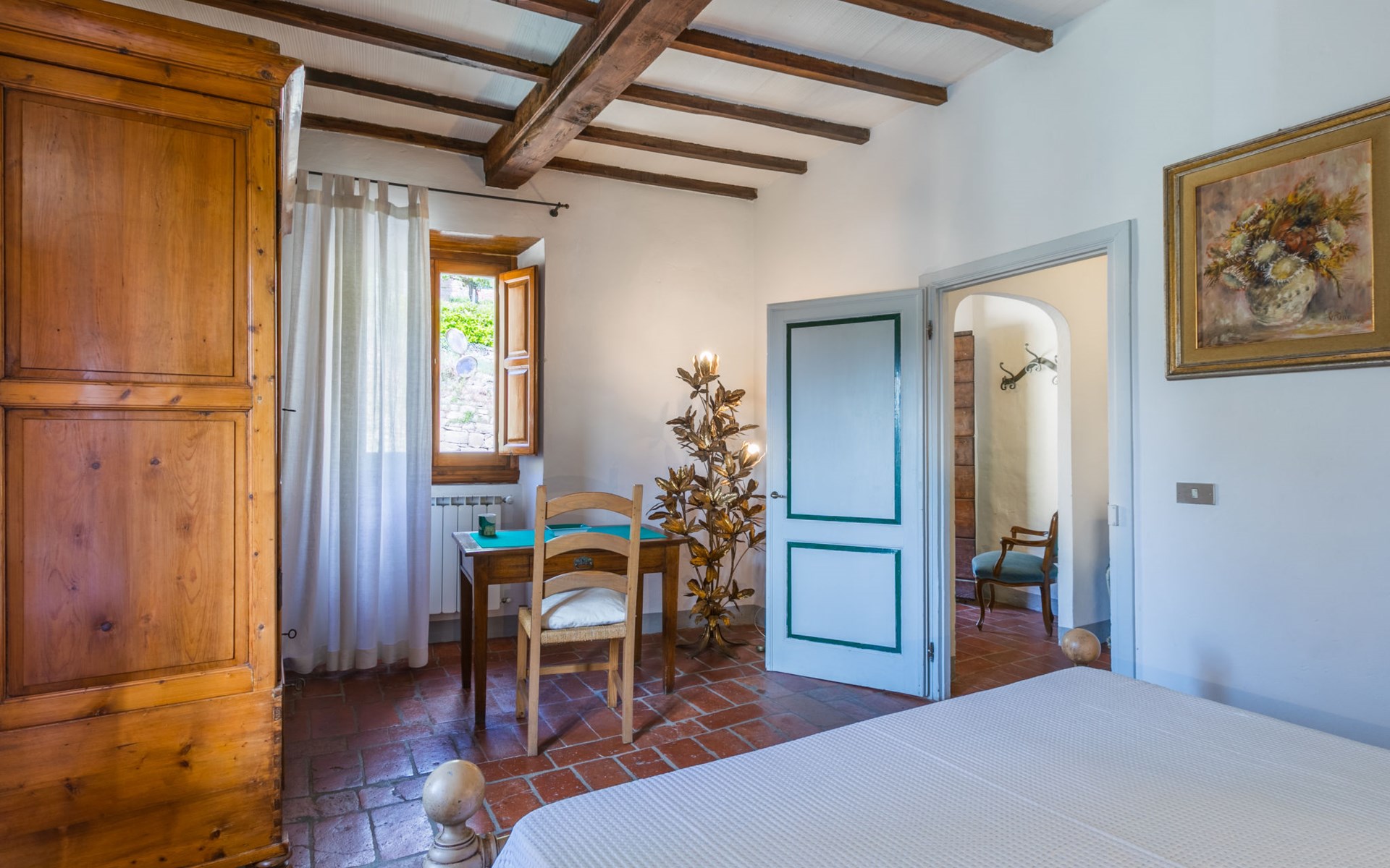 Paterno 3 km from Pelago: Old, historical country house "I Puledri", 300 m a.s.l., from the 15th century. In the district of Pelago 7 km from the centre of Pontassieve, 26 km from the centre of Firenze, in a sunny, elevated position on top of a hill. For shared use: natural state property, terraced garden. In the house: central heating system. 30 m long narrow motor access to the house. Parking (for 2 cars) on the premises. Grocery 100 m, restaurant 3 km, bus stop "Paterno Alimentari" 50 m, railway station "Pontassieve" 7 km, sandy beach "Viareggio" 130 km. Nearby attractions: Fiesole 22 km, Vallombrosa 11 km, Poppi castle 30 km, Arezzo 70 km. Hiking paths: Vallombrosa 11 km. Please note: baby equipment (included). The owner lives in the same residence.