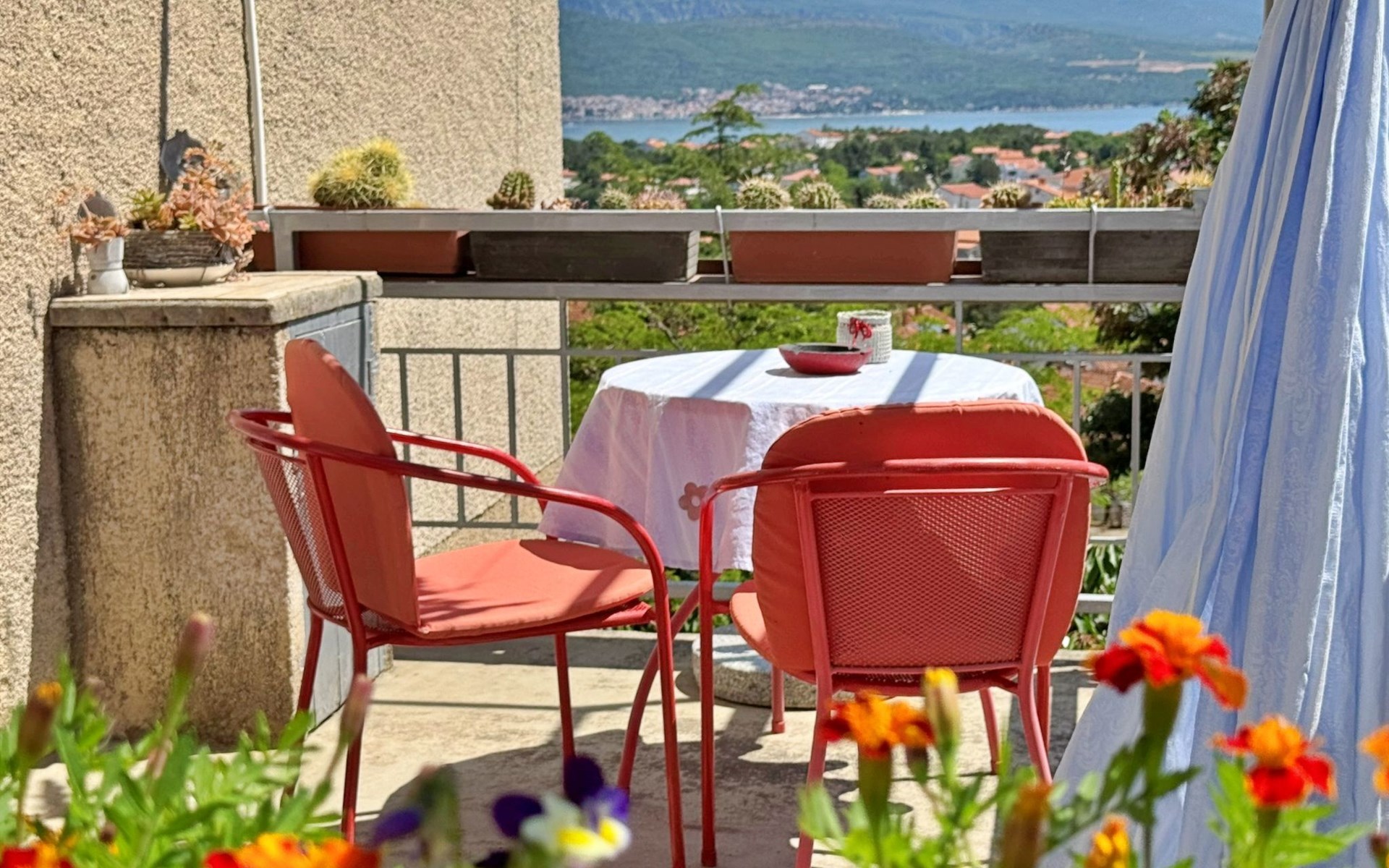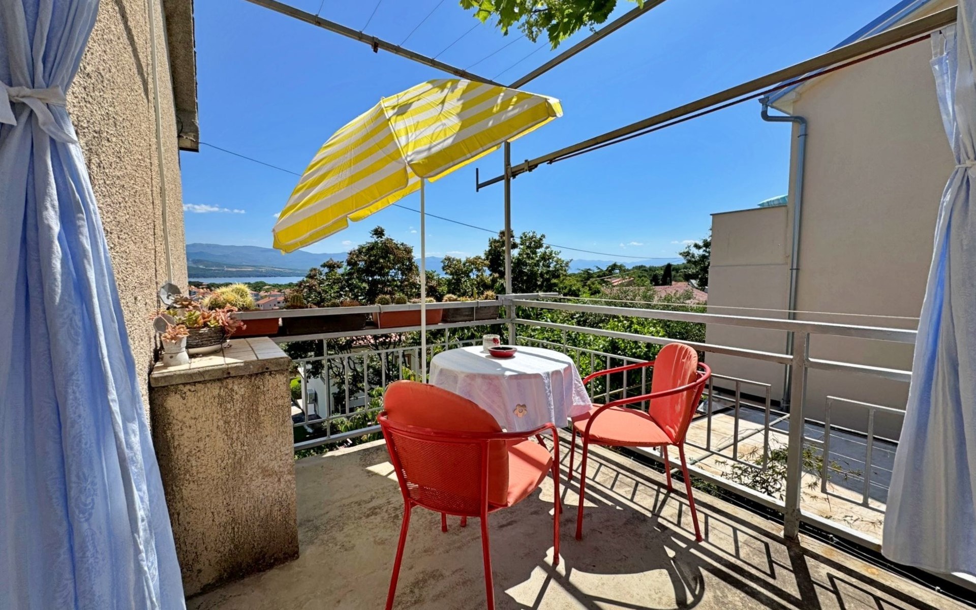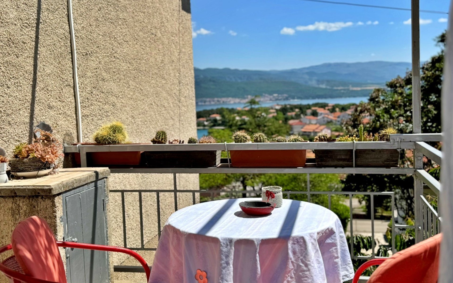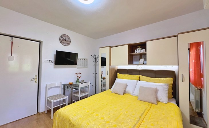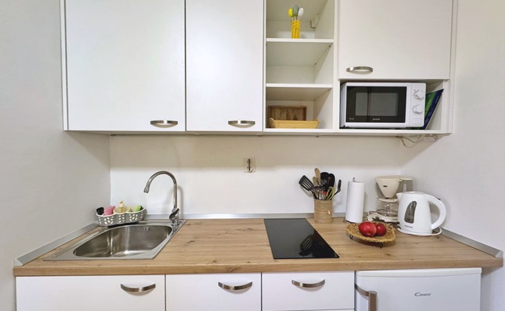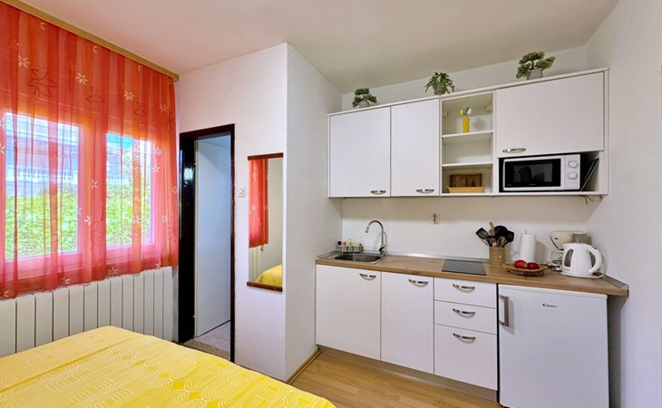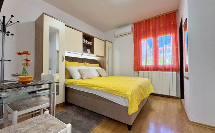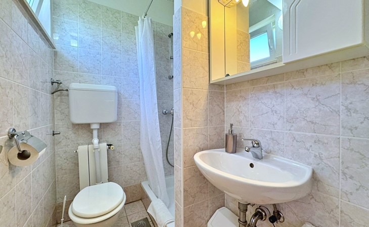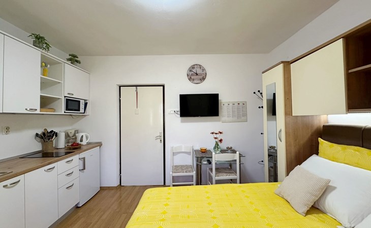 Located about 500 metres from the centre and 600 metres from the nearest beach, this studio offers peace and comfort on summer days. The 5 m2 terrace at the entrance offers a breathtaking view of the sea and the village and serves as a cosy dining area. Air conditioning, WLAN and a free car park are included. The flat is comfortably furnished and offers everything you need for a relaxing holiday.