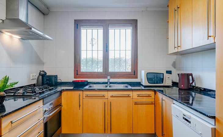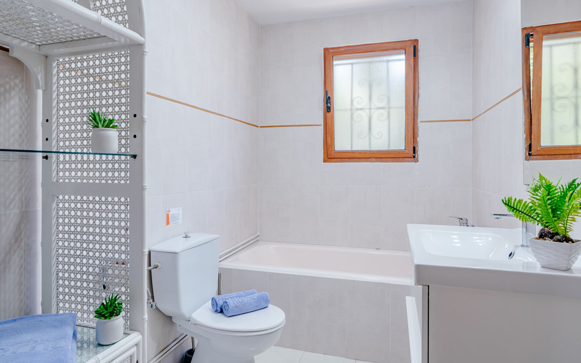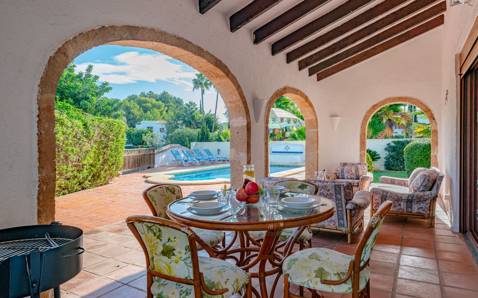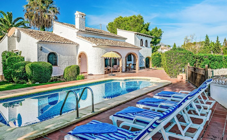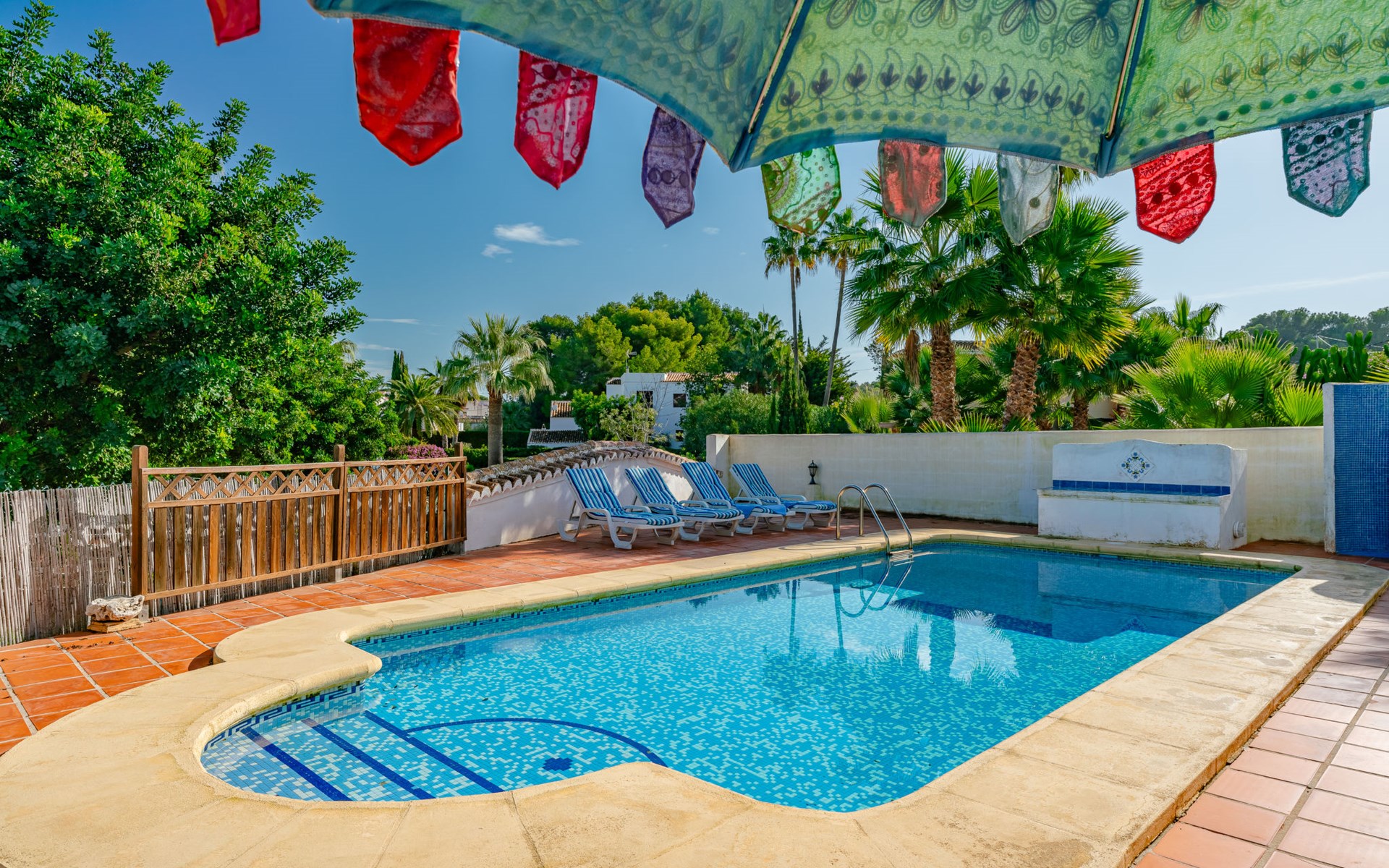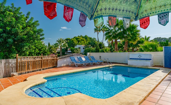 Cosy, comfortable house "Bea", 2 storeys. In the district of Adsubia, in a quiet, sunny position, 1.8 km from the sea, 1.8 km from the beach. Private: large, beautiful, well-kept garden with lawn and trees, swimming pool angular (8 x 4 m, depth 40 - 210 cm, seasonal availability: 01.Jan. - 31.Dec.) with internal staircase. Outdoor shower, garden furniture, barbecue, roofed, parking on the premises. Shop 1.1 km, supermarket 400 m, bar 1.4 km, café 1.4 km, bus stop 2 km, sandy beach "El Arenal" 1.8 km, rocky beach "Cala Blanca" 2.3 km. Sports harbour 2.2 km, surf school 2.2 km, sailing school 2.2 km, tennis 2.2 km. The owner does not accept any youth groups.