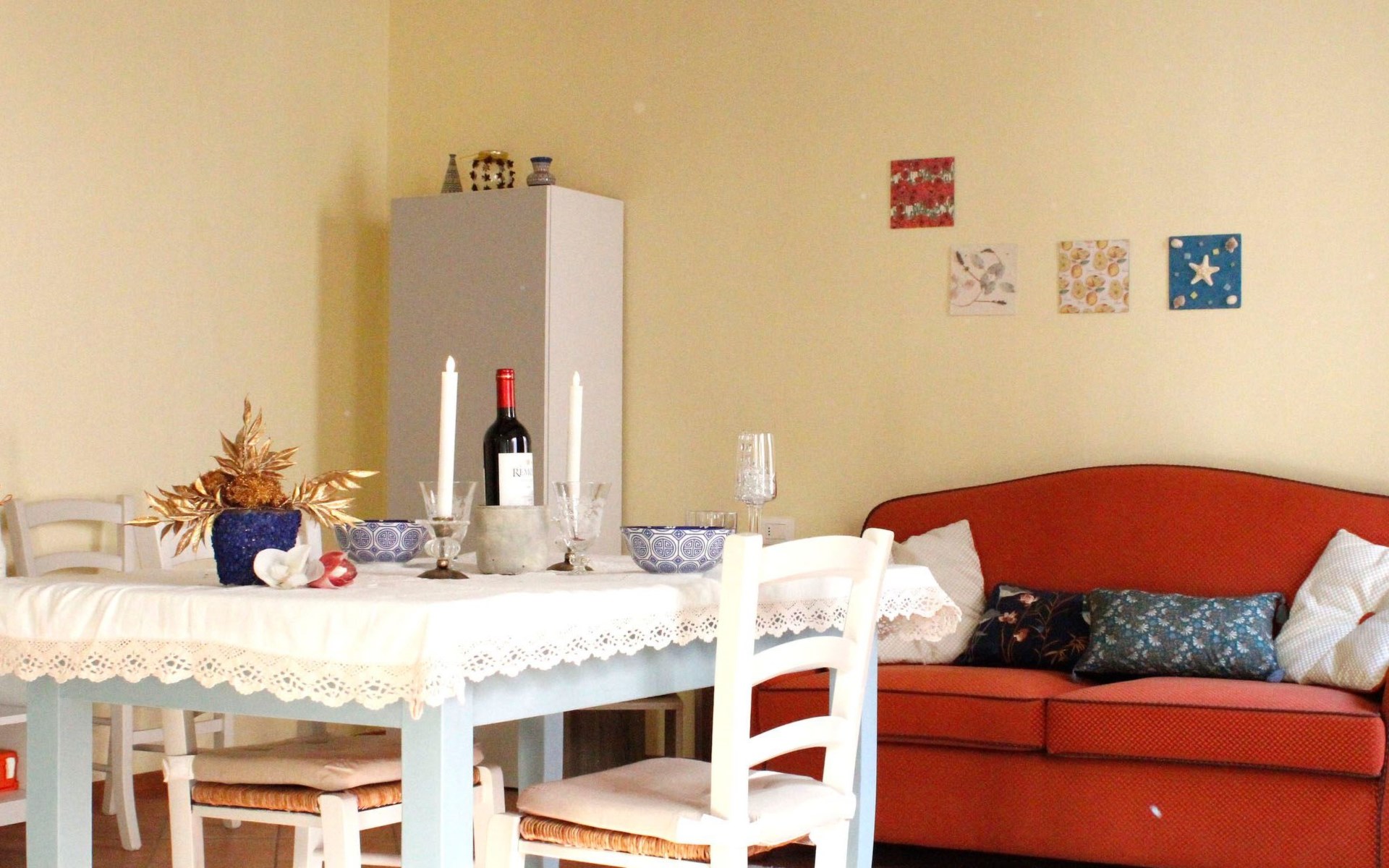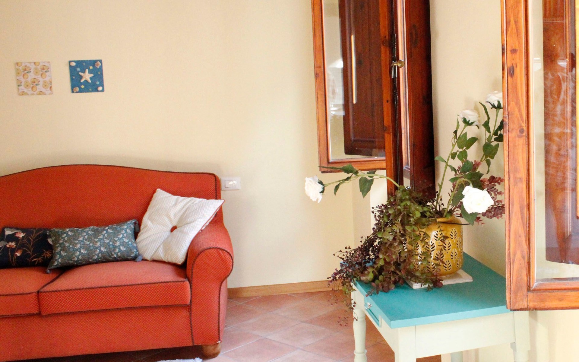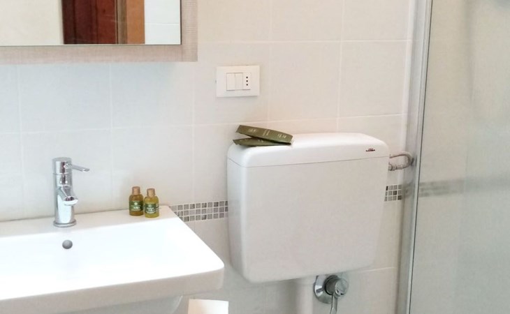Inside, the flat comes with all the necessary comforts to make your stay pleasant and carefree. The air conditioning available in all rooms ensures a cool and cosy environment during the summer months. The bedroom, equipped with a comfortable private bathroom, ensures peaceful rest after days full of exploration. For moments of relaxation in company, the spacious living area offers a double sofa bed and a second bathroom, proving to be an optimal solution for both couples and small groups of up to 4 people.