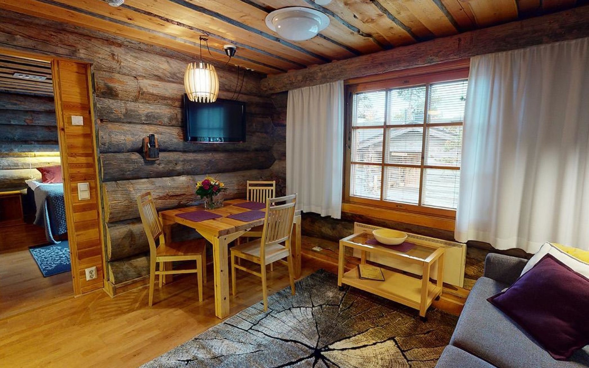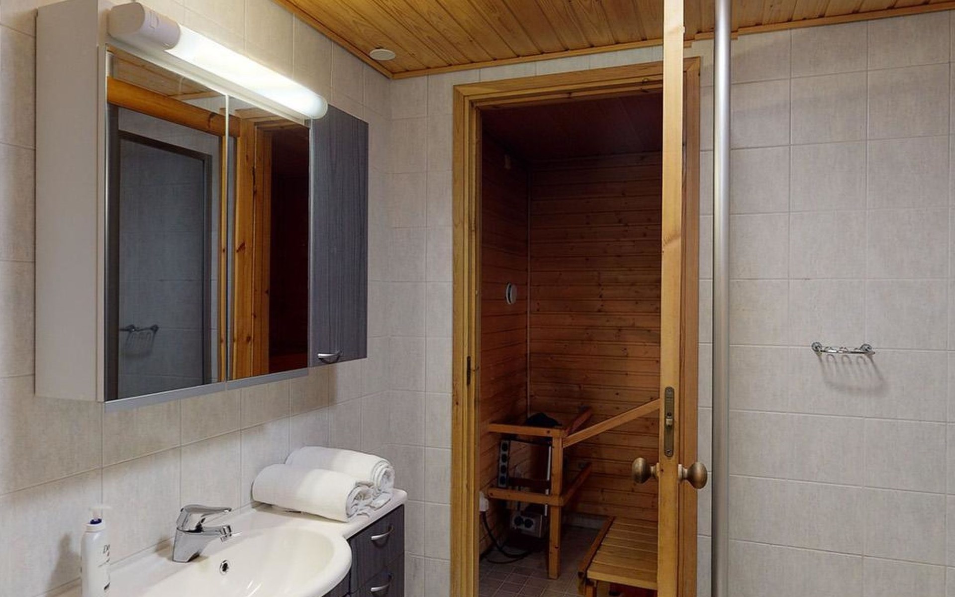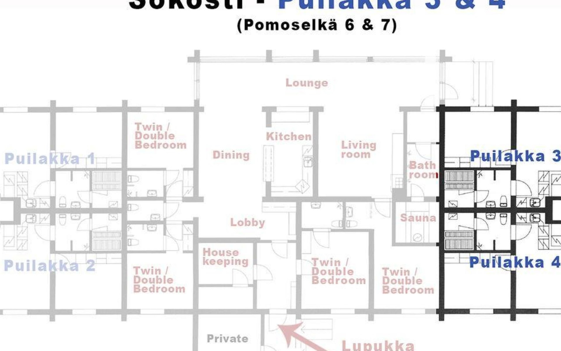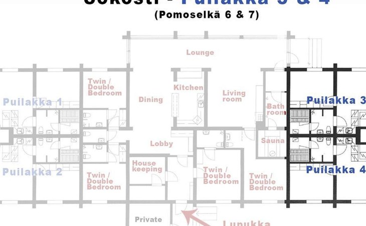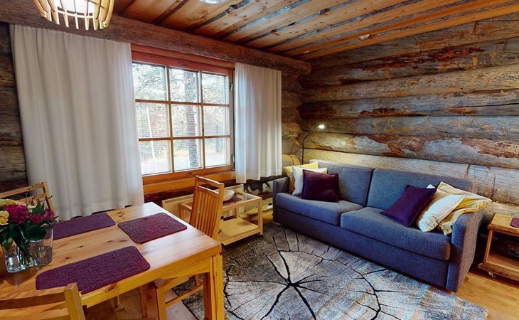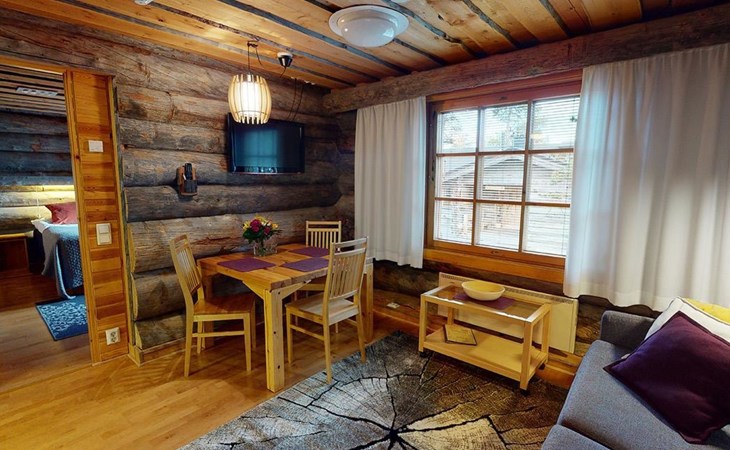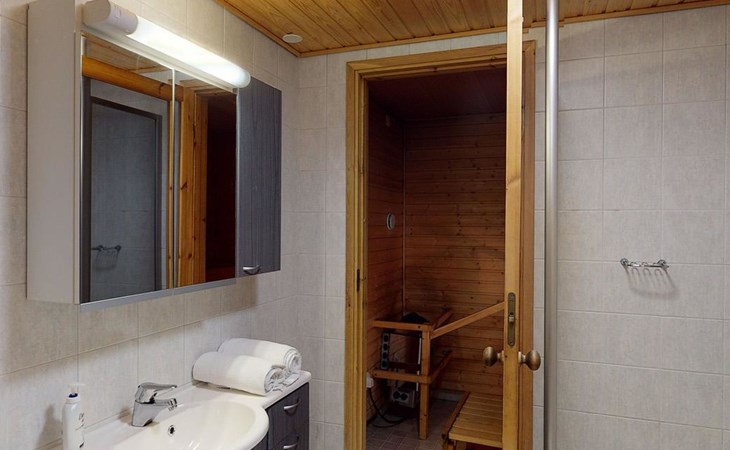 The 44-square-meter apartment has a kitchen/living room, a bedroom, a washroom/toilet and a sauna. In the courtyard building, a shared ski maintenance room for the apartments, with a lubrication iron and a table.