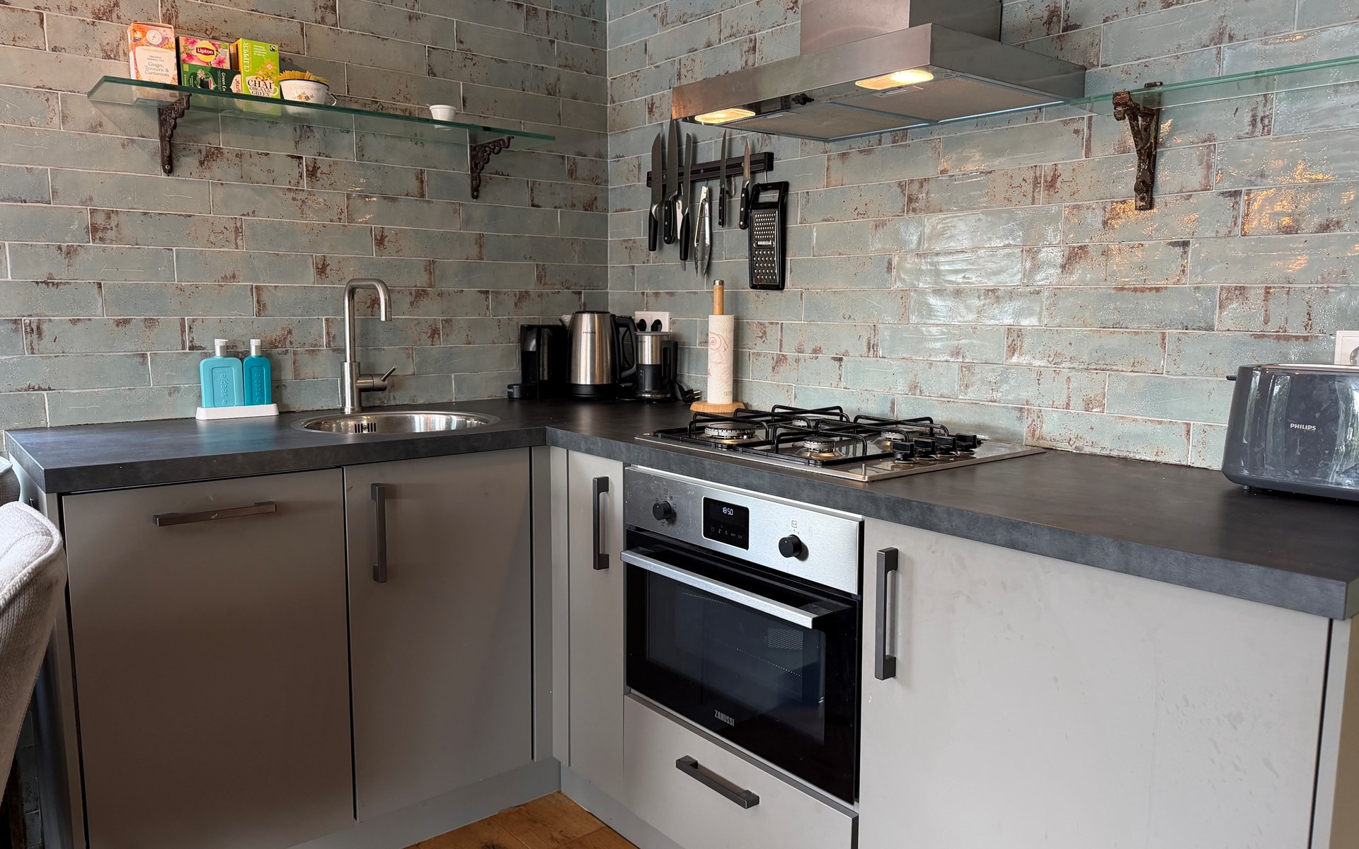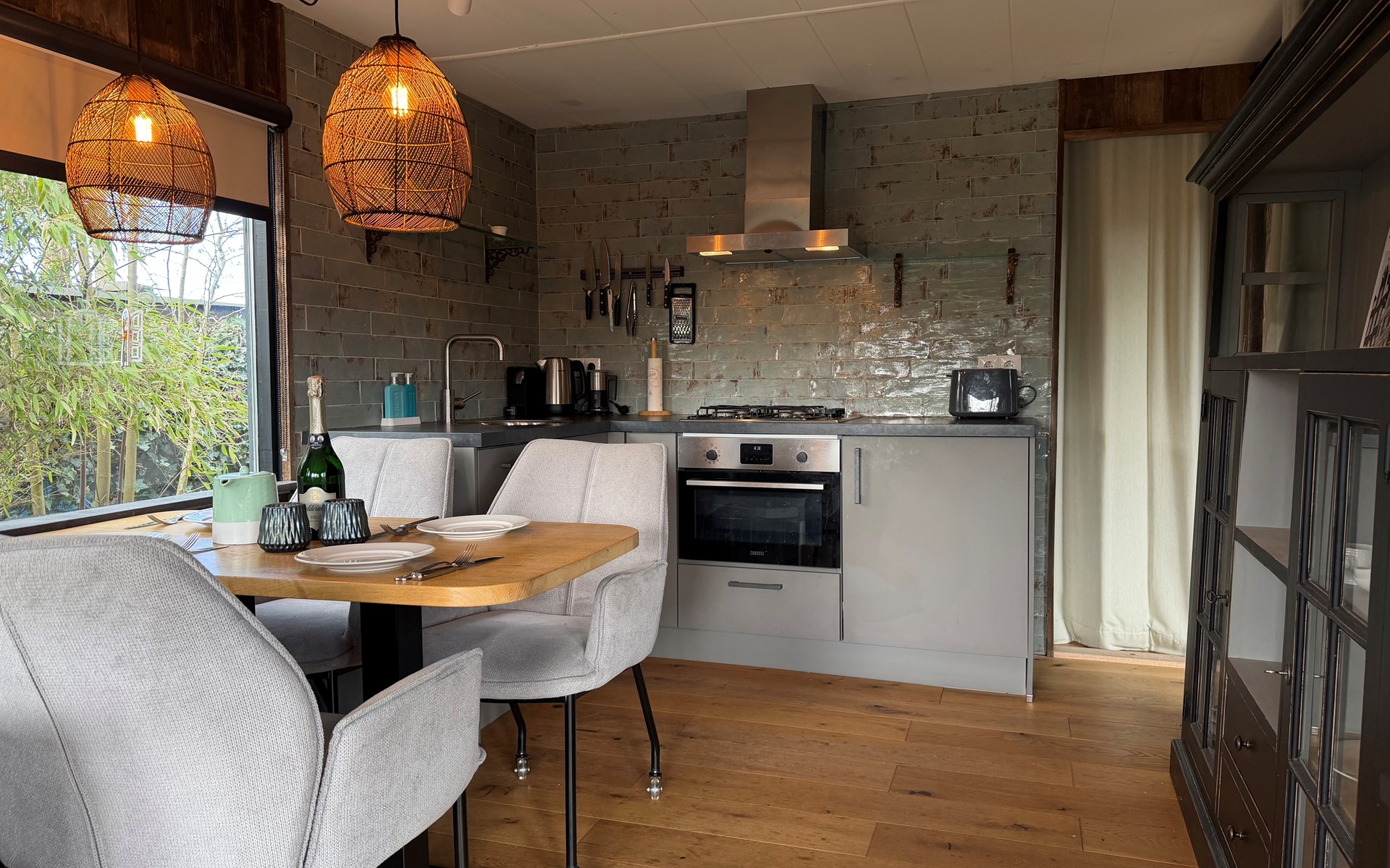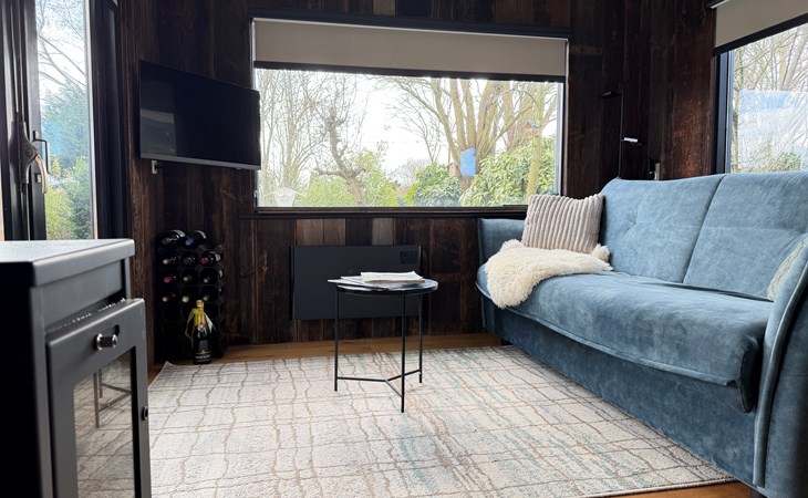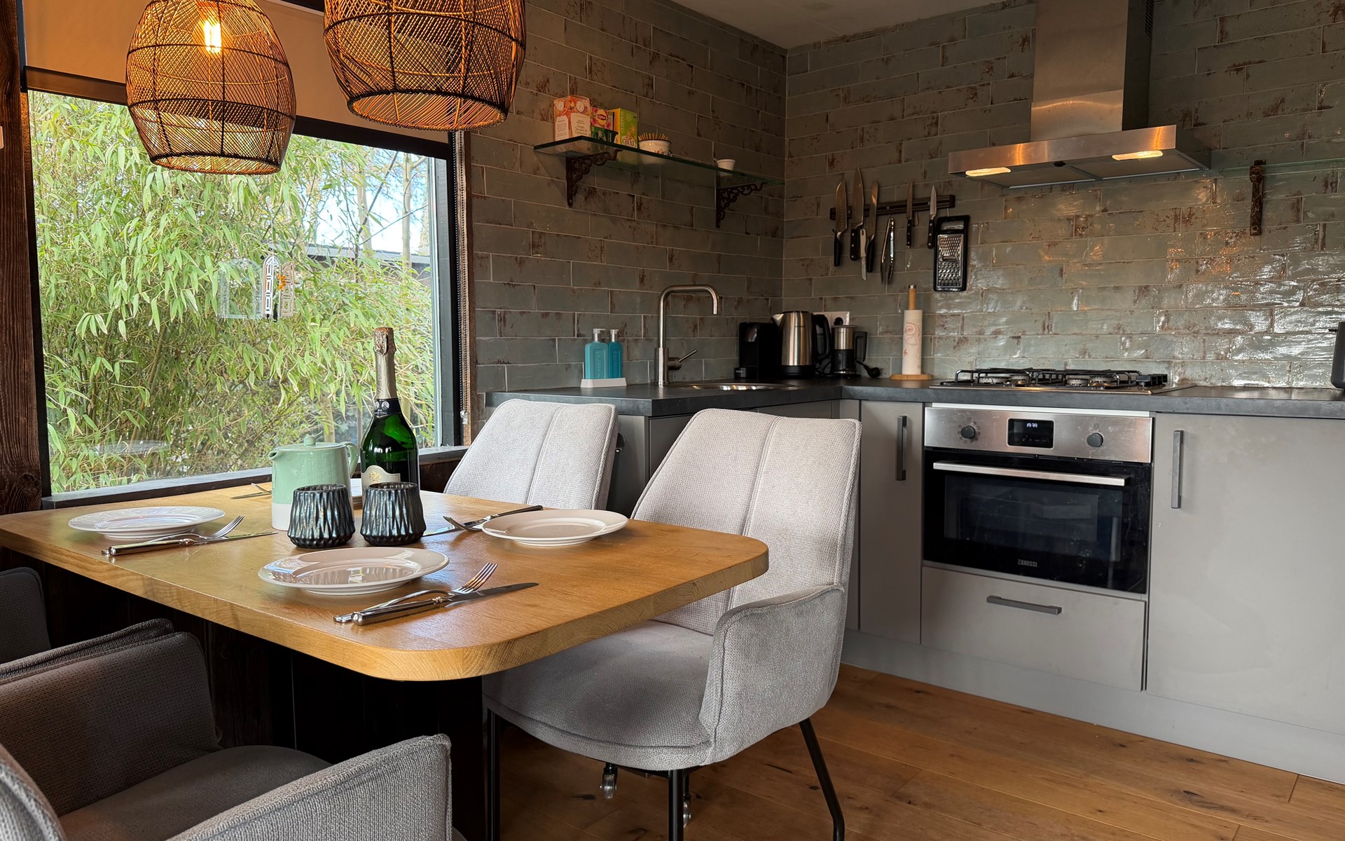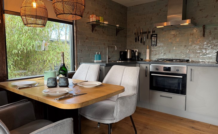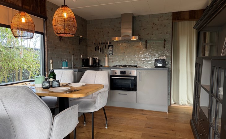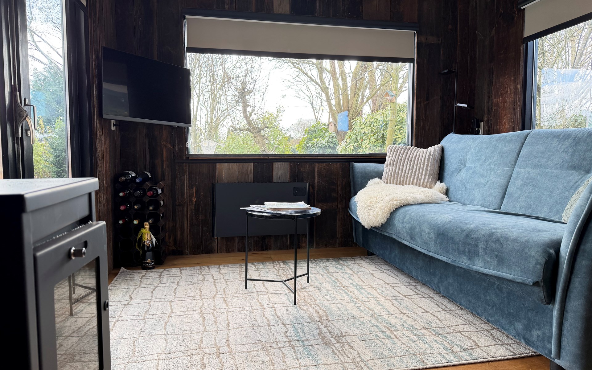 The compact yet luxurious chalet is ideal for two adults seeking comfort and tranquility. The atmospheric living room with open kitchen forms the heart of the accommodation and is stylishly furnished with attention to detail. The kitchen is fully equipped and features all modern conveniences, including a dishwasher, combination microwave/oven, and a Nespresso coffee machine – perfect for starting the day in a relaxed way. The comfortable sofa invites you to unwind after a day outdoors, while the warm decor creates a cozy and relaxed atmosphere.