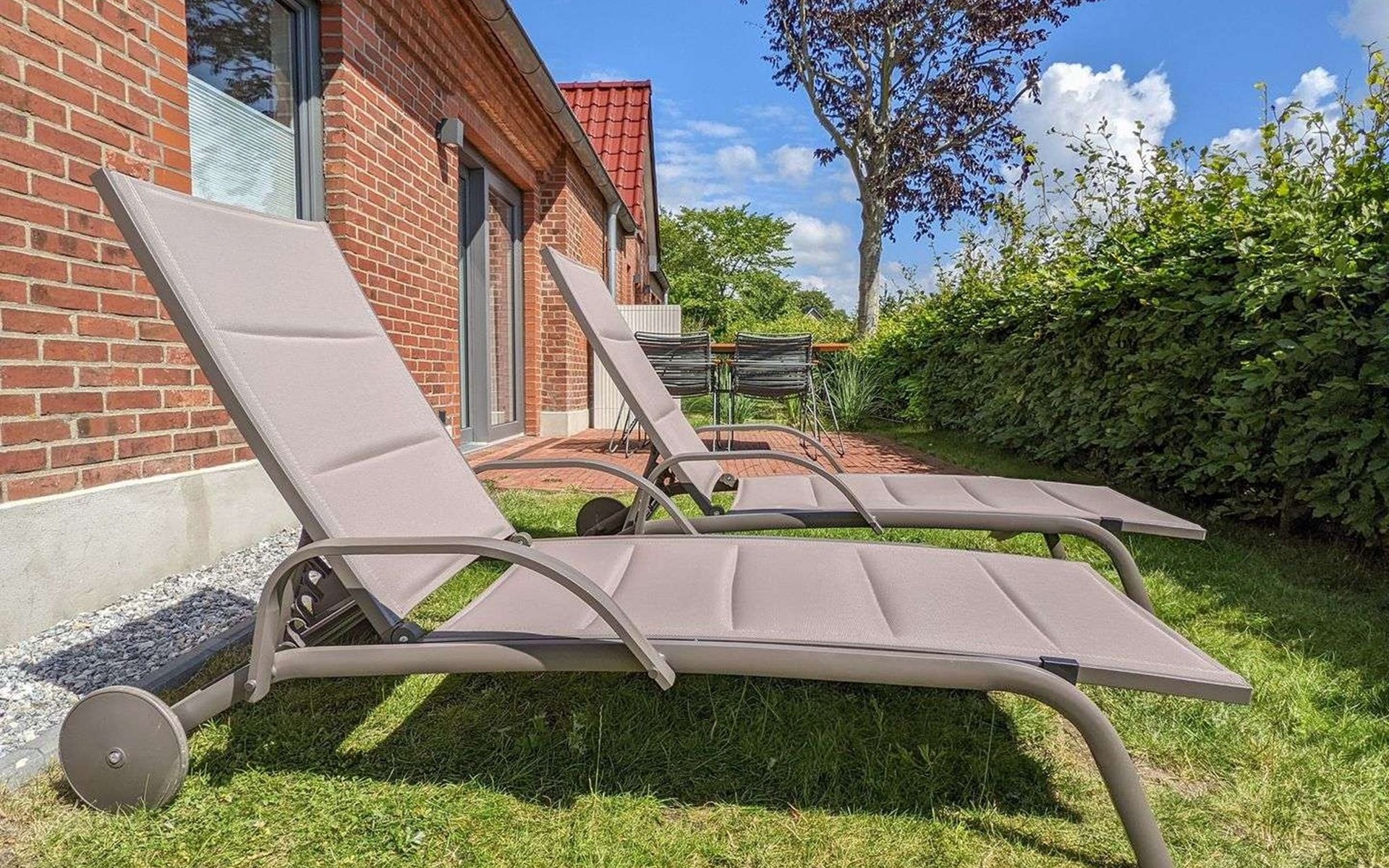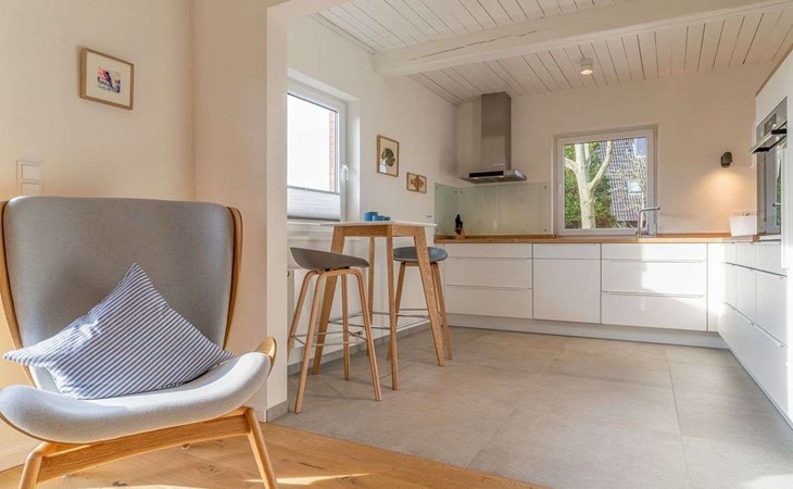 Very modern, beautiful semi-detached house, 2 storeys. In the district of Tating, in a quiet position, 7.8 km from the beach. Private: well-kept terraced garden. Garden furniture. In the house: storage room for bicycles. Parking. Bus stop 300 m, sandy beach "St.Peter-Ording-Strand" 7.8 km. Nearby attractions: Westküstenpark und Robbarium 6 km, Böhler Leuchtturm 7.8 km, Erlebnispromenade II 9.2 km, Sturmflutereignisse 29.7 km. Hiking paths: St. Peter 7.5 km, Hebbel Runderwanderweg 21.1 km, Süderdeich Vollerwiek 10.9 km. Please note: car recommended.