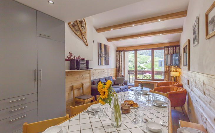Tignes Val Claret: In the shopping centre. Residence "Le Grand Tichot A et B (Val Claret)". In a central, busy position, 100 m from the skiing area. In the complex: lift, central heating system. Shop, supermarket, shopping centre, restaurant, bakery, café 10 m, bus stop 300 m, indoor swimming pool 2 km. Sports centre 2 km, skisport facilities 100 m, slopes 150 m, ski rental 10 m, ski school, sled run. Well-known ski regions can easily be reached: Tignes & Val d'Isère 100 m. Please note: Additional accommodations can be booked.