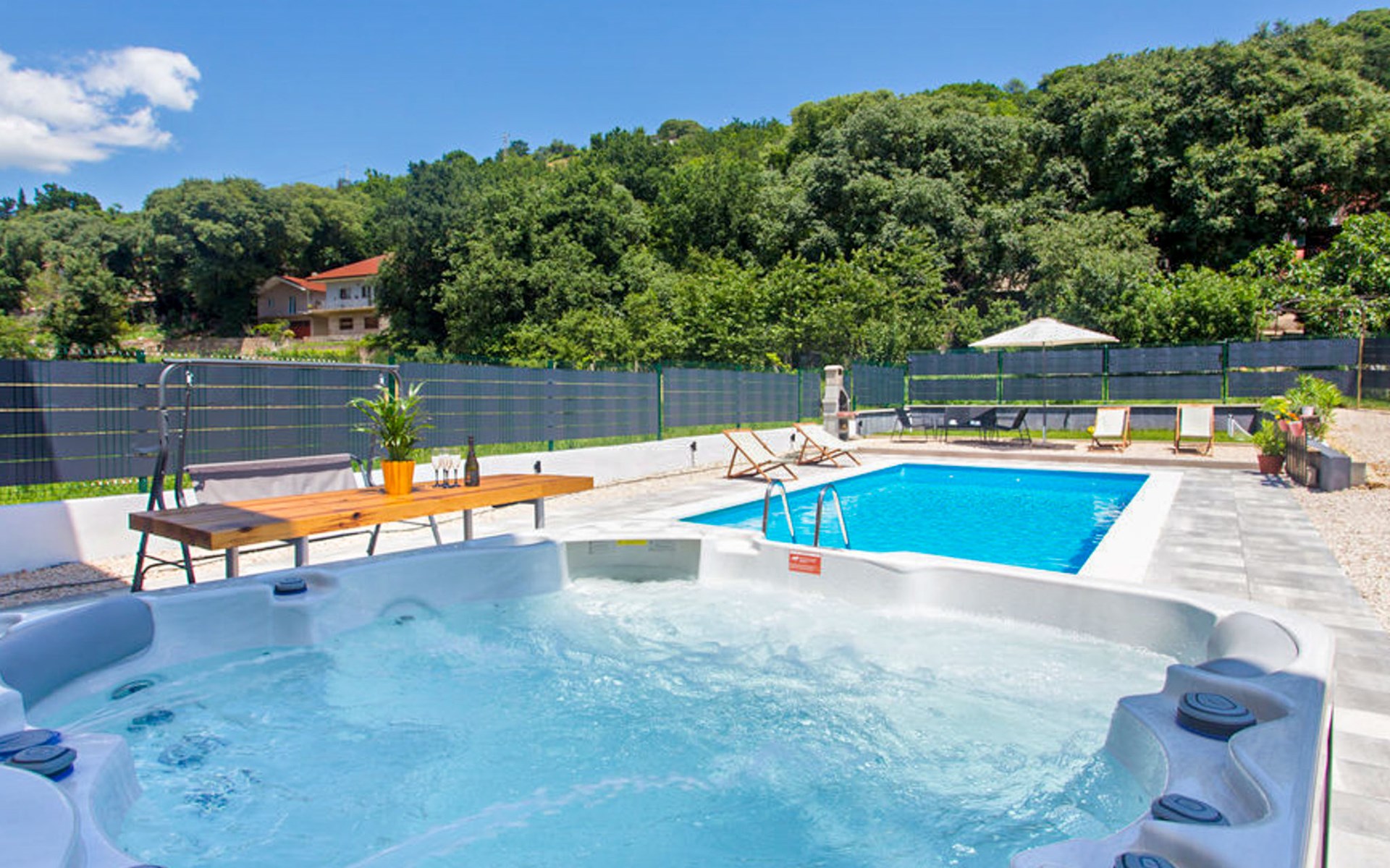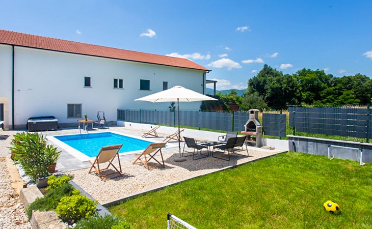 2-family house in 2023. 600 m from the centre of Donji Proložac, 10 km from the centre of Imotski, in a quiet, sunny position, 30 km from the sea, 30 km from the beach. Private: property 600 m2 (fenced), swimming pool angular (8 x 4 m, depth 150 cm, seasonal availability: 01.Jun. - 15.Oct.) with internal staircase. Outdoor shower, hot tub, table tennis, terrace (12 m2), garden furniture, barbecue. In the house: internet access. Parking (for 3 cars) at the house on the premises. Shop 400 m, supermarket 10 km, restaurant 10 km, bus stop 6.3 km, pebble beach 30 km. Nearby attractions: Modro jezero 10 km. Groups of teenagers on request only. Please note: the owner lives on the same property.