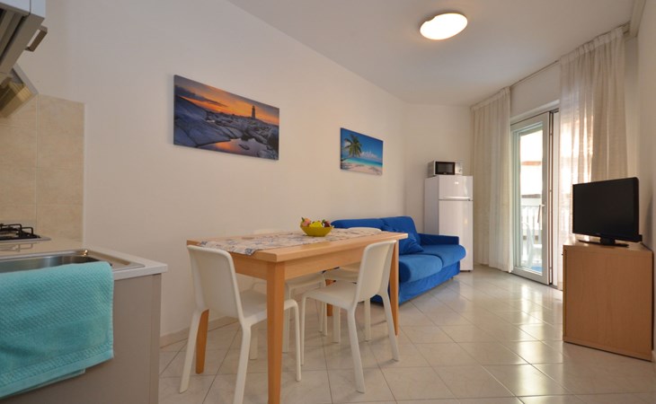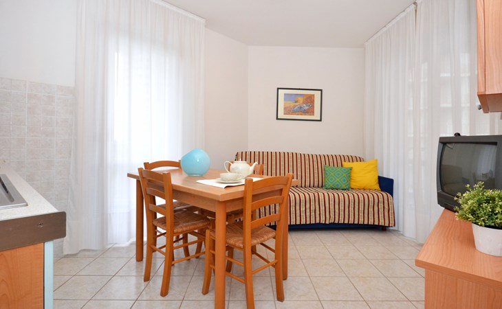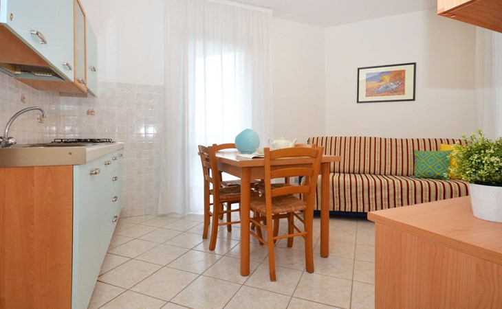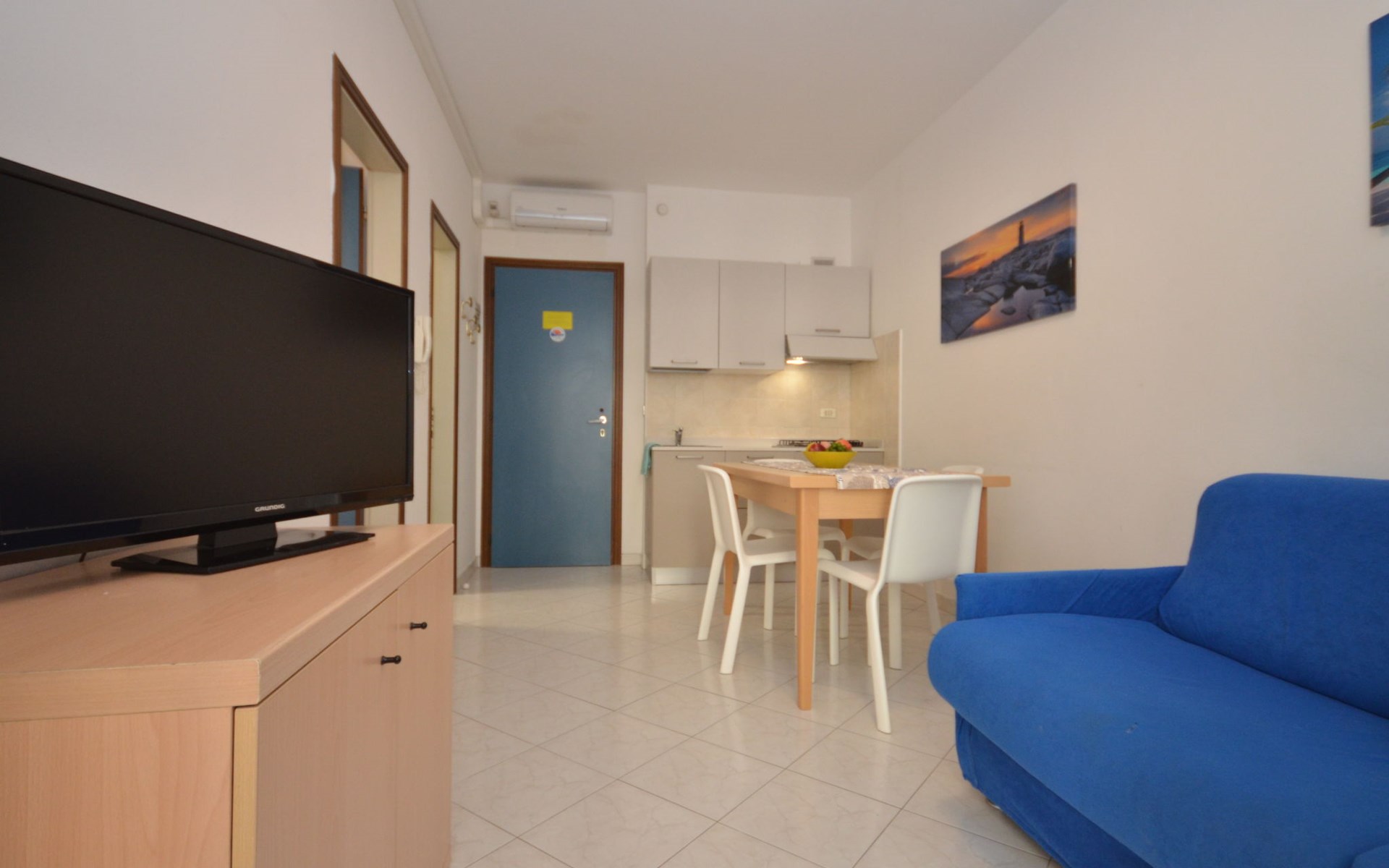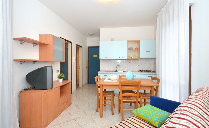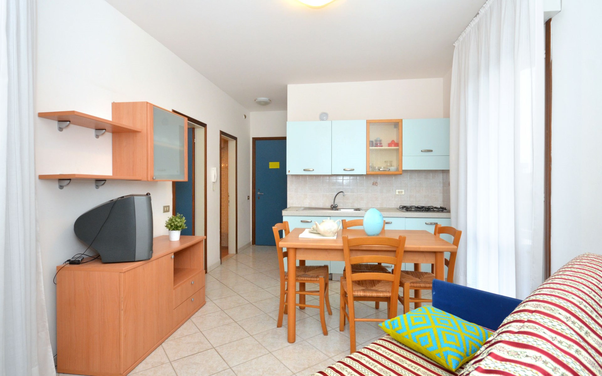 Apartment block "Residence Marco Polo", 8 storeys. In the district of Sabbiadoro 200 m from the centre of Lignano-Sabbiadoro, 13 km from the centre of Bibione, 95 km from the centre of Trieste, 50 m from the sea, road to cross. For shared use: property (fenced), well-kept garden with lawn and trees, swimming pool (240 m2, seasonal availability: 07.Jun. - 07.Sep.). Children's pool, terrace. In the house: lift, bicycle rental. Parking at the house on the premises, communal covered parking at the house. Dimension: height 205 cm. Shop, restaurant 200 m, bus stop 600 m, railway station "Latisana (Milano-Venezia-Triest)" 20 km, sandy beach 50 m. Golf course (18 hole) 7.2 km. Beach service: From approx. the beginning of May to approx. mid-September, 1 sun lounger, 1 deck chair and 1 parasol per accommodation unit are included in the rental price.