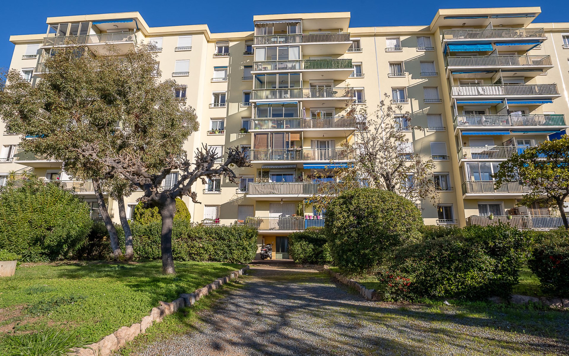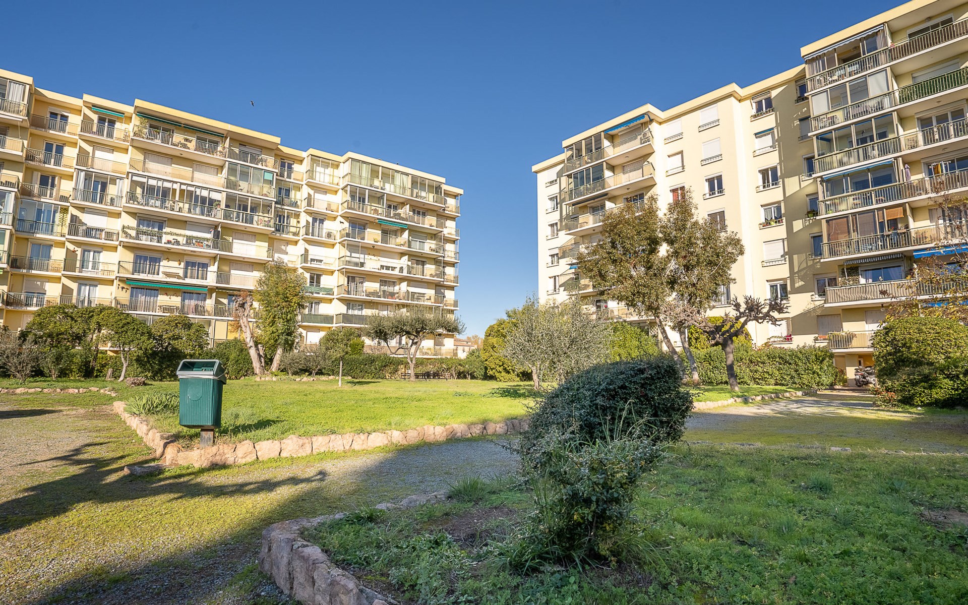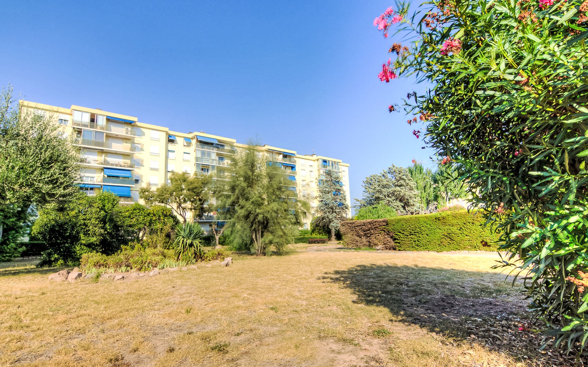 Fréjus: Residence "Le Grand Parc", 5 storeys. From the sea, 750 m from the beach. Parking on the premises. Shop 900 m, grocery 1 km, supermarket 2 km, shopping centre 4 km, restaurant 1 km, bus stop "Le sextant" 400 m, railway station "Saint-Raphaël Valescure" 2 km, sandy beach 750 m. Marina 1 km, golf course (18 hole) 7 km. Nearby attractions: Cannes 40 km, Saint-Tropez 40 km, Nice 70 km, Gorges du Verdon 90 km. Well-known lakes can easily be reached: Sainte-Croix 90 km. Hiking paths: Estérel 90 km. Please note: railway line closeby 50 m from the property.