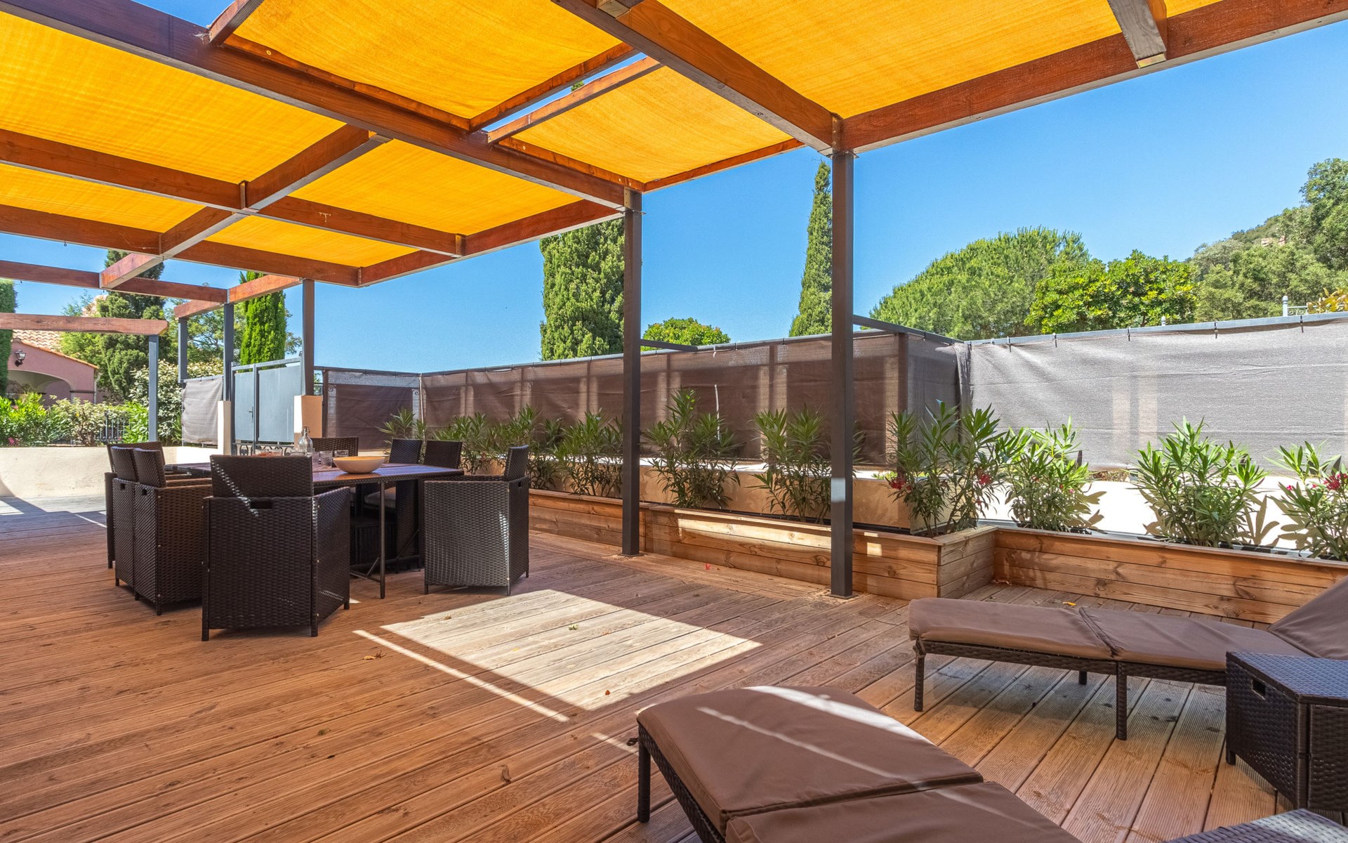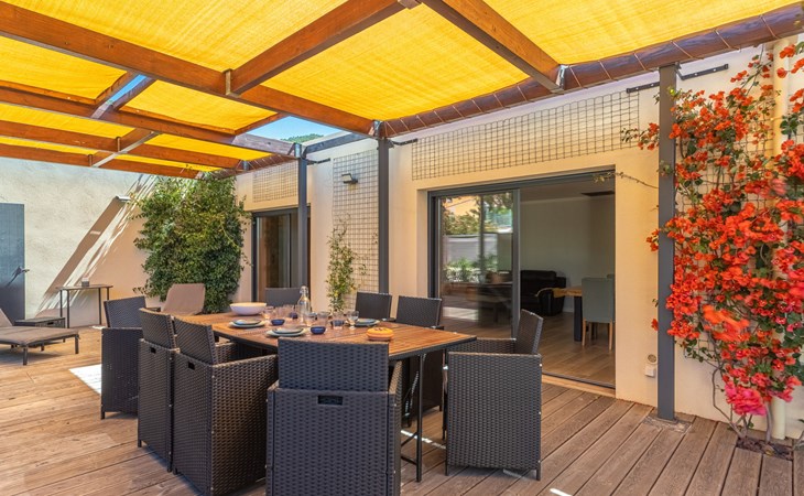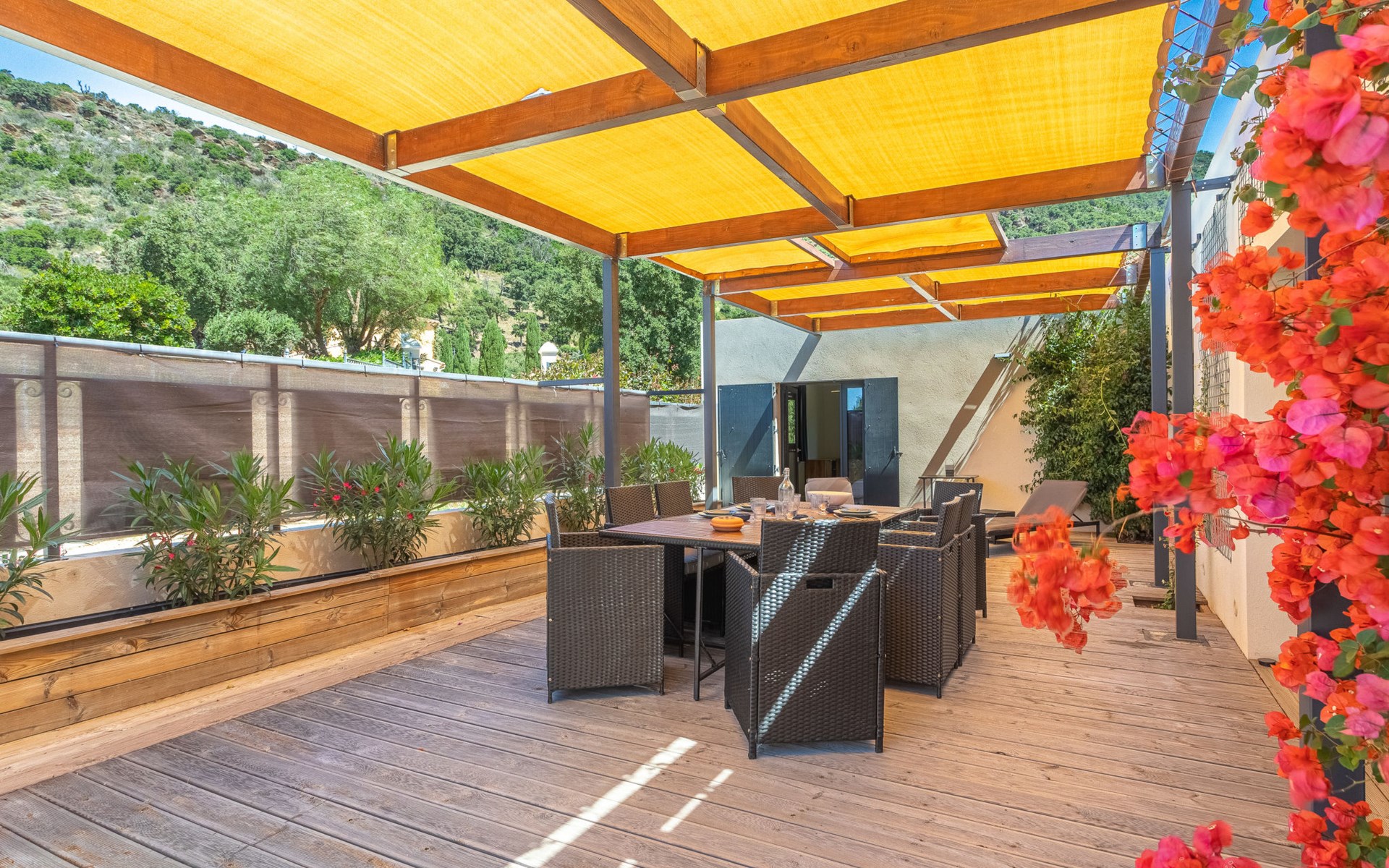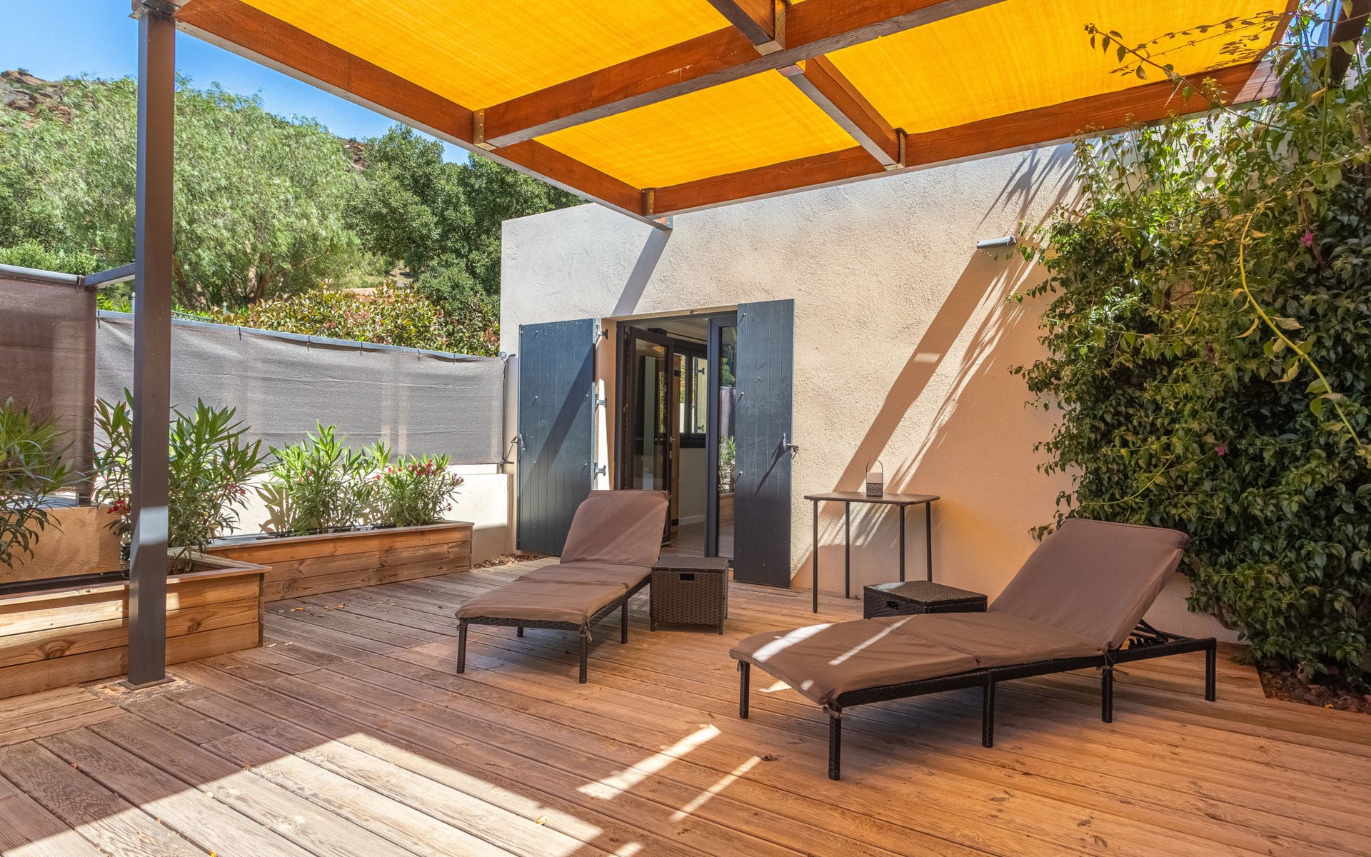 Cavalière 8 km from Le Lavandou: Beautiful semi-detached house "Maison Flocy". In a quiet position on top of a hill, 1.5 km from the sea, 1.5 km from the beach, south facing position. Parking at the house. Grocery 1 km, restaurant 800 m, bus stop "Mairie de Cavalière" 1.7 km, sandy beach "Cavalière" 1.5 km. Nearby attractions: Saint Tropez 35 km, Magic World 32 km, Parc Olbius Riquier 30 km, Le Jardin des Méditerranées 8 km. Hiking paths: Sentiers du Littoral. Please note: the keys‘ handover takes place by the agency Interhome in Le Lavandou, 8 km. Animals in the neighbourhood.