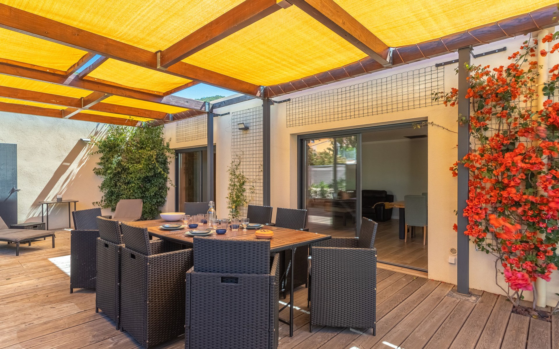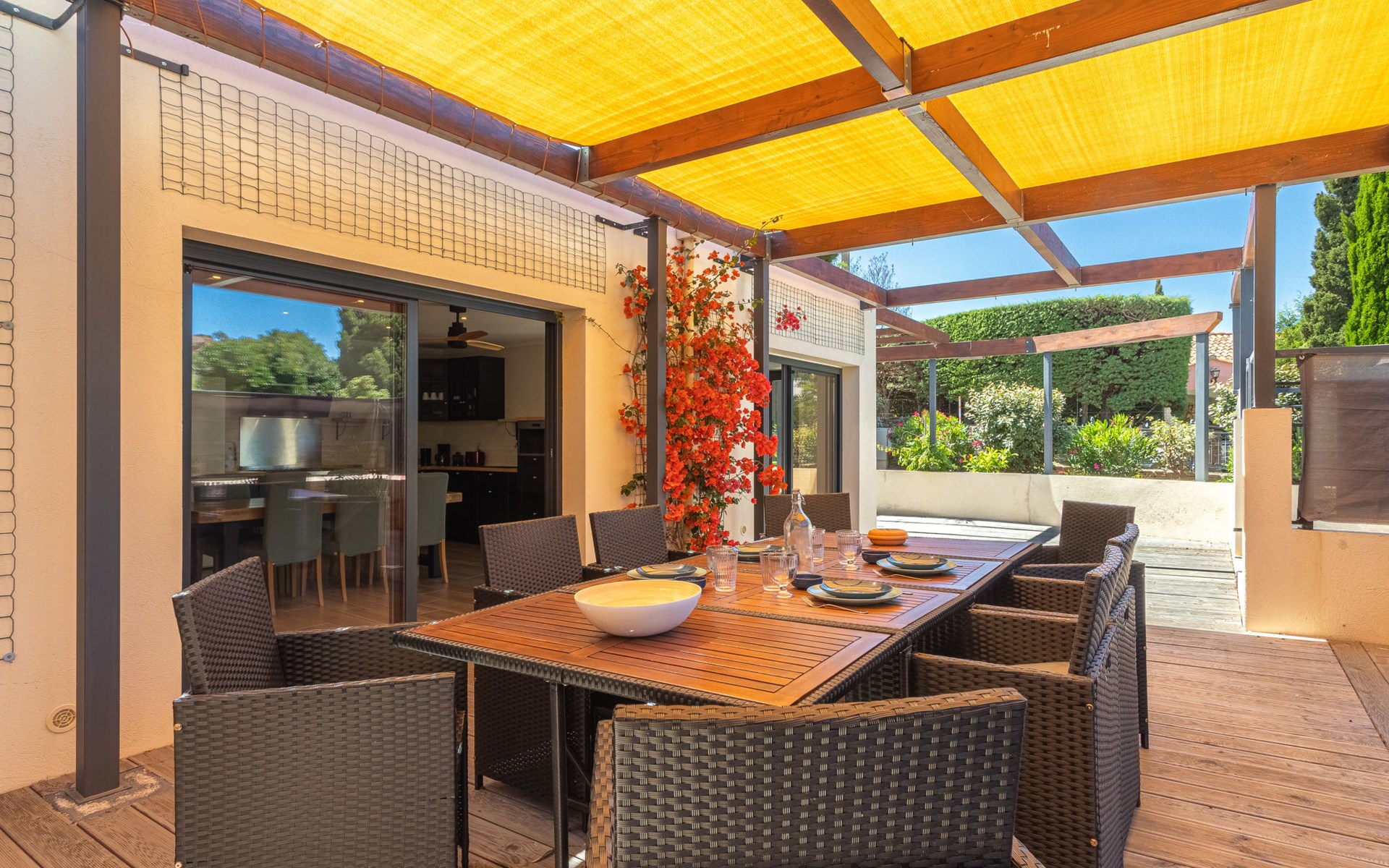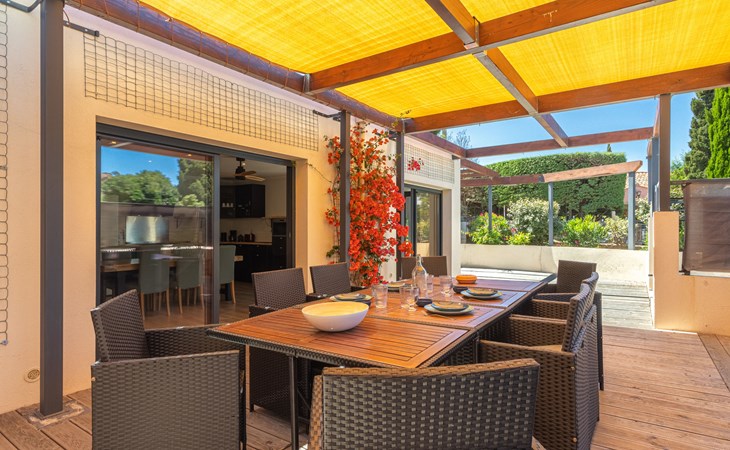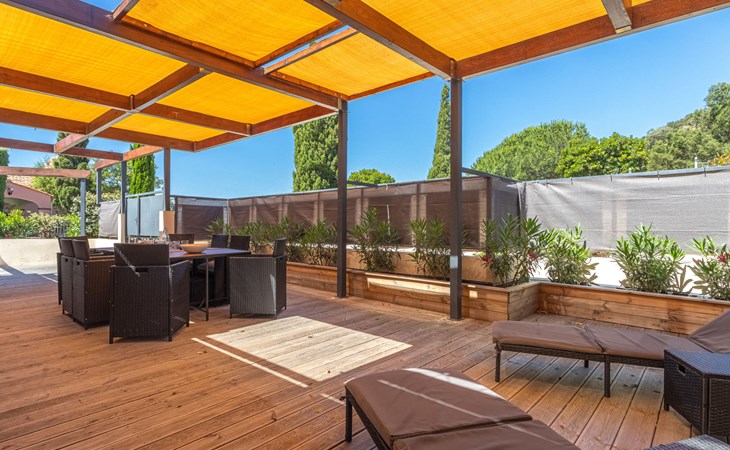 Cavalière 8 km from Le Lavandou: Beautiful semi-detached house "Maison Flocy". In a quiet position on top of a hill, 1.5 km from the sea, 1.5 km from the beach, south facing position. Parking at the house. Grocery 1 km, restaurant 800 m, bus stop "Mairie de Cavalière" 1.7 km, sandy beach "Cavalière" 1.5 km. Nearby attractions: Saint Tropez 35 km, Magic World 32 km, Parc Olbius Riquier 30 km, Le Jardin des Méditerranées 8 km. Hiking paths: Sentiers du Littoral. Please note: the keys‘ handover takes place by the agency Interhome in Le Lavandou, 8 km. Animals in the neighbourhood.