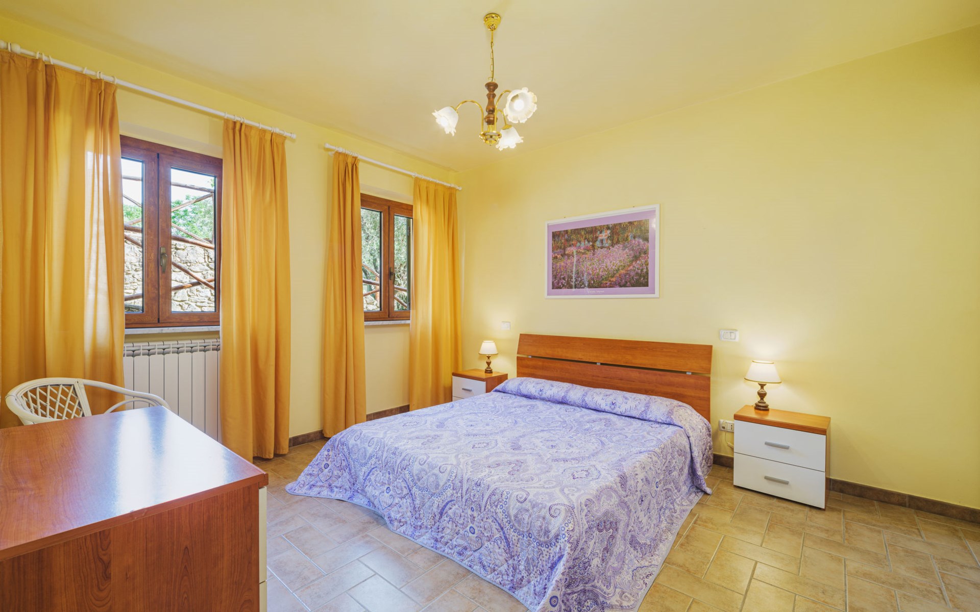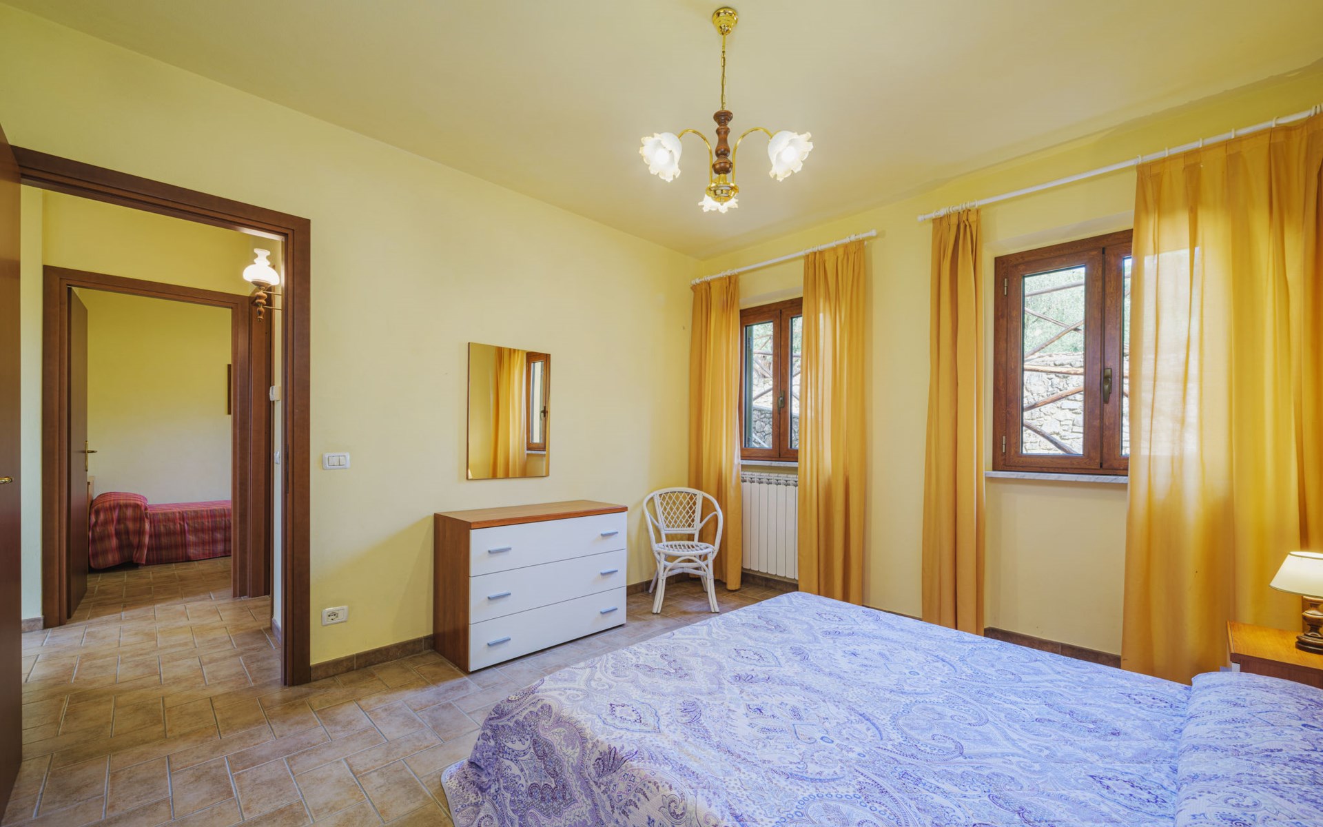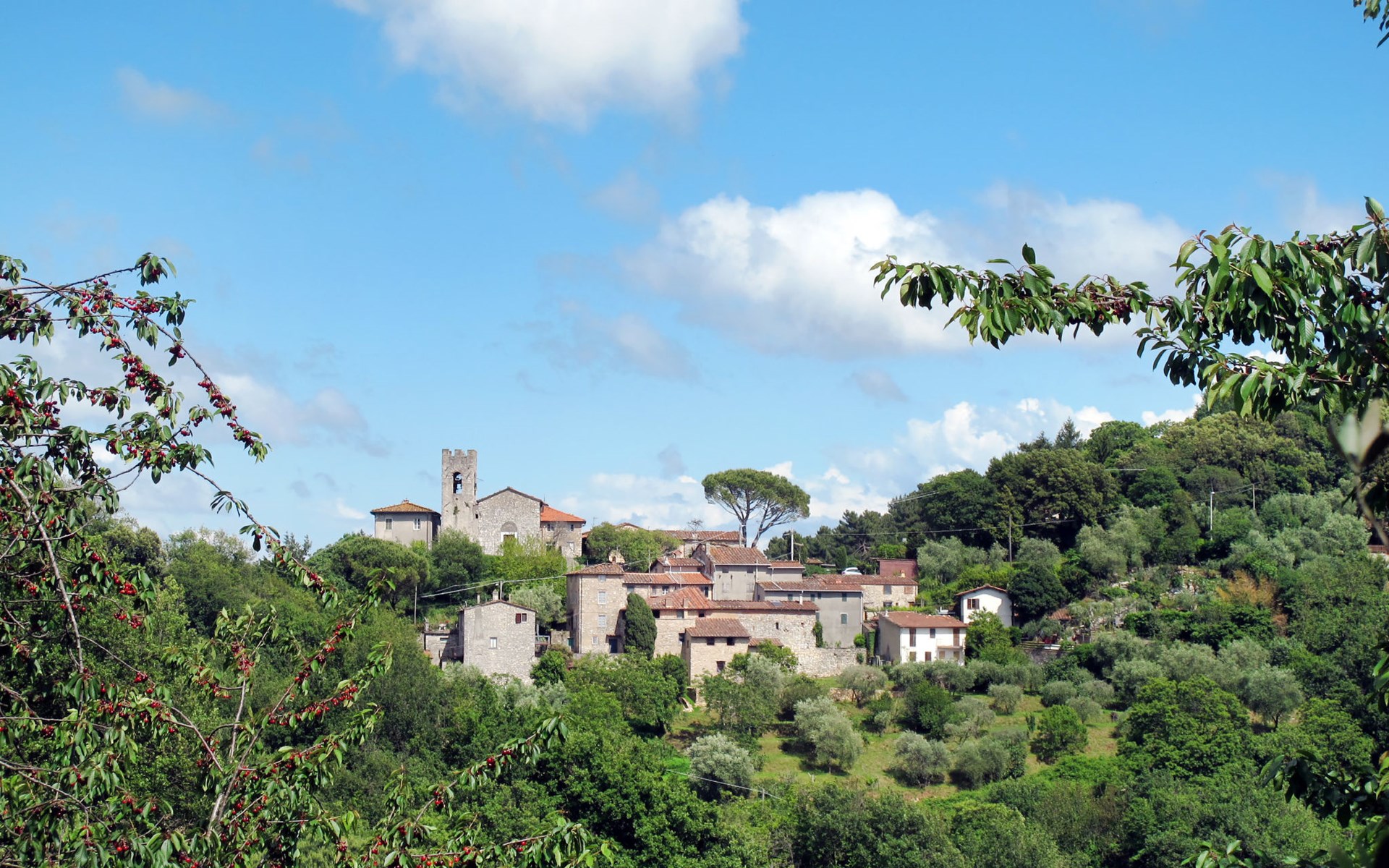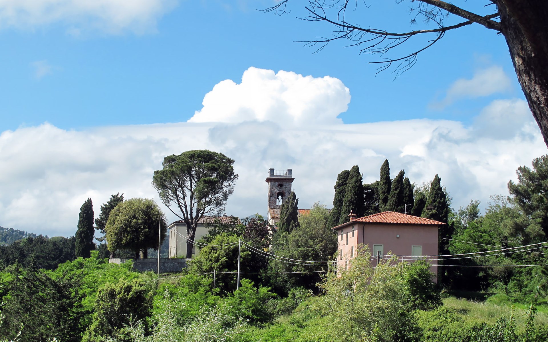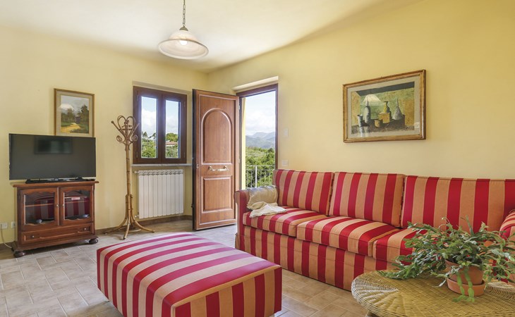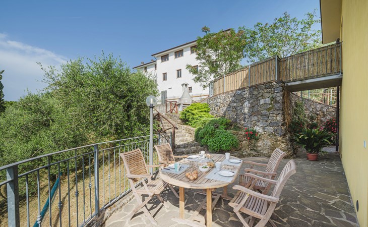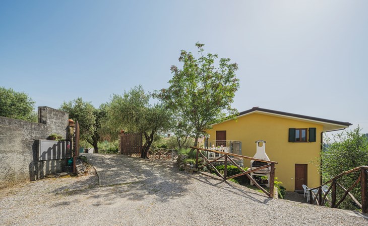Stabbiano 2 km from Chiatri: Beautiful 3-family house "Ca del Lovi", surrounded by trees. 2 km from the centre of Chiatri, 300 m from the centre of Stabbiano, 15 km from the centre of Lucca, on a slope, 19 km from the sea, 19 km from the beach, in the countryside. For shared use: terraced garden, 4'000 m2 (fenced) with trees, natural garden. Barbecue. In the house: central heating system, heating to be paid on the spot (28.Mar. - 30.Oct.), heating available only from 31.Oct. - 27.Mar.. 500 m long narrow motor access. Parking on the premises. Supermarket 6 km, bus stop 5.2 km, sandy beach "Viareggio" 19 km. Nearby attractions: Pisa 25 km, San Giuliano Terme 20 km, Collodi Pinocchio Park 29 km, Pietrasanta 32 km, Forte dei Marmi 32 km, Carrara Cave Fantiscritti 53 km. Well-known lakes can easily be reached: Torre del Lago 23 km, Lago di Massaciuccoli 16 km. Please note: car recommended.