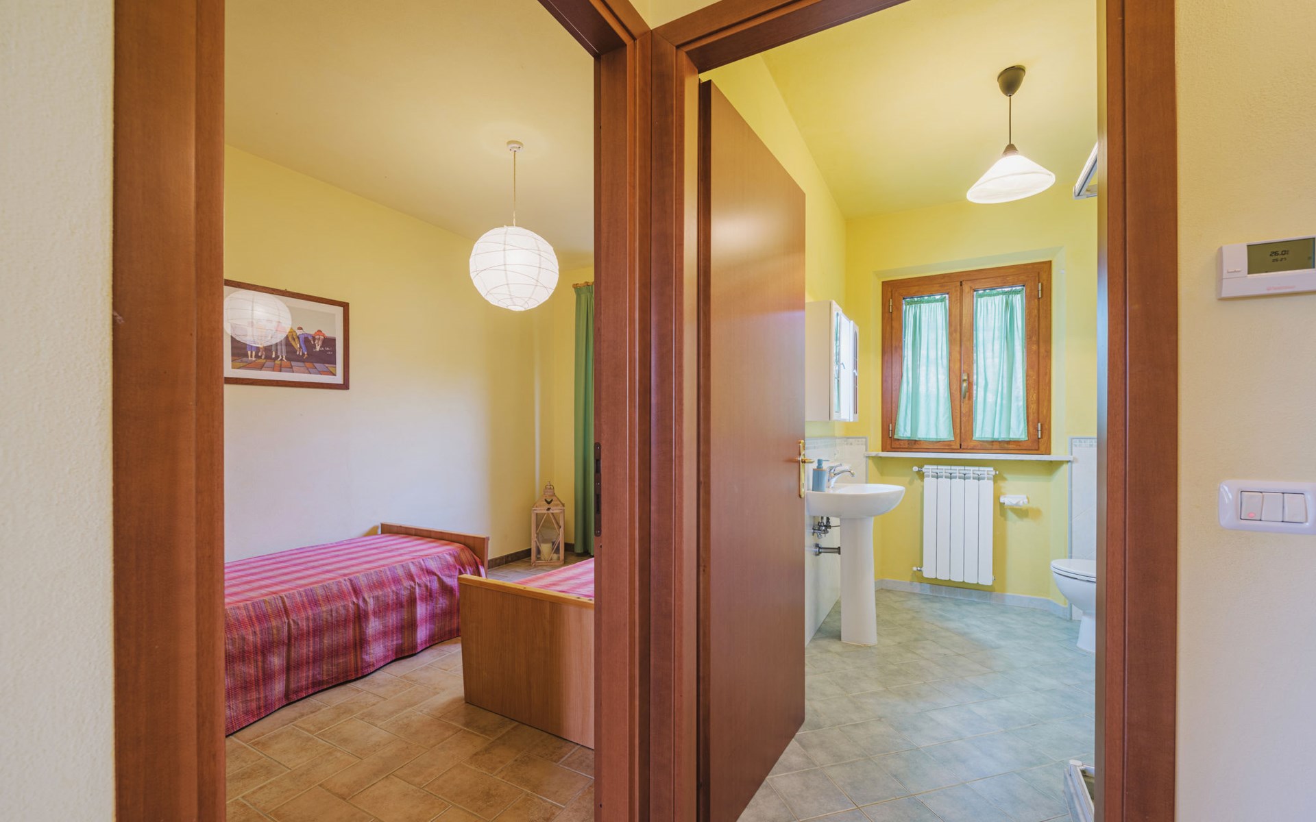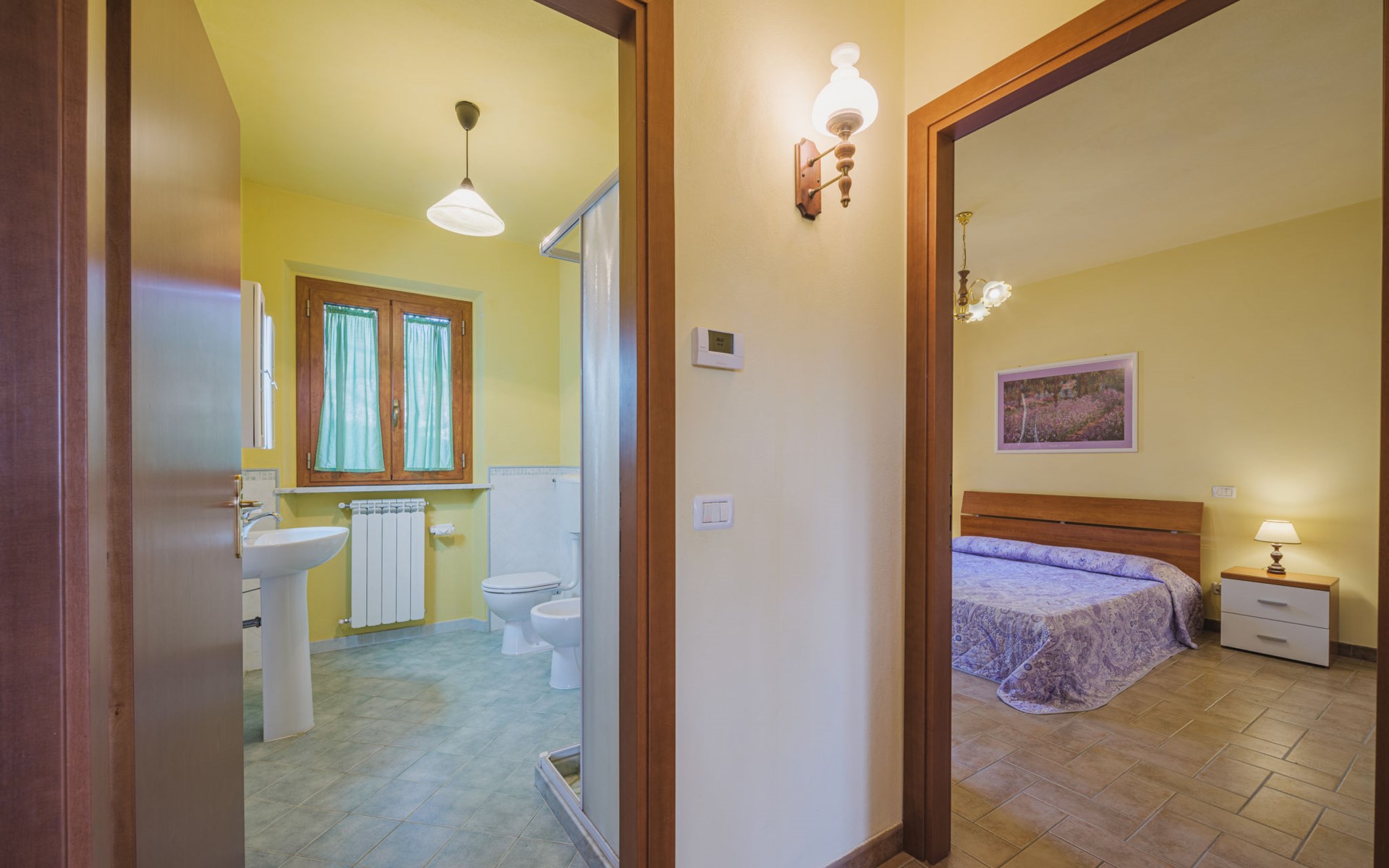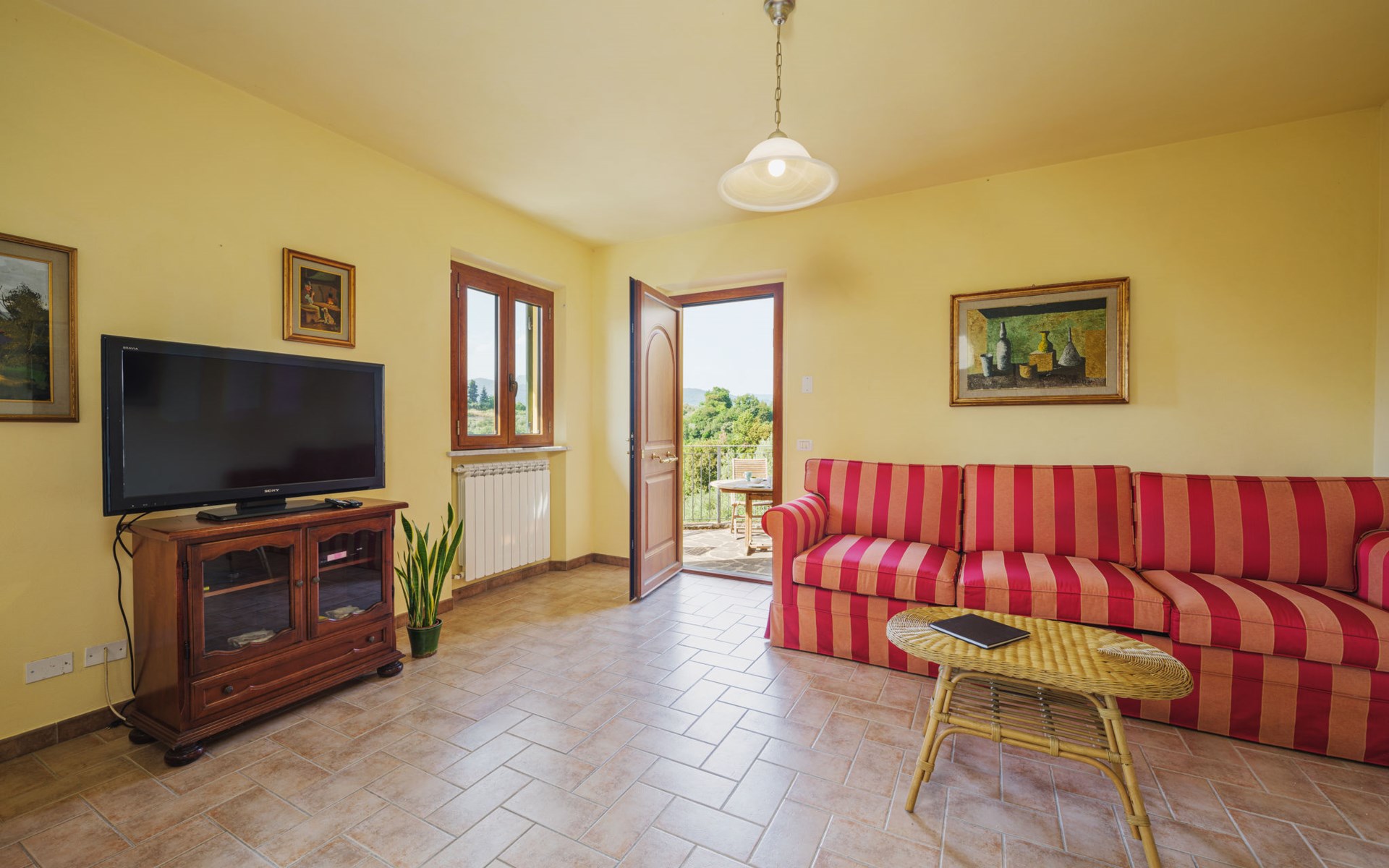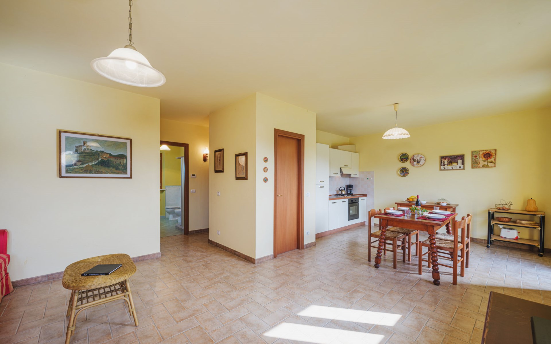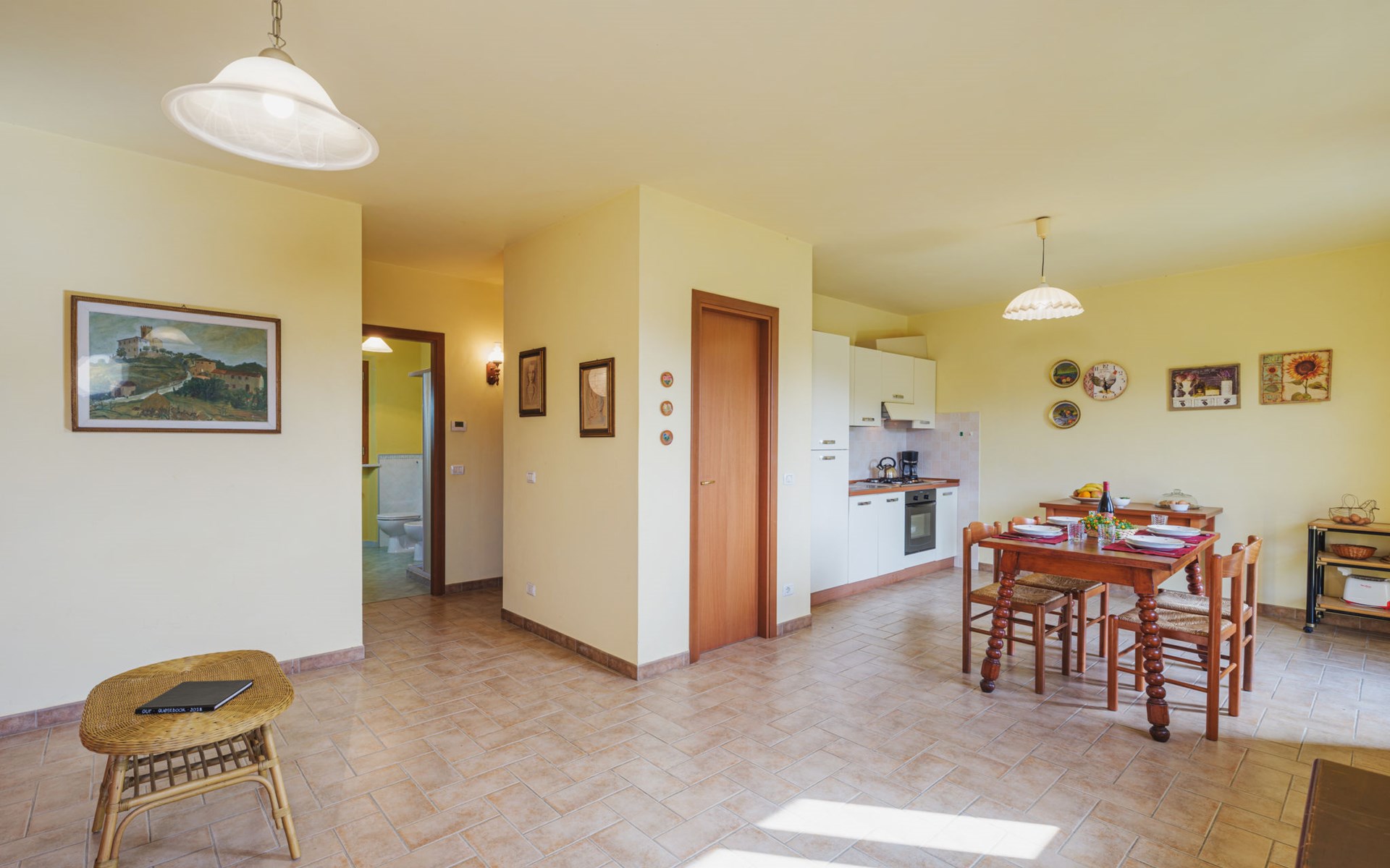 Stabbiano 2 km from Chiatri: Beautiful 3-family house "Ca del Lovi", surrounded by trees. 2 km from the centre of Chiatri, 300 m from the centre of Stabbiano, 15 km from the centre of Lucca, on a slope, 19 km from the sea, 19 km from the beach, in the countryside. For shared use: terraced garden, 4'000 m2 (fenced) with trees, natural garden. Barbecue. In the house: central heating system, heating to be paid on the spot (28.Mar. - 30.Oct.), heating available only from 31.Oct. - 27.Mar.. 500 m long narrow motor access. Parking on the premises. Supermarket 6 km, bus stop 5.2 km, sandy beach "Viareggio" 19 km. Nearby attractions: Pisa 25 km, San Giuliano Terme 20 km, Collodi Pinocchio Park 29 km, Pietrasanta 32 km, Forte dei Marmi 32 km, Carrara Cave Fantiscritti 53 km. Well-known lakes can easily be reached: Torre del Lago 23 km, Lago di Massaciuccoli 16 km. Please note: car recommended.