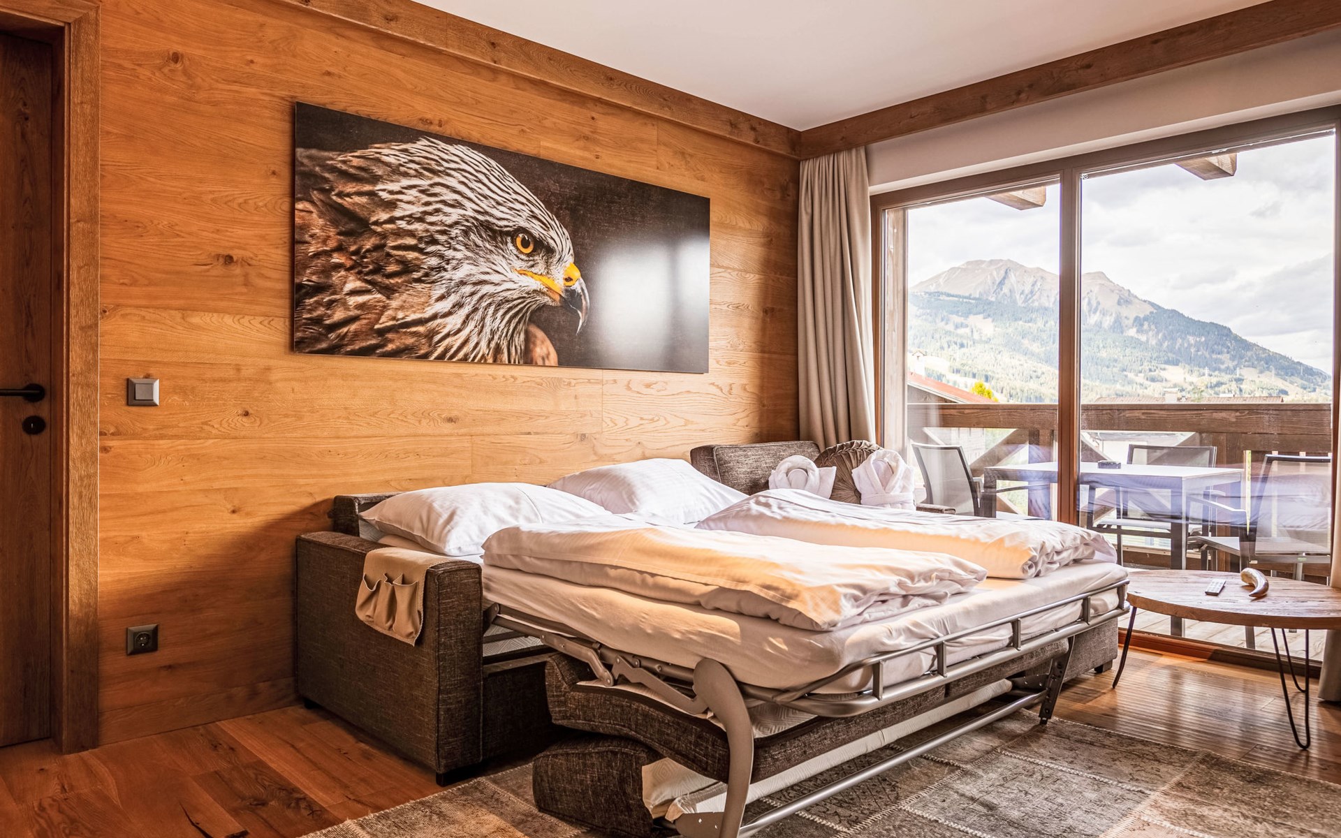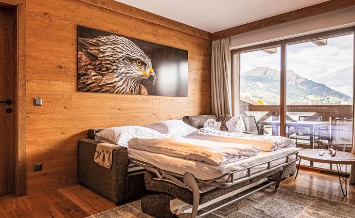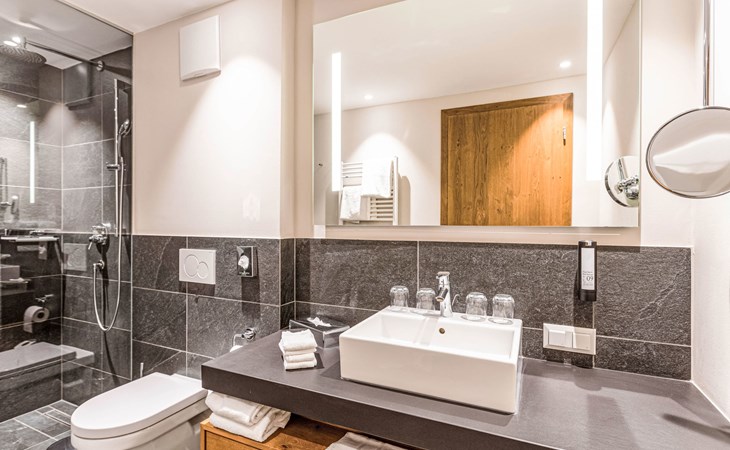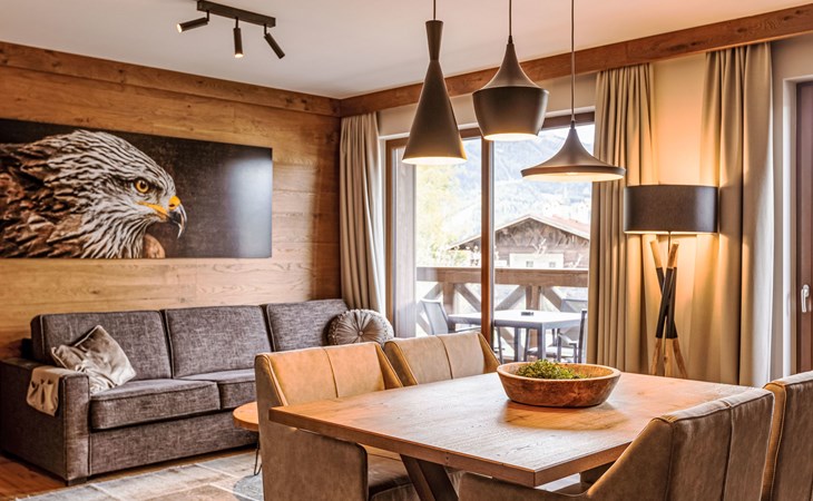 Ehrwald: Premium holiday apartments and holiday homes in Ehrwald with wellness area, breakfast included. Modern, comfortable resort "Bergresort Zugspitze by AlpsResort". 100 m from the centre of Ehrwald, 8 km from the skiing area. For shared use: swimming pool heated (seasonal availability: 01.Jan. - 31.Dec.). In the complex: reception, restaurant, sauna, fitness room, steam room, solarium (extra). (all included), relaxation room, spa area hamam. Parking at the house, communal covered parking. Supermarket 500 m, outdoor swimming pool 20 km. Golf course (12 hole) 3 km, skisport facilities 8 km, ski rental 8 km, children's ski school 8 km, cross country ski track 2 km. Nearby attractions: Alpentherme Ehrenberg 20 km. Well-known ski regions can easily be reached: Ehrwald Zugspitze. Hiking paths: Tiroler Zugspitz Arena. The photo is just an example.