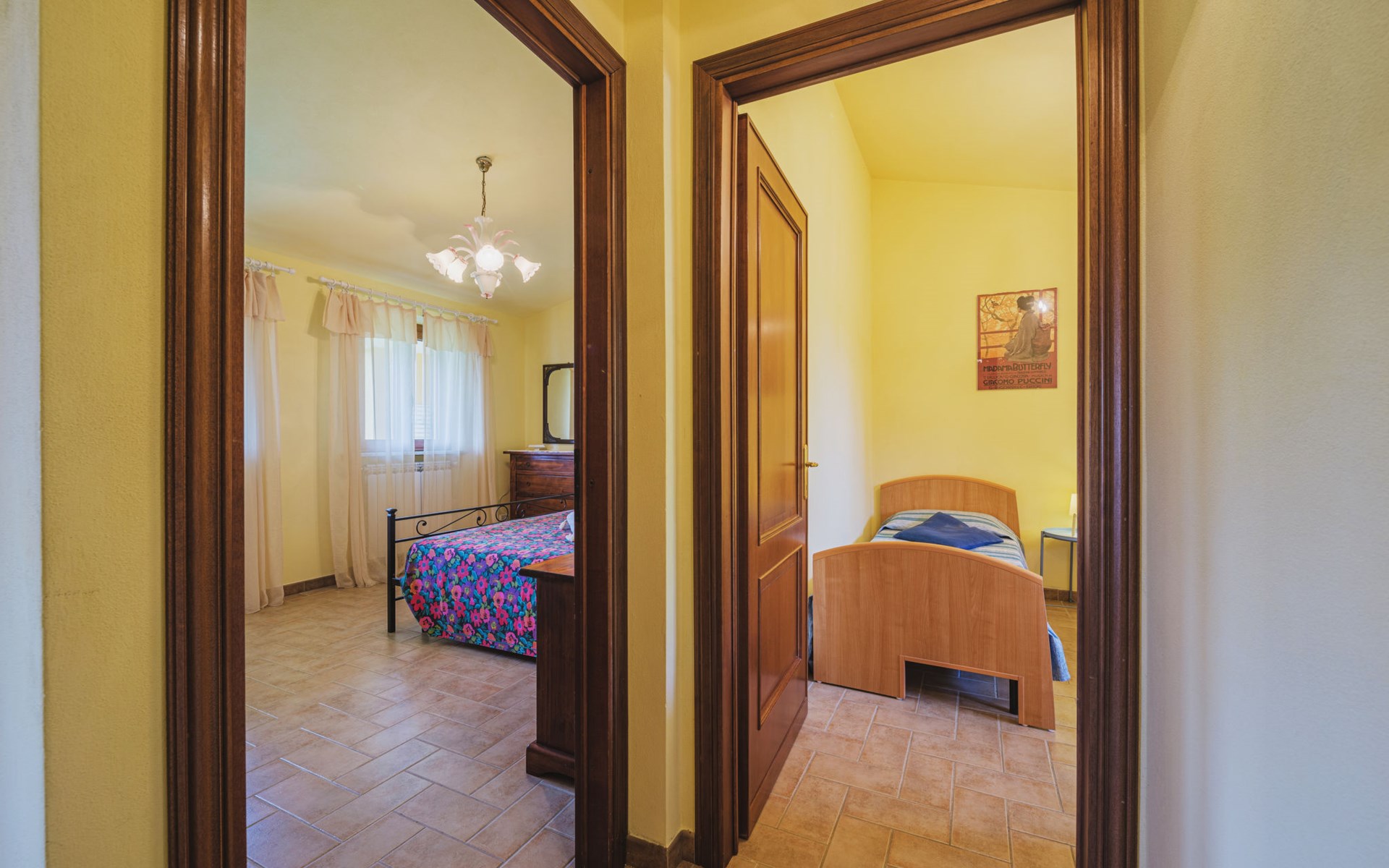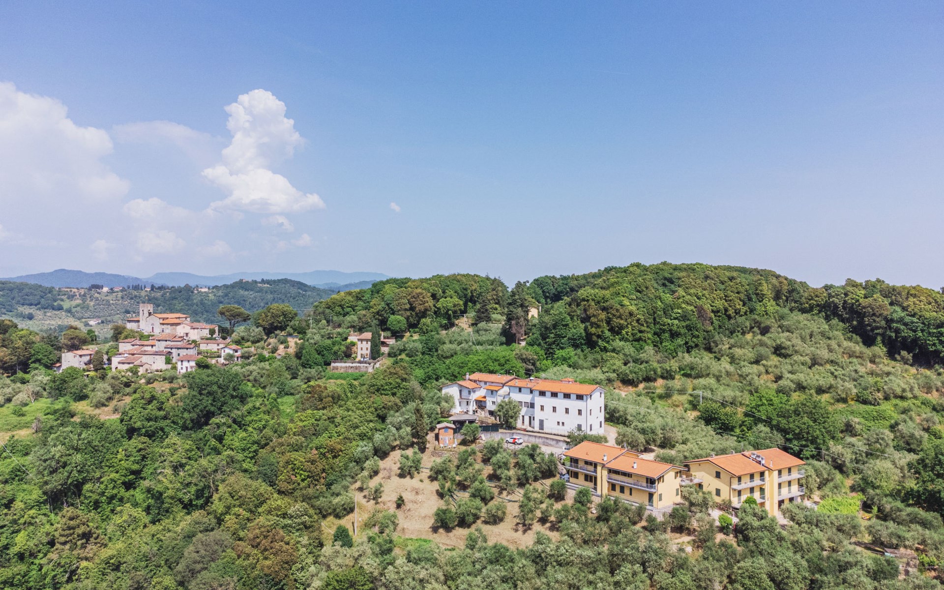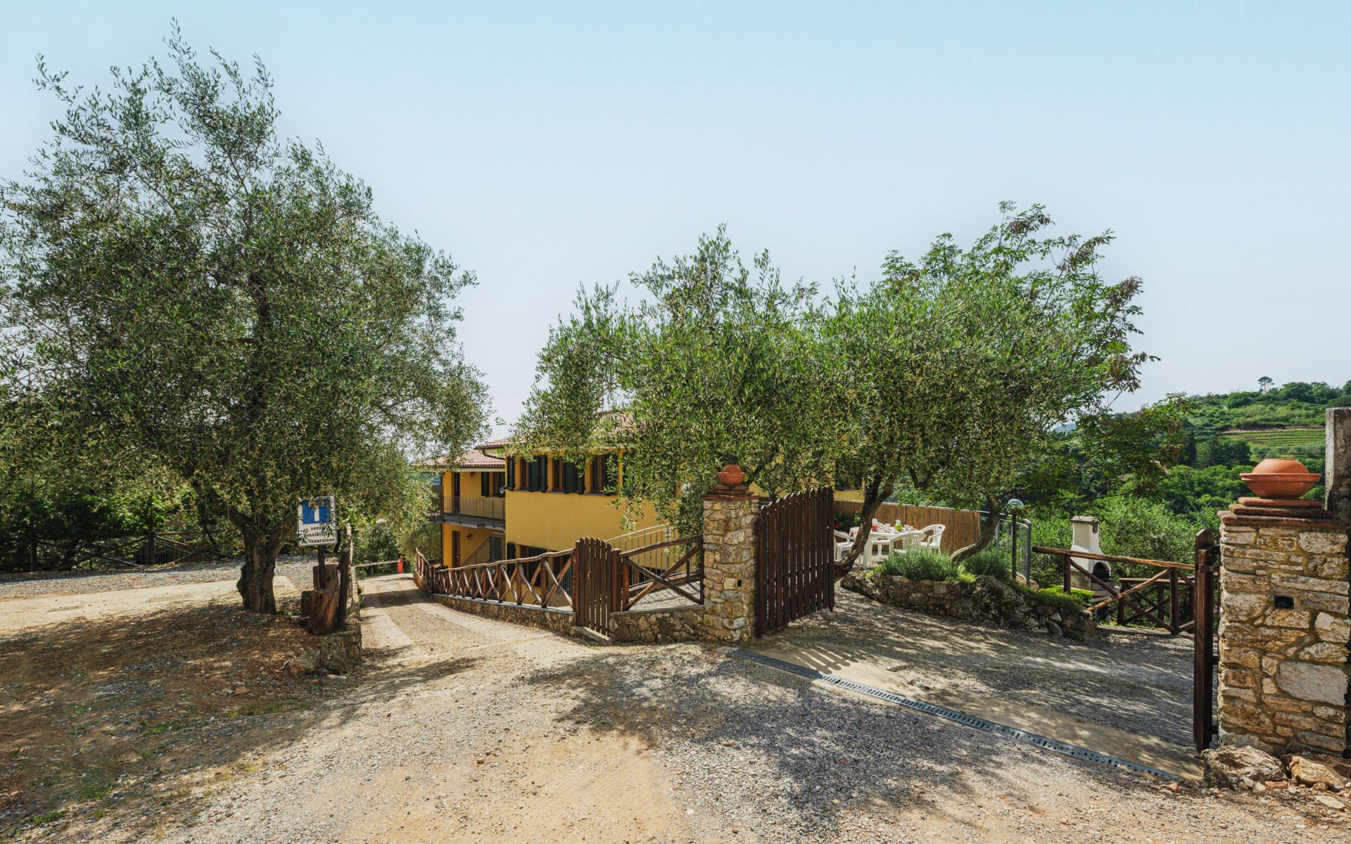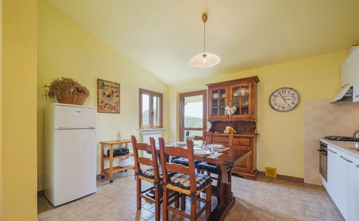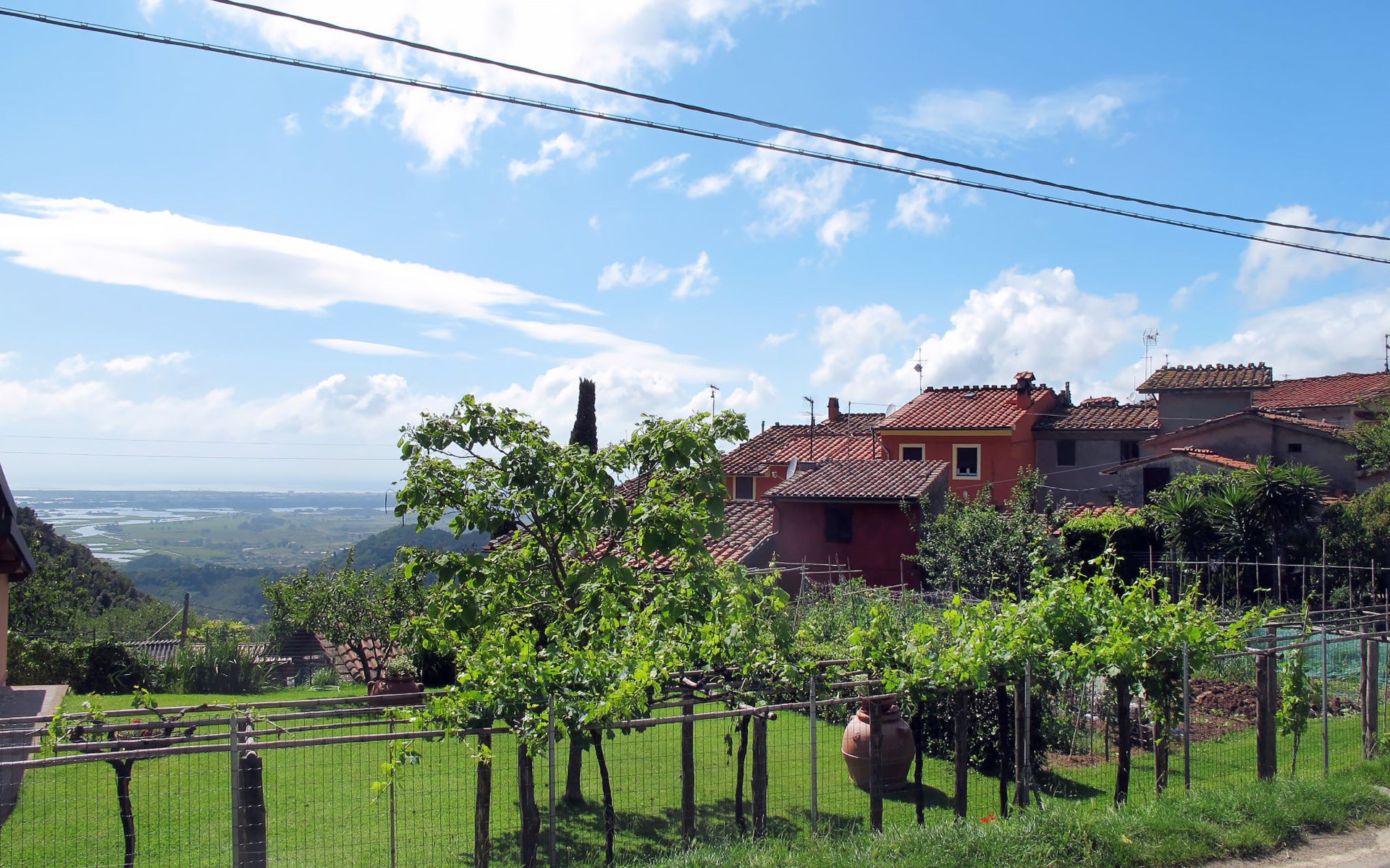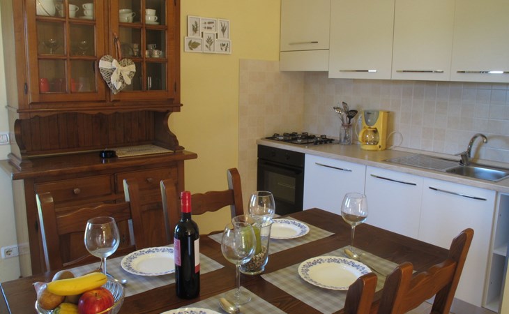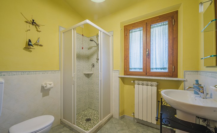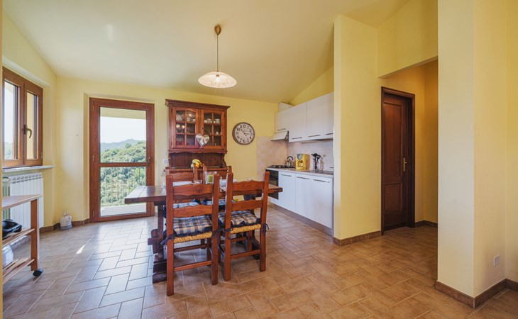 Stabbiano 2 km from Chiatri: Beautiful 3-family house "Ca del Lovi", surrounded by trees. 2 km from the centre of Chiatri, 300 m from the centre of Stabbiano, 15 km from the centre of Lucca, on a slope, 19 km from the sea, 19 km from the beach, in the countryside. For shared use: terraced garden, 4'000 m2 (fenced) with trees, natural garden. Barbecue. In the house: central heating system, heating to be paid on the spot (28.Mar. - 30.Oct.), heating available only from 31.Oct. - 27.Mar.. 500 m long narrow motor access. Parking on the premises. Supermarket 6 km, bus stop 5.2 km, sandy beach "Viareggio" 19 km. Nearby attractions: Pisa 25 km, San Giuliano Terme 20 km, Collodi Pinocchio Park 29 km, Pietrasanta 32 km, Forte dei Marmi 32 km, Carrara Cave Fantiscritti 53 km. Well-known lakes can easily be reached: Torre del Lago 23 km, Lago di Massaciuccoli 16 km. Please note: car recommended.