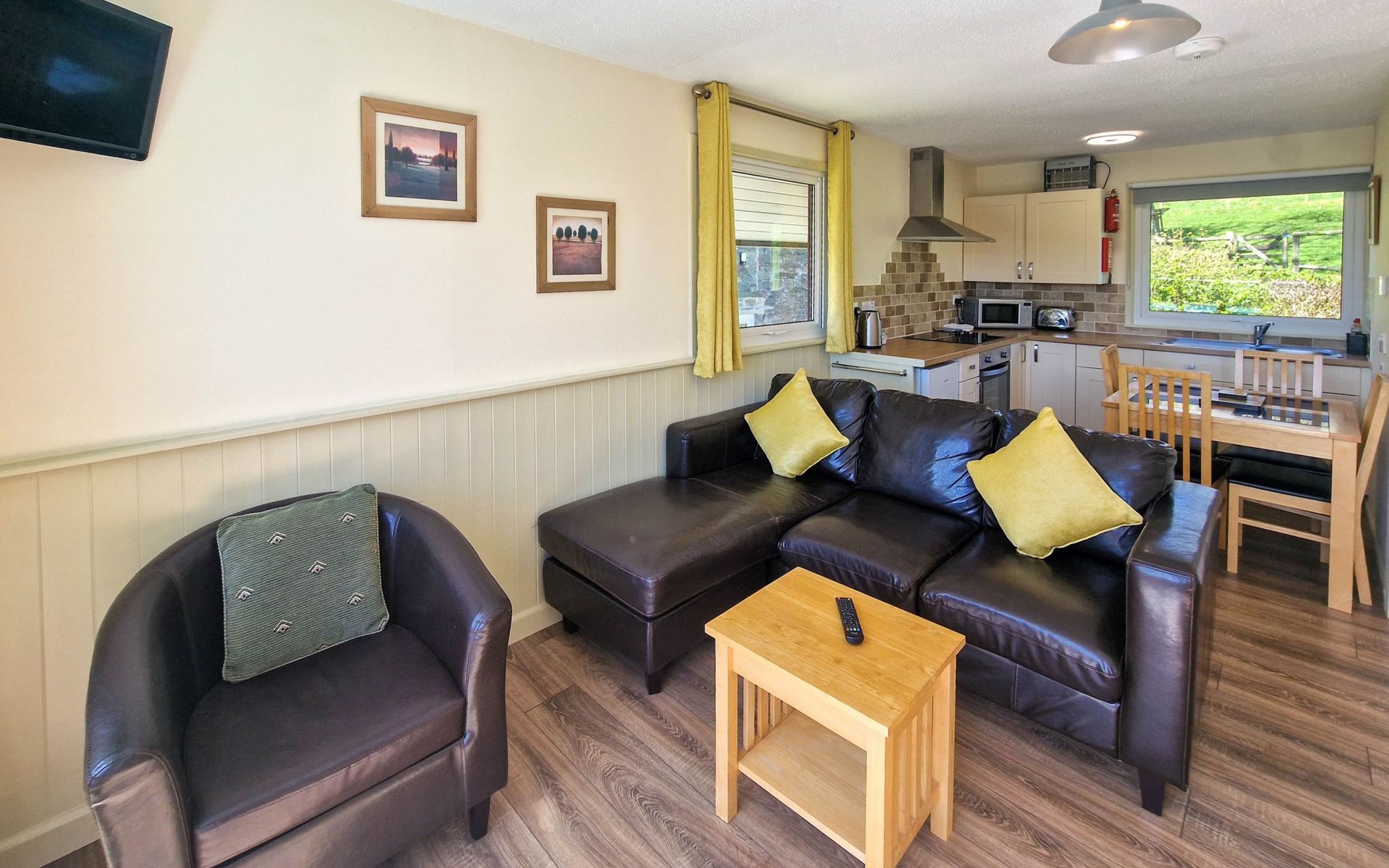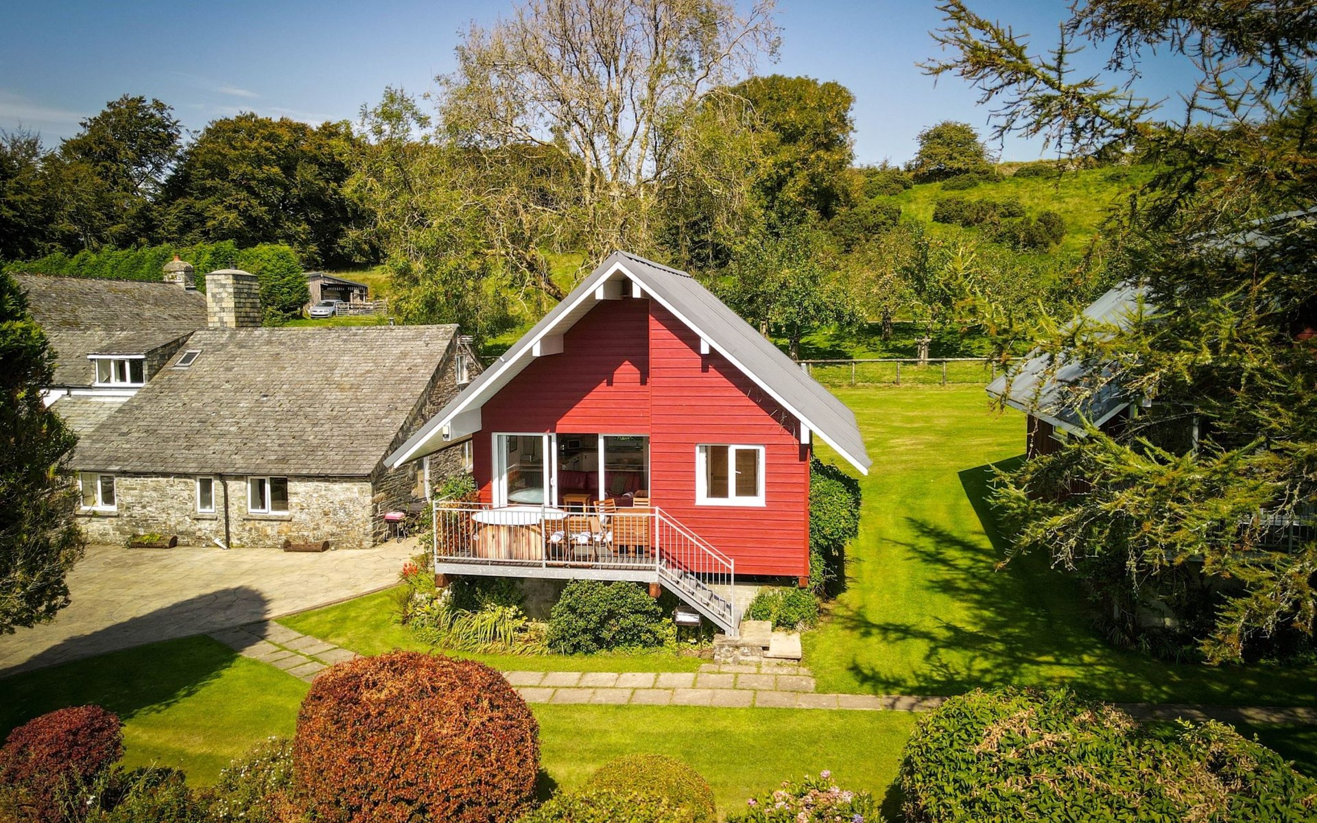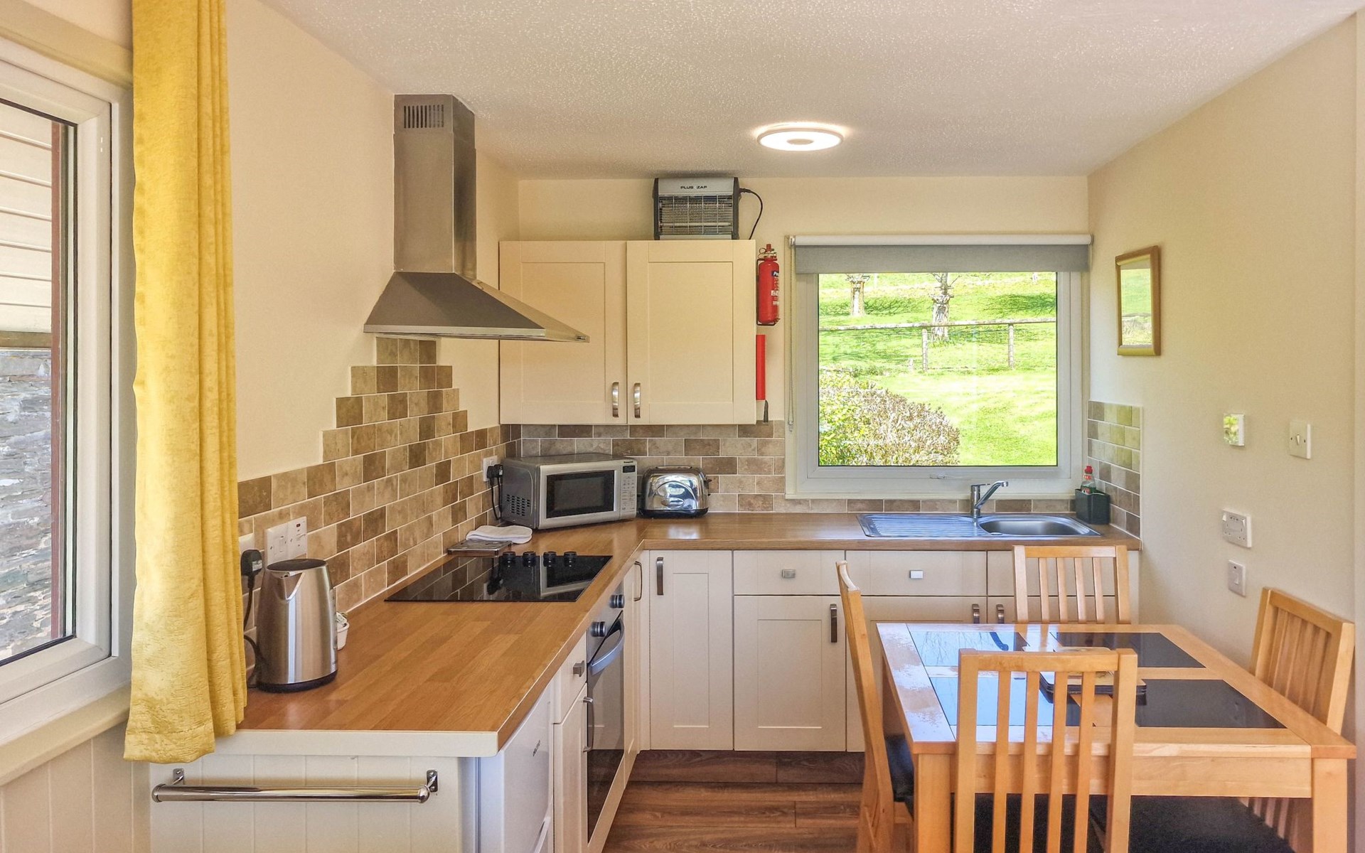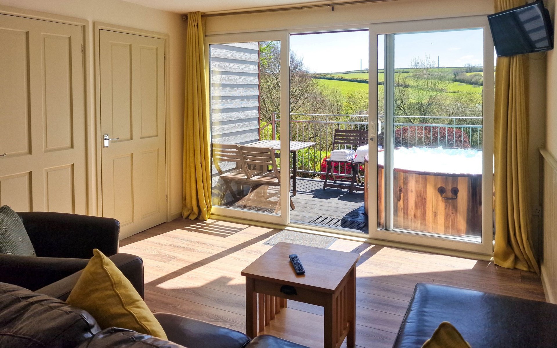 Beautiful, cosy timber house "Meadow Lodge 1". In the hamlet St Clether, in the district Launceston, in the countryside. For shared use: meadow, courtyard. Children's playground (slide, swing). Private: hot tub. In the complex: reception, sauna (extra). Fitness room (extra). Hot tub (extra). Table tennis, billiard table, playroom, washing machine. Parking. Shop 14 km, supermarket 19 km, restaurant 6 km, bar 6 km, bus stop "Altarnun" 7 km, railway station "Bodmin Parkway" 35 km, sandy beach "Bossiney Cove" 16 km. Golf course (9 hole) 30 m, walking paths from the house 400 m, fishing possibilities 14 km. Nearby attractions: Tintagel Castle 18 km, Boscastle 14 km, Eden Project 47 km, Port Isaac 24 km, Widemouth Bay 22 km, Pentargon Waterfall 14 km. Hiking paths: Bodmin Moor 17 km. Please note: animals in the neighbourhood.