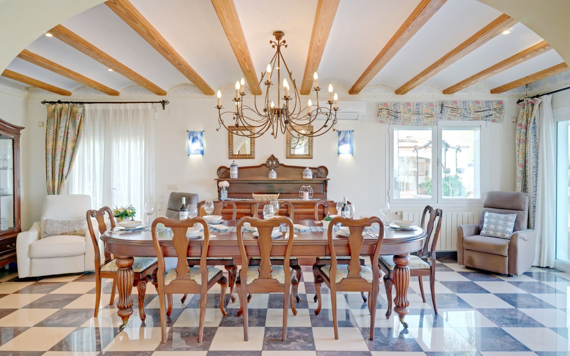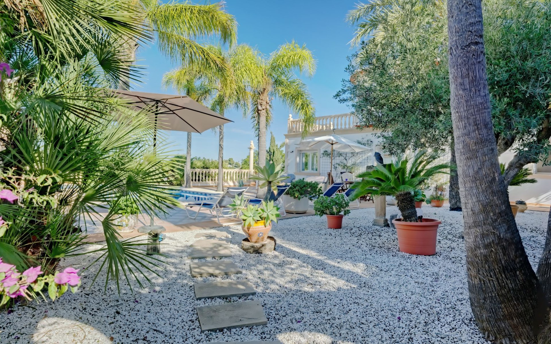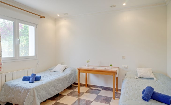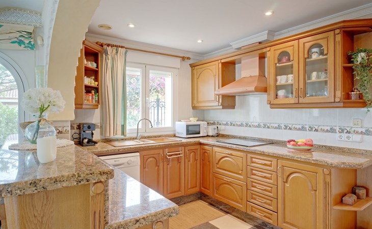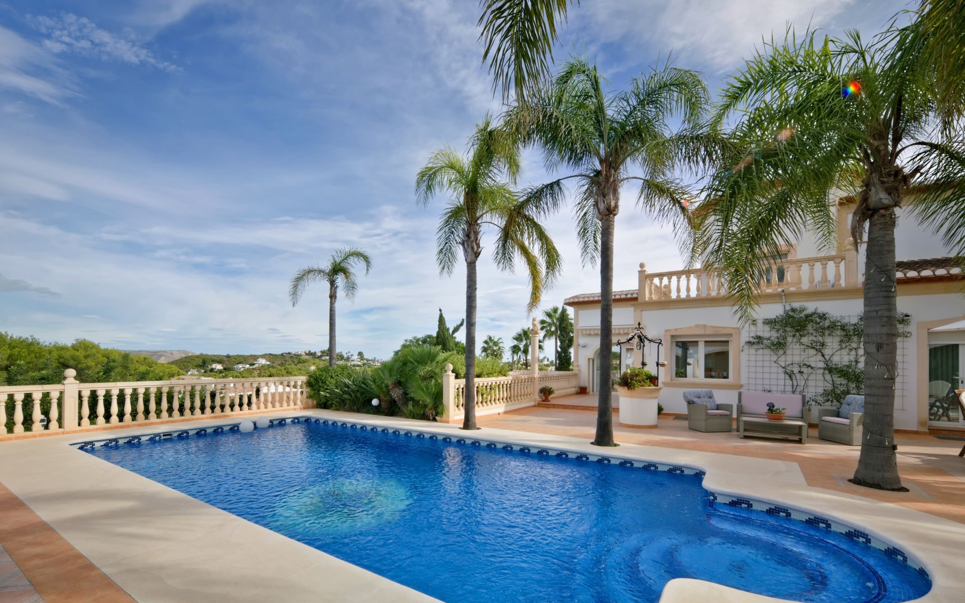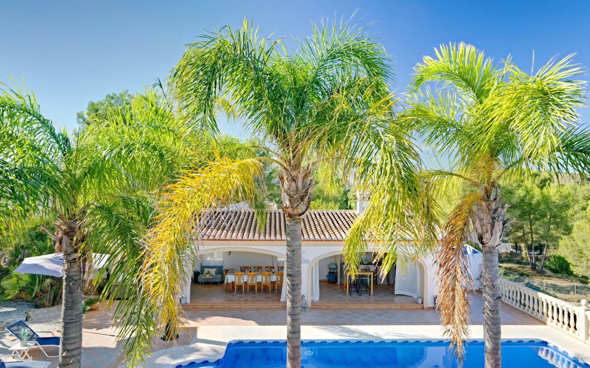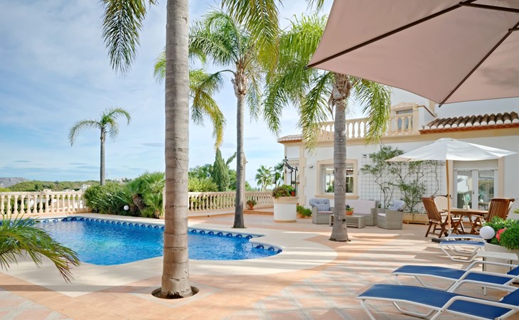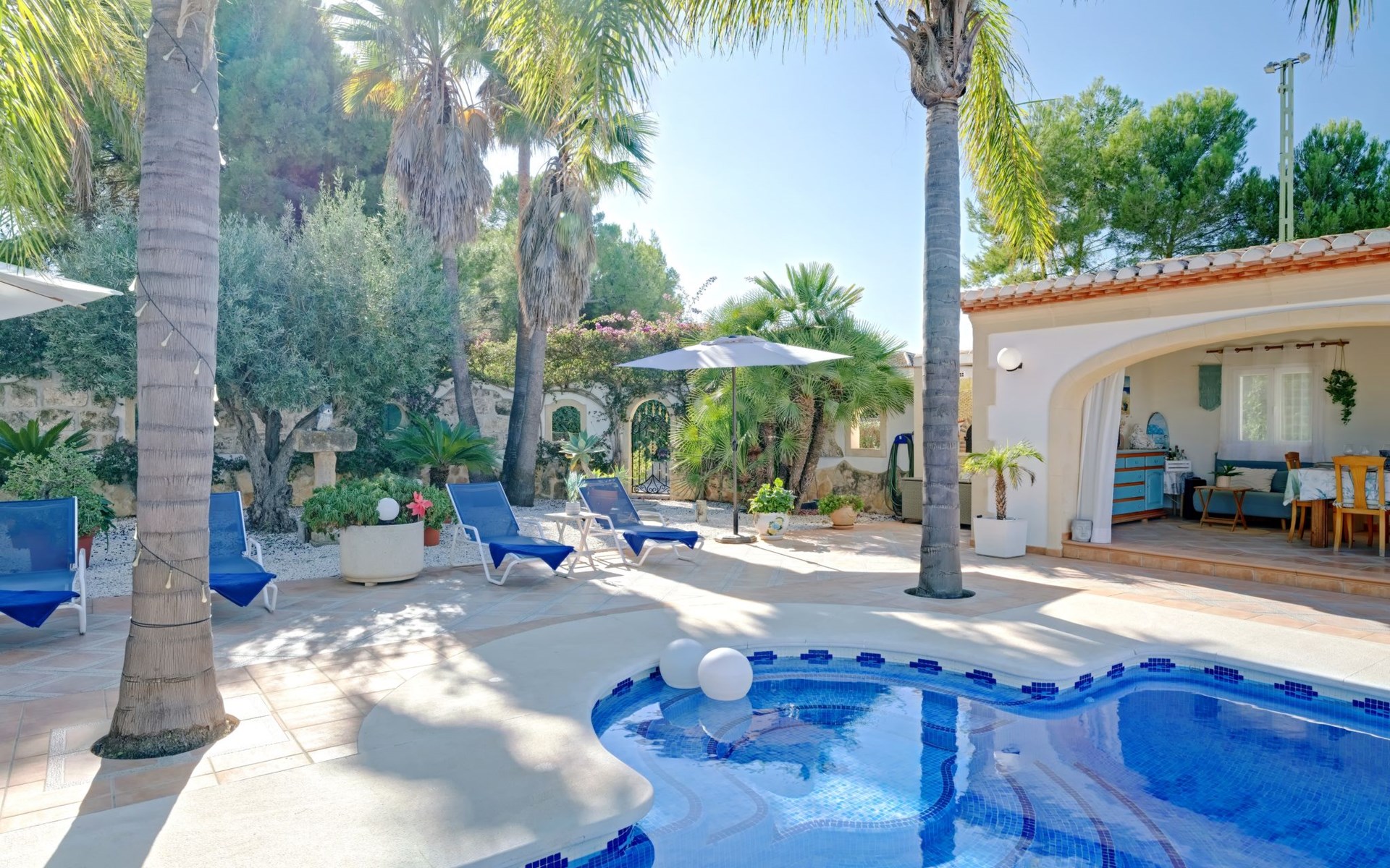 Very large, very beautiful, very comfortable villa "Carpe Diem", 3 storeys. In the district of Pinosol, in the resort 2.8 km from the centre of Arenal Javea, in a quiet, sunny position, 2.8 km from the sea, 2.8 km from the beach. Private: beautiful, well-kept garden (fenced), orchard (fenced), swimming pool (14 x 5 m, depth 40 - 210 cm, seasonal availability: 01.Jan. - 31.Dec.) with internal staircase. Shower/WC in the pool area, pool house with fridge and cooking stove, pergola, garden furniture, barbecue house, parking (for 4 cars) on the premises. Supermarket 2.3 km, restaurant 500 m, café 550 m, bus stop "Parada antiguo Mas y Mas" 2 km, sandy beach "El Arenal" 2.8 km, rocky beach "Segundo Muntanya" 3 km. Sports harbour 2.8 km, surf school 2.8 km, sailing school 2.8 km, tennis 3 km. The owner does not accept any youth groups.