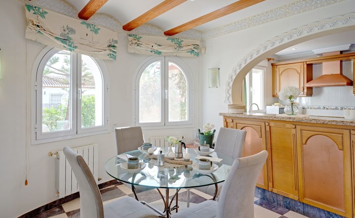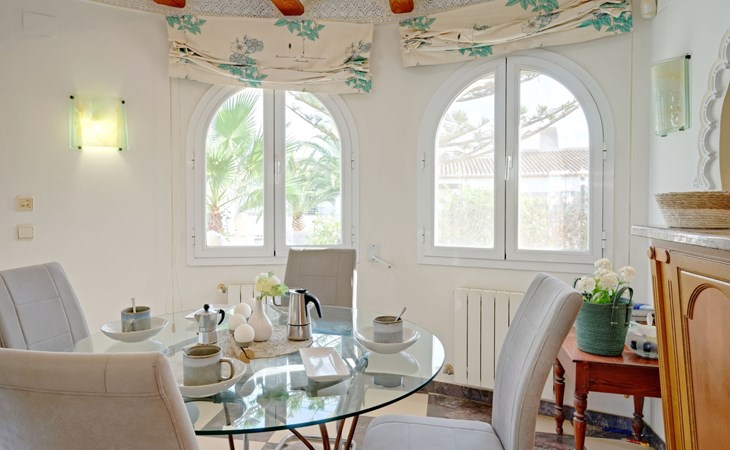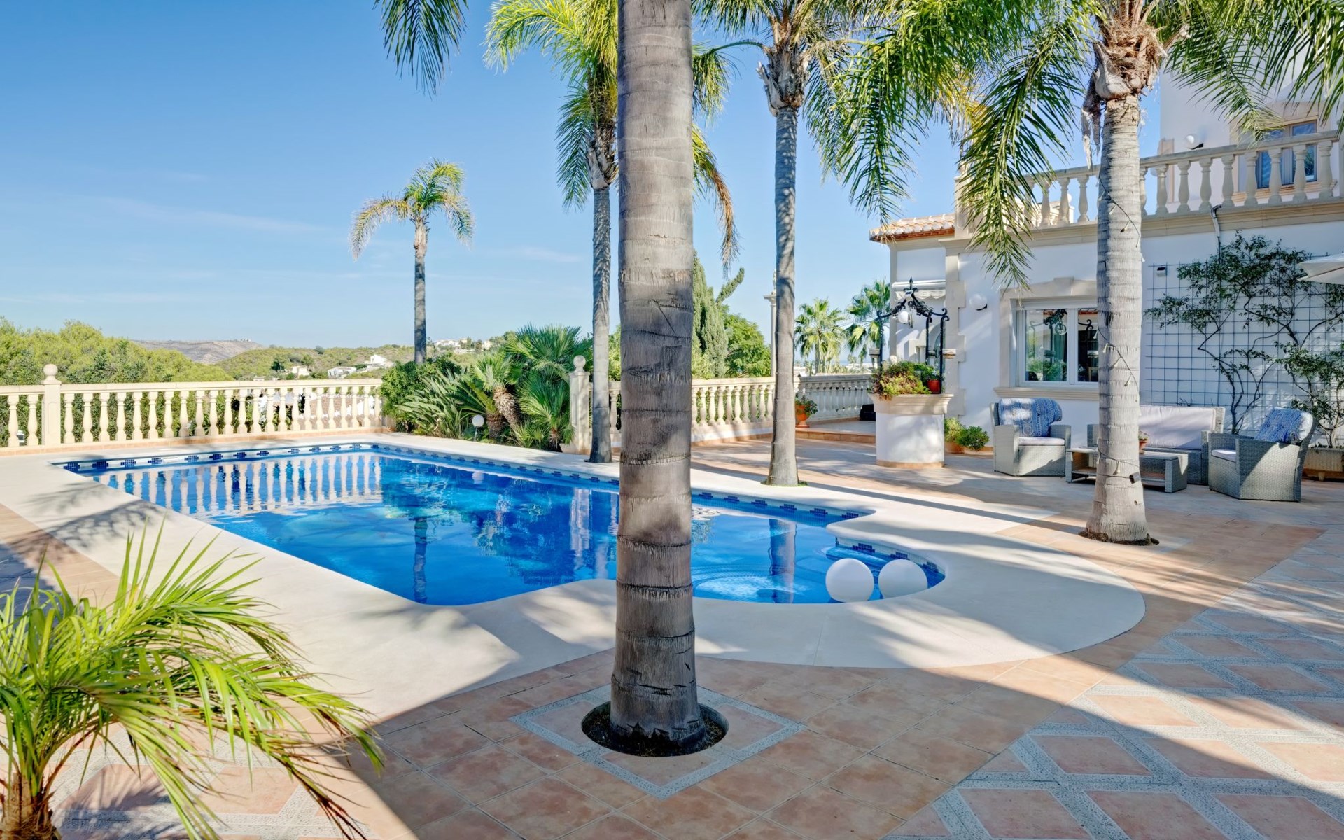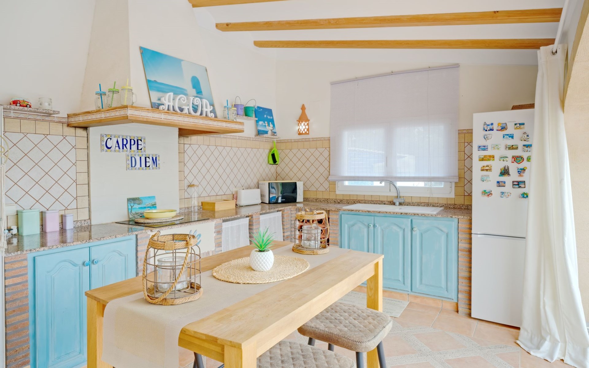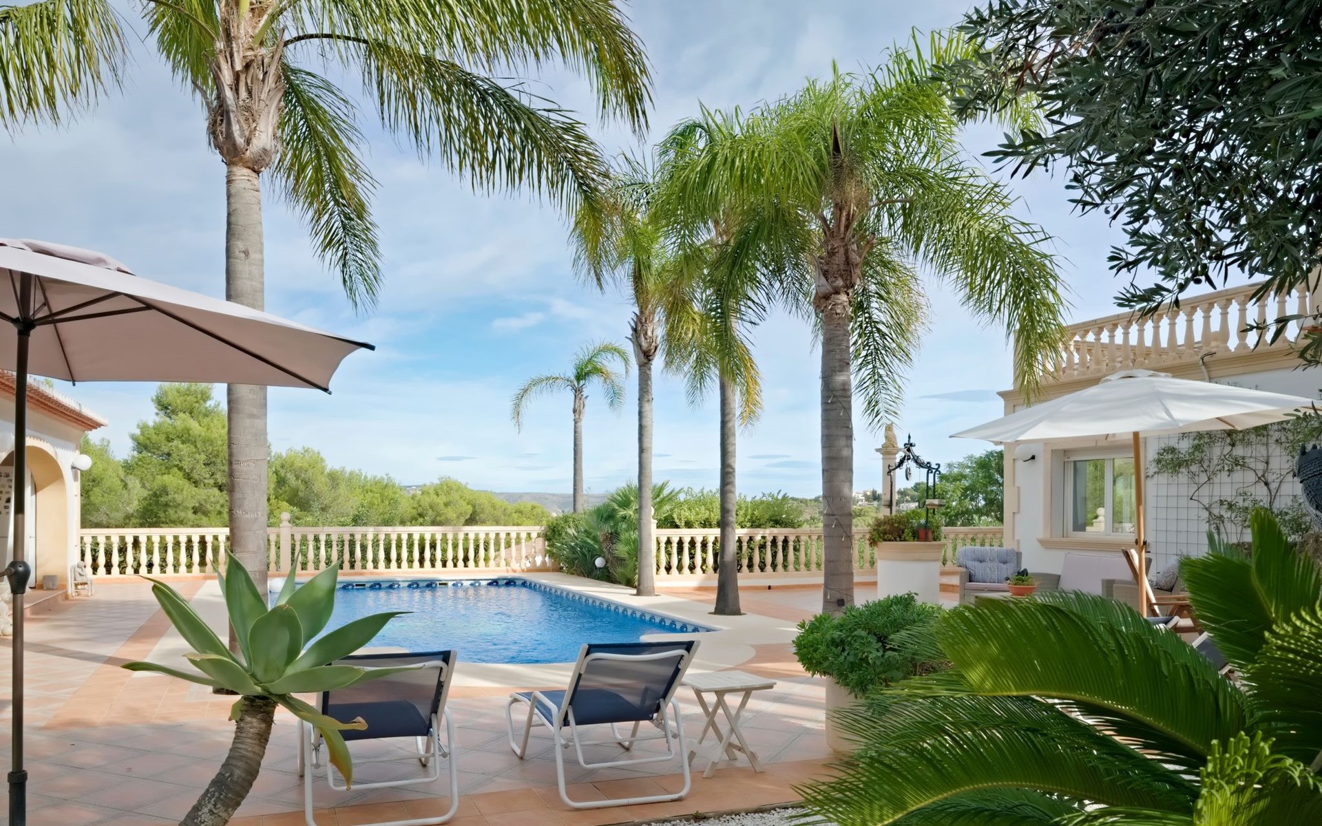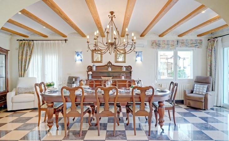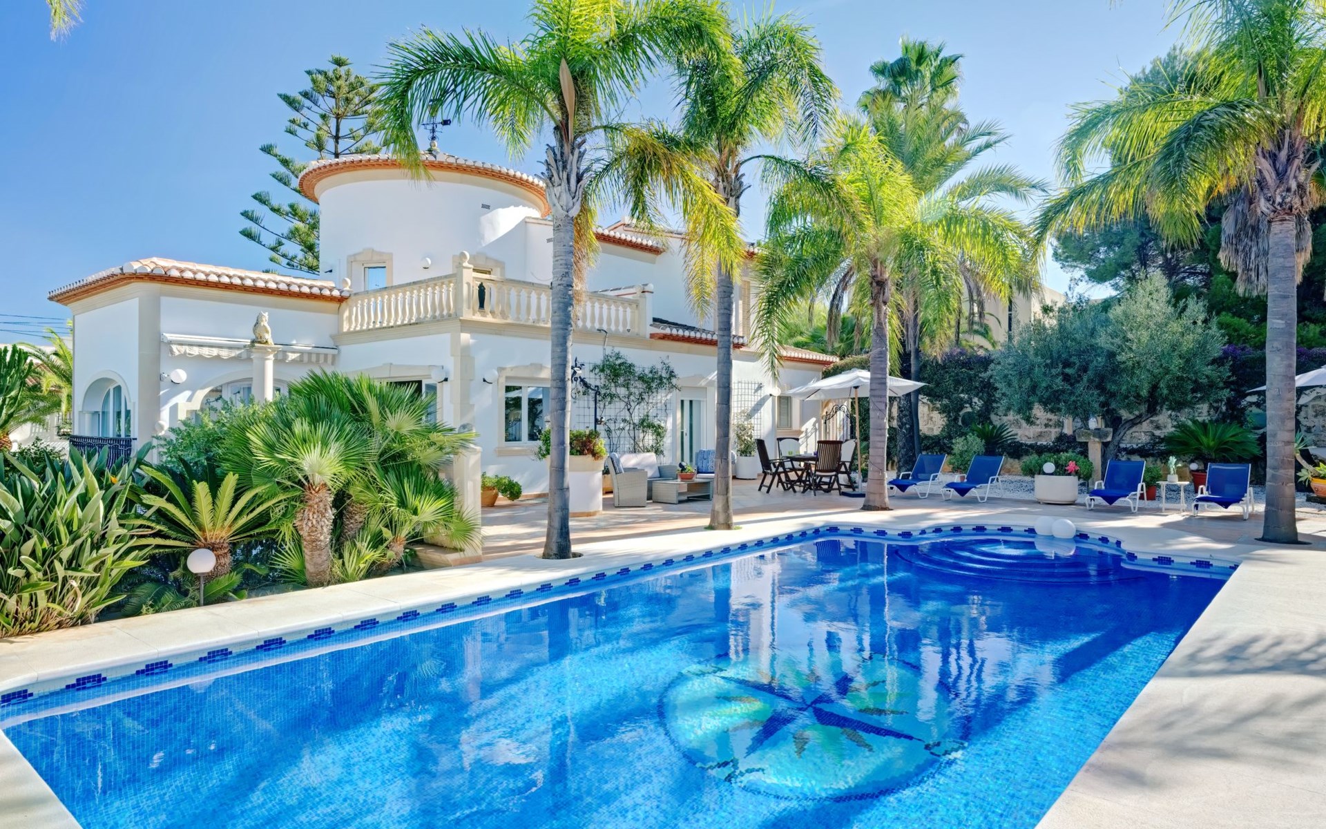 Very large, very beautiful, very comfortable villa "Carpe Diem", 3 storeys. In the district of Pinosol, in the resort 2.8 km from the centre of Arenal Javea, in a quiet, sunny position, 2.8 km from the sea, 2.8 km from the beach. Private: beautiful, well-kept garden (fenced), orchard (fenced), swimming pool (14 x 5 m, depth 40 - 210 cm, seasonal availability: 01.Jan. - 31.Dec.) with internal staircase. Shower/WC in the pool area, pool house with fridge and cooking stove, pergola, garden furniture, barbecue house, parking (for 4 cars) on the premises. Supermarket 2.3 km, restaurant 500 m, café 550 m, bus stop "Parada antiguo Mas y Mas" 2 km, sandy beach "El Arenal" 2.8 km, rocky beach "Segundo Muntanya" 3 km. Sports harbour 2.8 km, surf school 2.8 km, sailing school 2.8 km, tennis 3 km. The owner does not accept any youth groups.