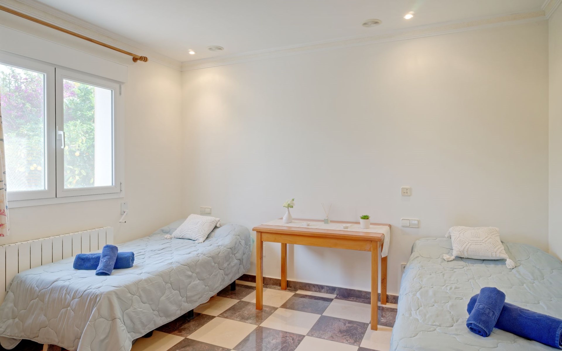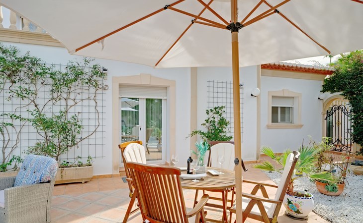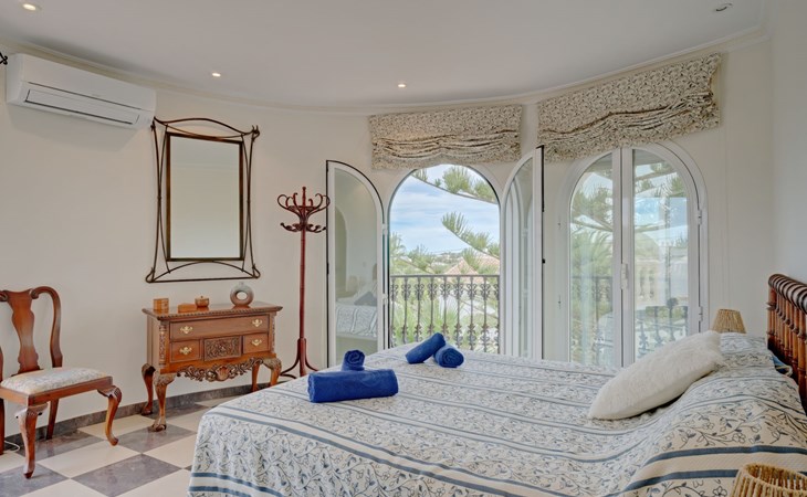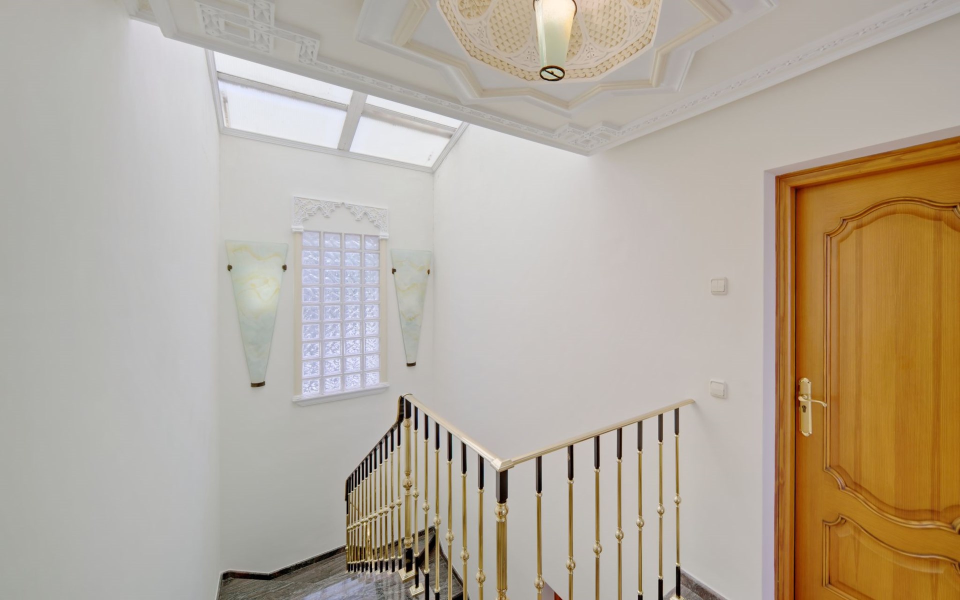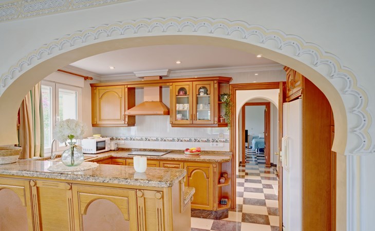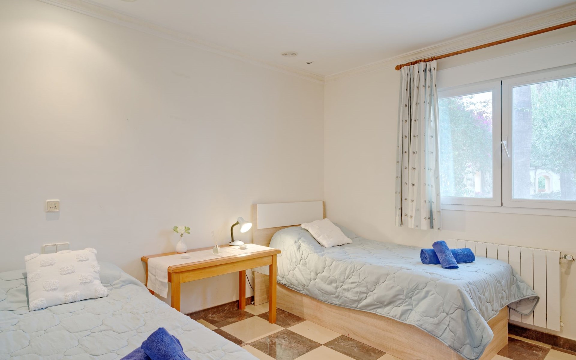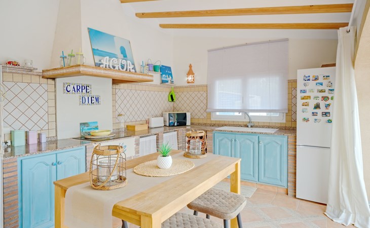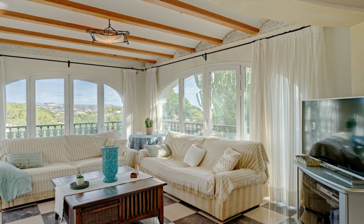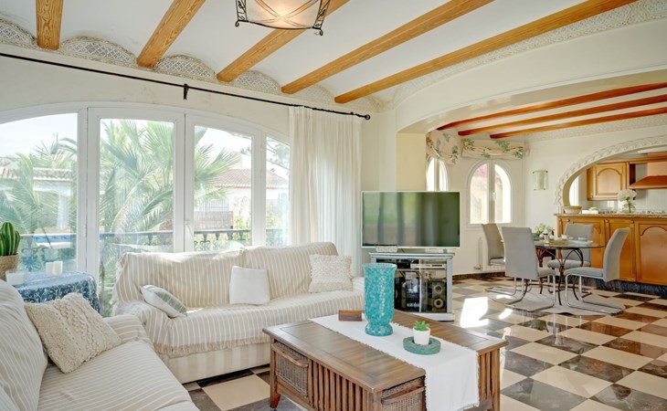 Very large, very beautiful, very comfortable villa "Carpe Diem", 3 storeys. In the district of Pinosol, in the resort 2.8 km from the centre of Arenal Javea, in a quiet, sunny position, 2.8 km from the sea, 2.8 km from the beach. Private: beautiful, well-kept garden (fenced), orchard (fenced), swimming pool (14 x 5 m, depth 40 - 210 cm, seasonal availability: 01.Jan. - 31.Dec.) with internal staircase. Shower/WC in the pool area, pool house with fridge and cooking stove, pergola, garden furniture, barbecue house, parking (for 4 cars) on the premises. Supermarket 2.3 km, restaurant 500 m, café 550 m, bus stop "Parada antiguo Mas y Mas" 2 km, sandy beach "El Arenal" 2.8 km, rocky beach "Segundo Muntanya" 3 km. Sports harbour 2.8 km, surf school 2.8 km, sailing school 2.8 km, tennis 3 km. The owner does not accept any youth groups.