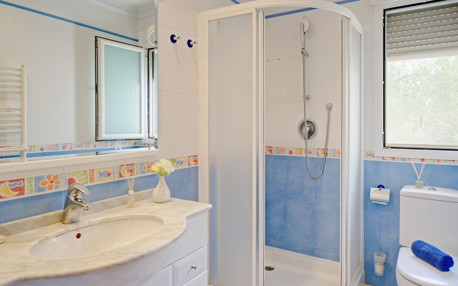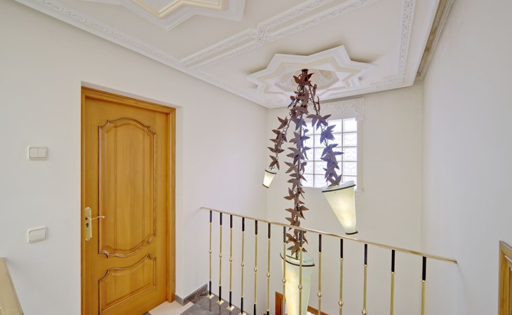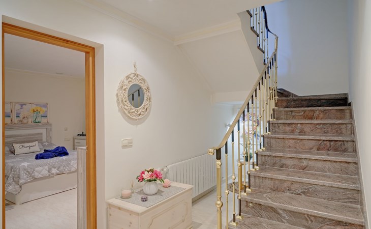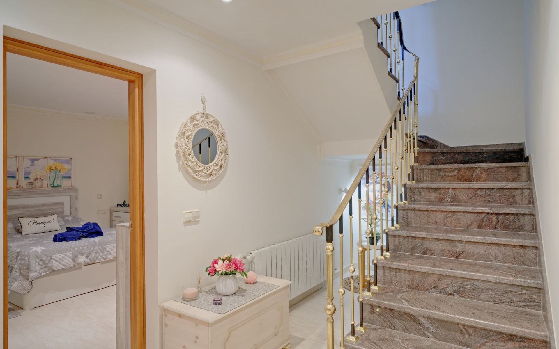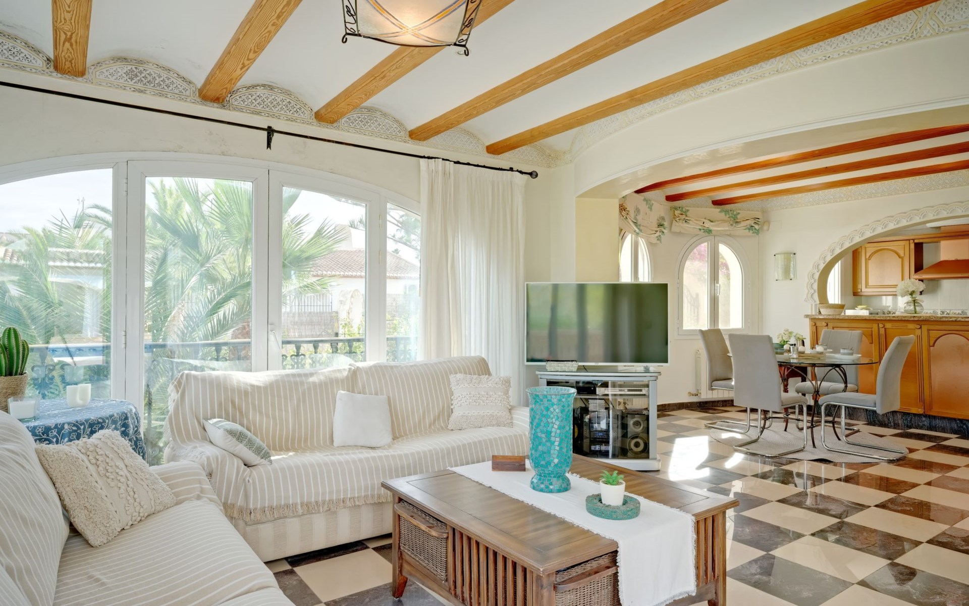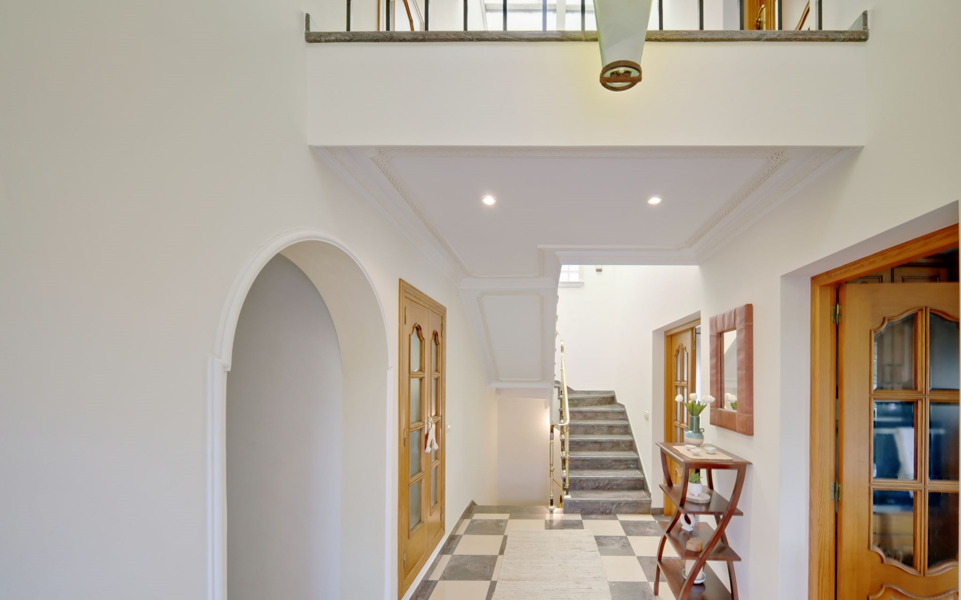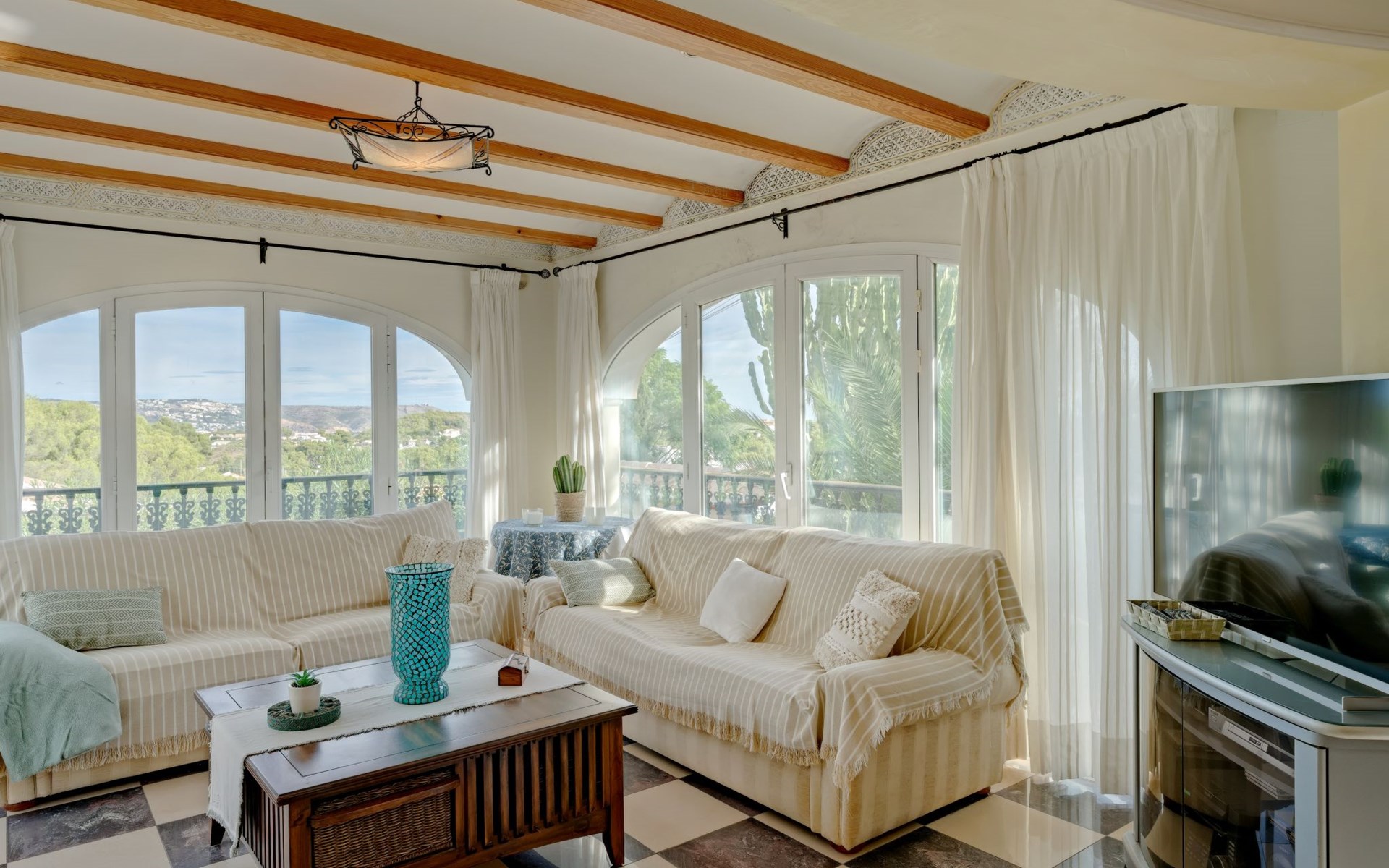 Very large, very beautiful, very comfortable villa "Carpe Diem", 3 storeys. In the district of Pinosol, in the resort 2.8 km from the centre of Arenal Javea, in a quiet, sunny position, 2.8 km from the sea, 2.8 km from the beach. Private: beautiful, well-kept garden (fenced), orchard (fenced), swimming pool (14 x 5 m, depth 40 - 210 cm, seasonal availability: 01.Jan. - 31.Dec.) with internal staircase. Shower/WC in the pool area, pool house with fridge and cooking stove, pergola, garden furniture, barbecue house, parking (for 4 cars) on the premises. Supermarket 2.3 km, restaurant 500 m, café 550 m, bus stop "Parada antiguo Mas y Mas" 2 km, sandy beach "El Arenal" 2.8 km, rocky beach "Segundo Muntanya" 3 km. Sports harbour 2.8 km, surf school 2.8 km, sailing school 2.8 km, tennis 3 km. The owner does not accept any youth groups.